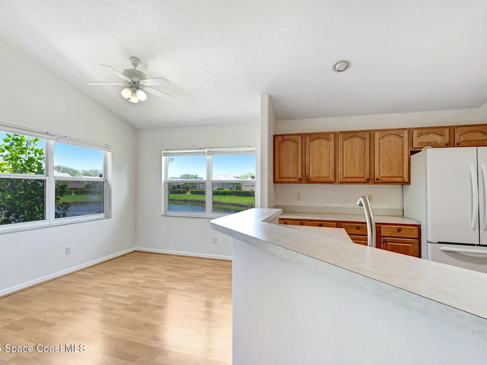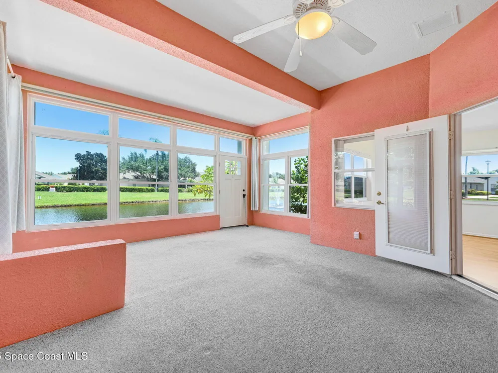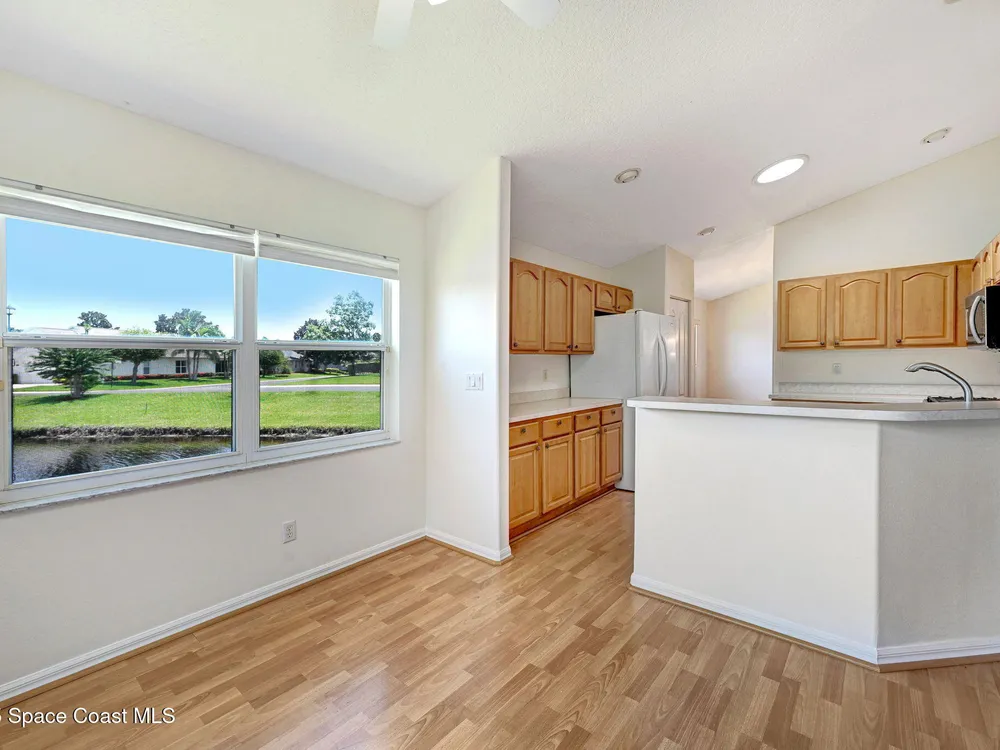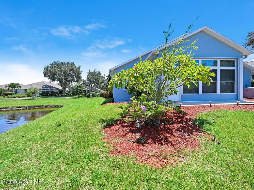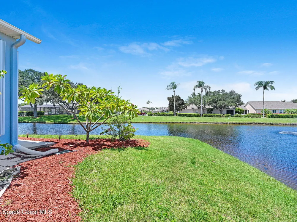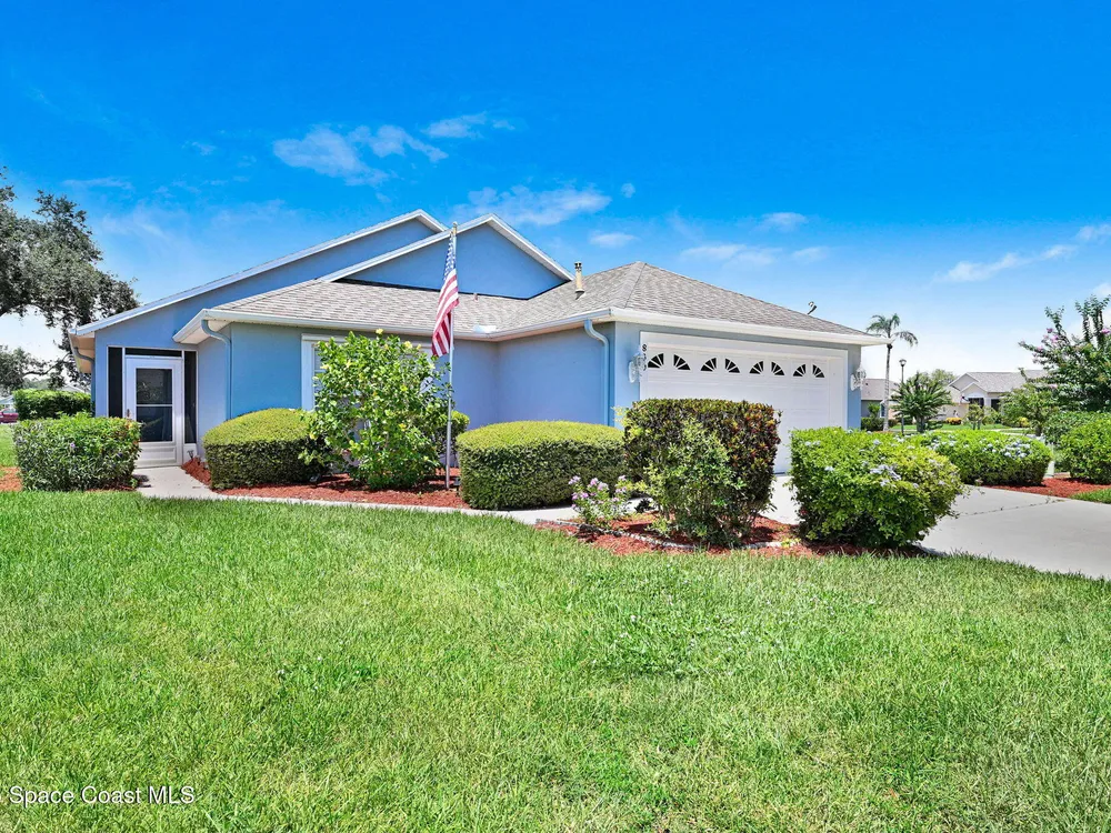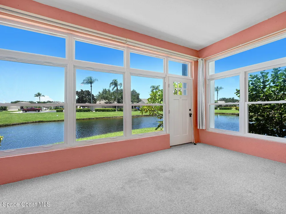 72 Hour Kick out Clause in effect. Welcome to this charming 3-bedroom, 2-bath lakefront home located in a vibrant 55+ community. Enjoy stunning lake views from your air-conditioned sunroom—perfect for morning coffee or relaxing afternoons. The spacious primary suite also overlooks the lake, so you'll wake up to serene water views every day. The en suite bathroom features a large soaking tub and a separate walk-in shower for ultimate comfort. The second bedroom includes a built-in Murphy bed and convenient access to the second bath—ideal for guests or flexible living space. Vaulted ceilings add to the home's open, airy feel, while the eat-in kitchen and formal dining room provide plenty of space for entertaining. Additional highlights include an inside laundry room and a two-car garage. Community amenities include a pool, clubhouse with library and exercise room, shuffleboard courts, putting green, and Bocce court—everything you need to stay active and social.