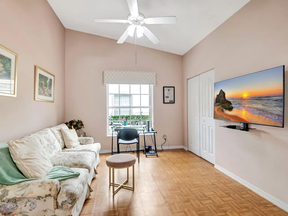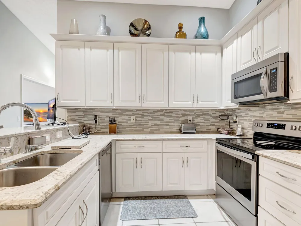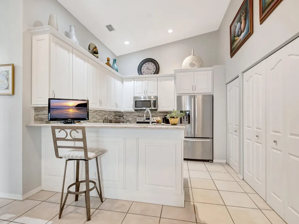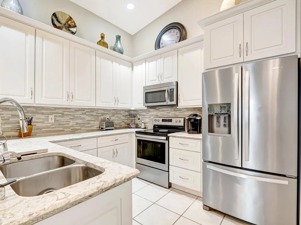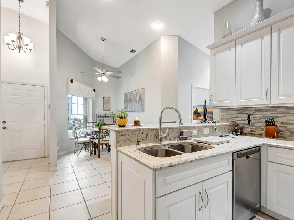 LOVELY CORNER VILLA WITH SOARING CEILINGS! UPDATED KITCHEN FEATURES STAINLESS STEEL APPLIANCES AND QUARTS COUNTER TOPS. SPACIOUS PRIMARY BEDROOM WITH UPDATED BATH AND WALK IN CLOSET. SPLIT FLOOR PLAN WITH OFFICE/DEN AND BEDROOM #2 ON OPPOSITE END FOR ADDED PRIVACY! THE NEWLY RENOVATED CLUBHOUSE HAS ALL THE BELLS AND WHISTLES FOR YOUR ENJOYMENT! POOL, TENNIS AND PICKLEBALL COURTS, BOCCE BALL, BILLIARDS, CAFE/RESTAURANT OPEN FOR BREAKFAST, LUNCH AND DINNER! SPORTS BAR, FITNESS CENTER, ENTERTAINMENT, SOCIAL EVENTS, CARD ROOMS, ARTS AND CRAFTS AND MUCH MORE. YOU WILL FIND FLORIDA LIVING AT ITS BEST IN VENETIAN ISLES!