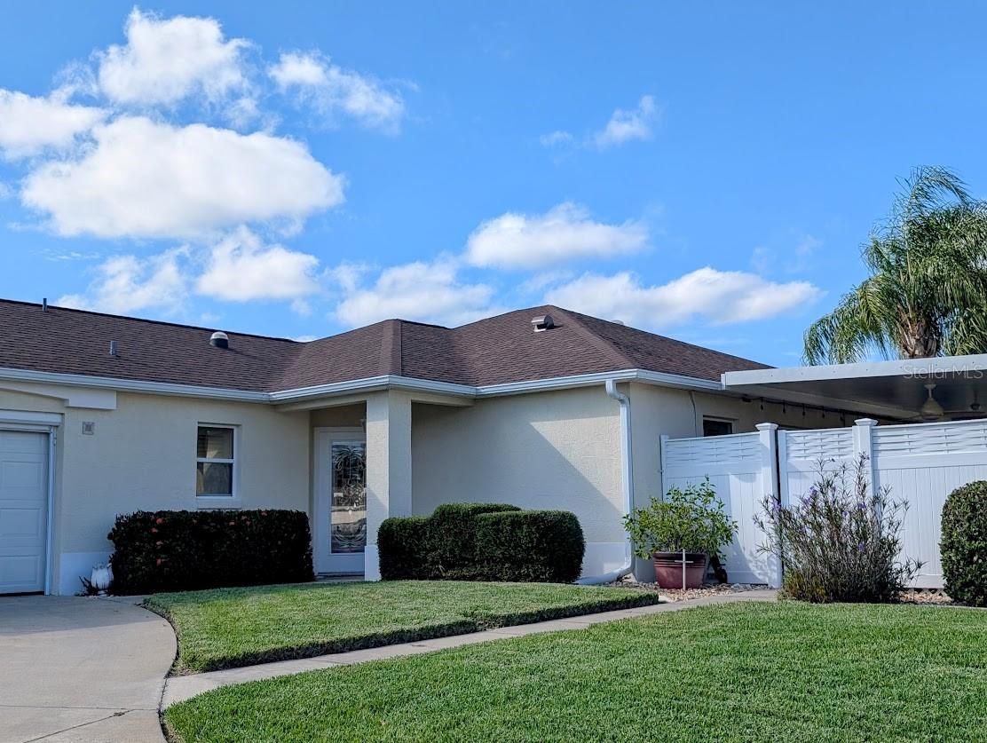 BOND PAID! This is truly an Ultimate Stoneybrook Courtyard Villa! 1580 heated sq ft of living!! Natural gas hot water heater, HVAC and stove. New garbage disposal and a built in trash compactor. New appliances in 2021- dishwasher, microwave, stove and frig. On a corner lot and landscaped to the hilt! A New Pergola added to the side yard patio which has 'shark coating sealer' on the concrete, fans and ample outside outlets. There are 2 sides of glassed windows in 4 season Sunroom which looks out to the beauty of the groomed and plushly landscaped privacy fenced yard. The Florida room has ducted heat and air. Natural gas hook up for a grill at the entertaning side of the patio. The lot is fully fenced on all sides and comes with a garden shed (glass decorative pots and yard ornaments of potted plantings do not stay with the Villa) The bird bath and concrete bench do stay with the landscaped yard. The interior design is a rare one with a breakfast nook off the Kitchen plus a more formal dining area off the living room. There are sliding glassed doors to the Florida room and across the living area that looks out to the covered patio with pergola, and back yard delightfully colorful landscape. Inside, the split bedroom arrangement includes one bedroom set up as an office, the 2nd bedroom comes complete with its furniture. The primary bedroom has huge walk in closets and trayed ceiling. The ensuite bath includes a Roman shower and water closet plus dual sinks. The expanded garage includes a washer dryer area with utility sink, and pull down stairs for some attic storage. Plenty of natural light from the oversized window in the garage too. This consideration will be worth your while! Professional photos coming soon.