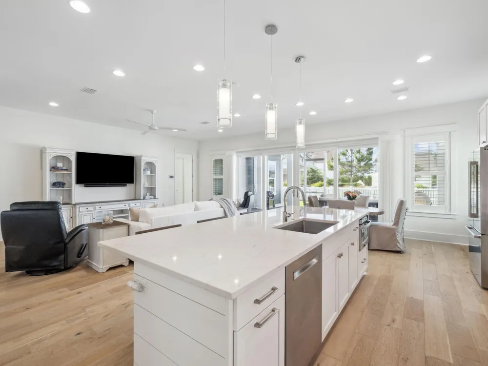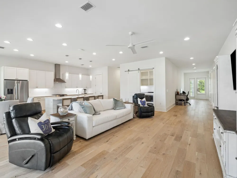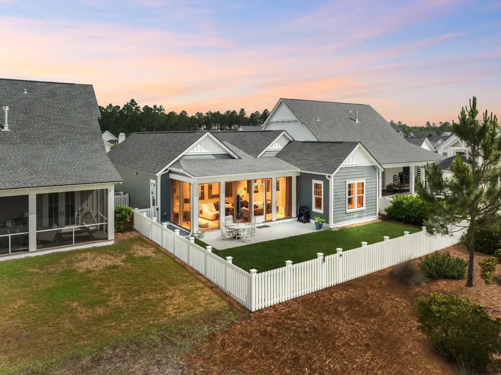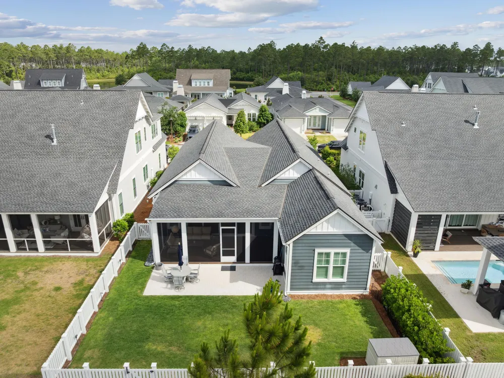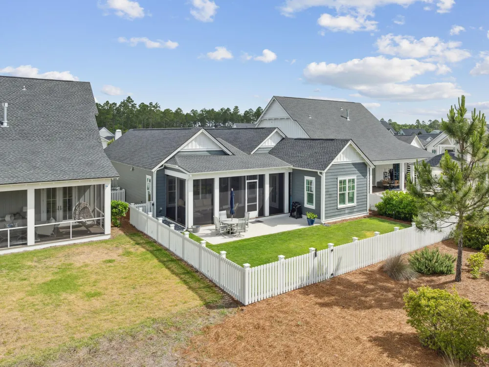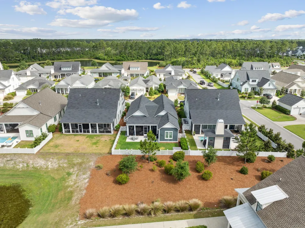 This newer construction lakeside residence is in the sought-after community of Stillwater at Watersound Origins. Beautifully constructed to the highest standards by Romair Homes, it boasts multiple upgrades and fine finishes that stand the test of time. Beyond the open front porch, light oak-engineered wood flooring leads the way into the open concept home, which is both light and spacious. Your eyes are immediately drawn to the upgraded nano wall that fully opens to extend the living space into the spacious screened porch. It's ideal for those who enjoy entertaining. Relax and enjoy a tranquil cup of coffee with views across the backyard to a picturesque pond that provides exceptional privacy and serenity. It's a calming view that never grows old.
