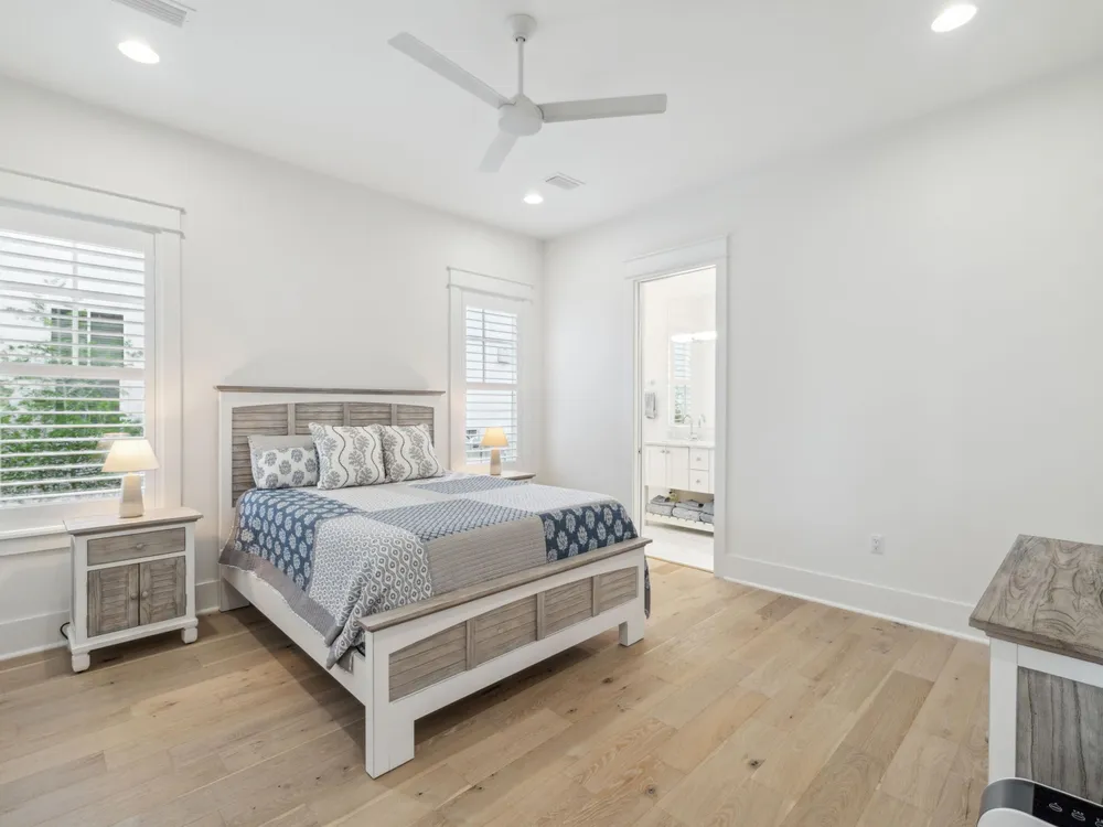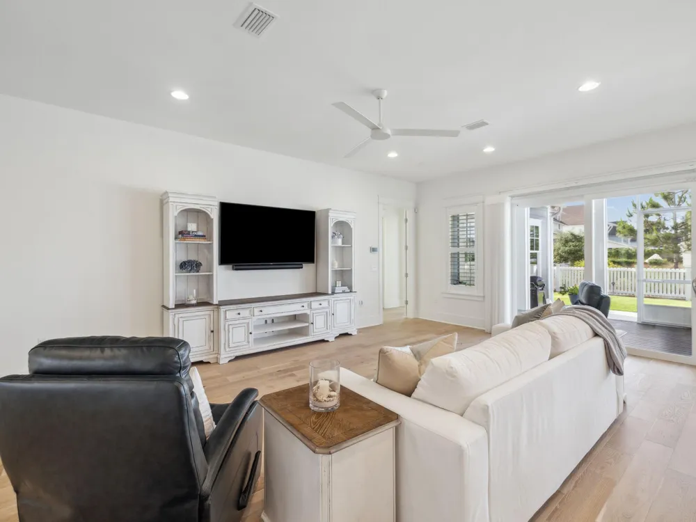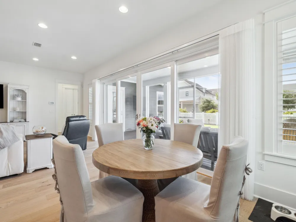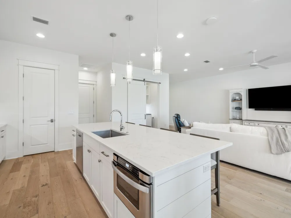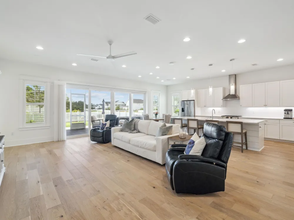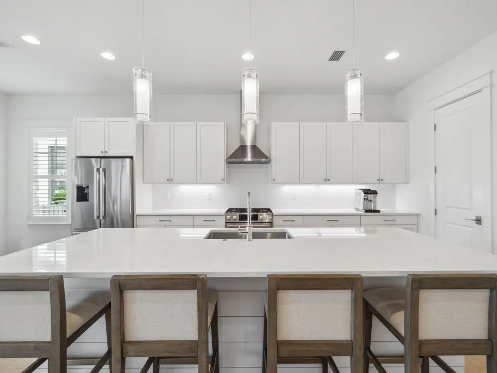 This newer construction lakeside residence is in the sought-after community of Stillwater at Watersound Origins. Beautifully constructed to the highest standards by Romair Homes, it boasts multiple upgrades and fine finishes that stand the test of time. Beyond the open front porch, light oak-engineered wood flooring leads the way into the open concept home, which is both light and spacious. Your eyes are immediately drawn to the upgraded nano wall that fully opens to extend the living space into the spacious screened porch. It's ideal for those who enjoy entertaining. Relax and enjoy a tranquil cup of coffee with views across the backyard to a picturesque pond that provides exceptional privacy and serenity. It's a calming view that never grows old.