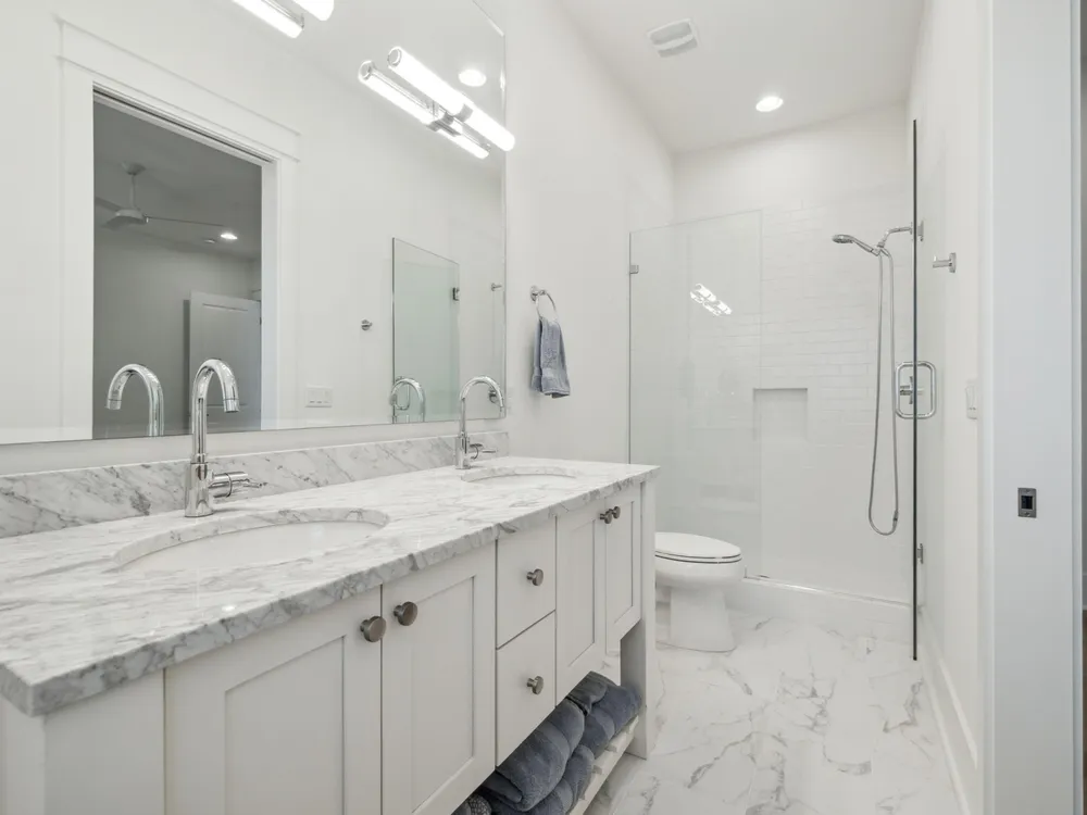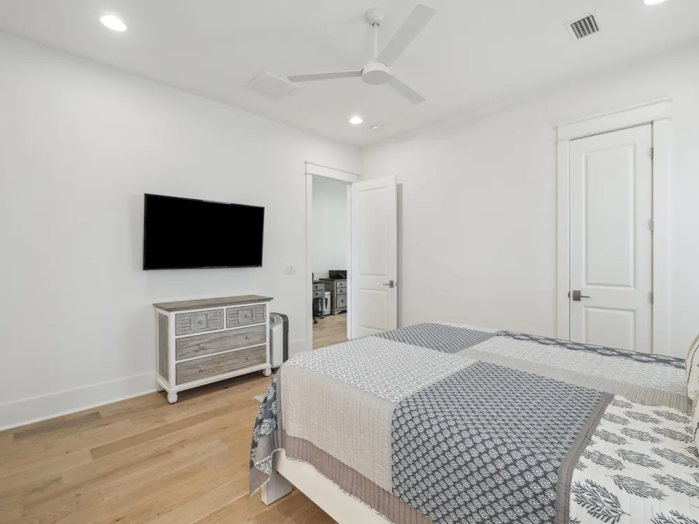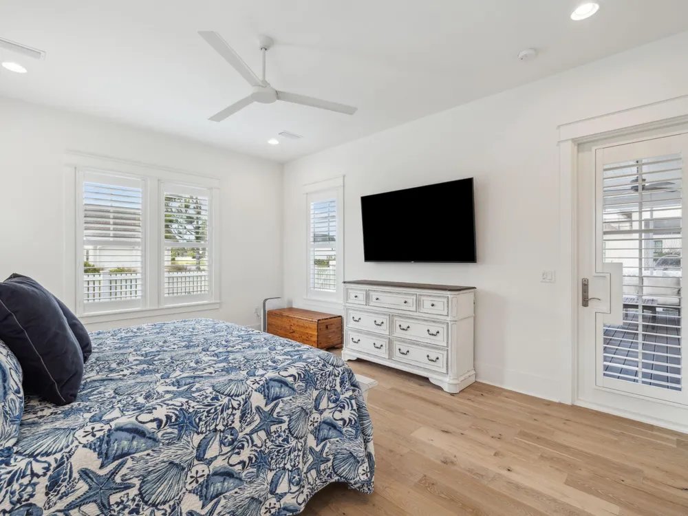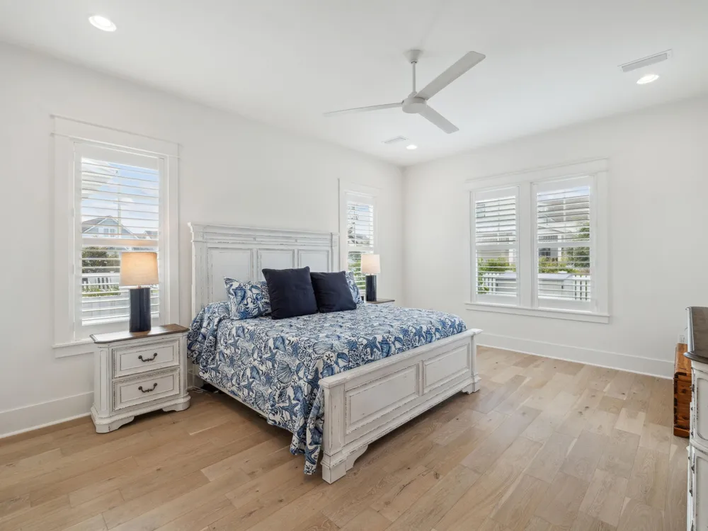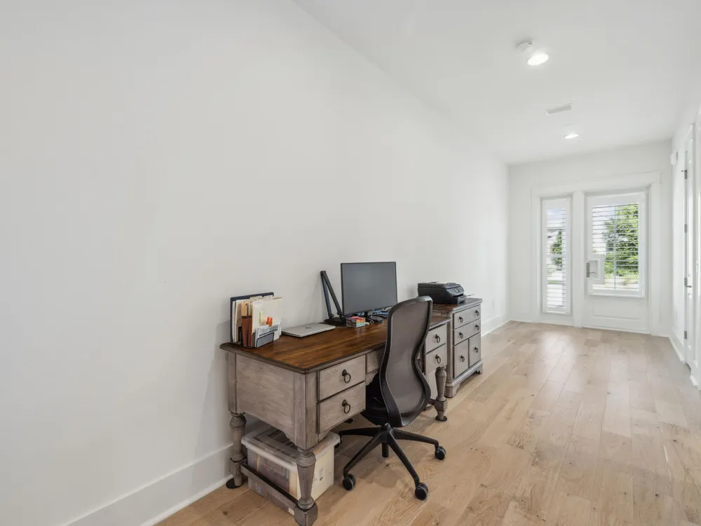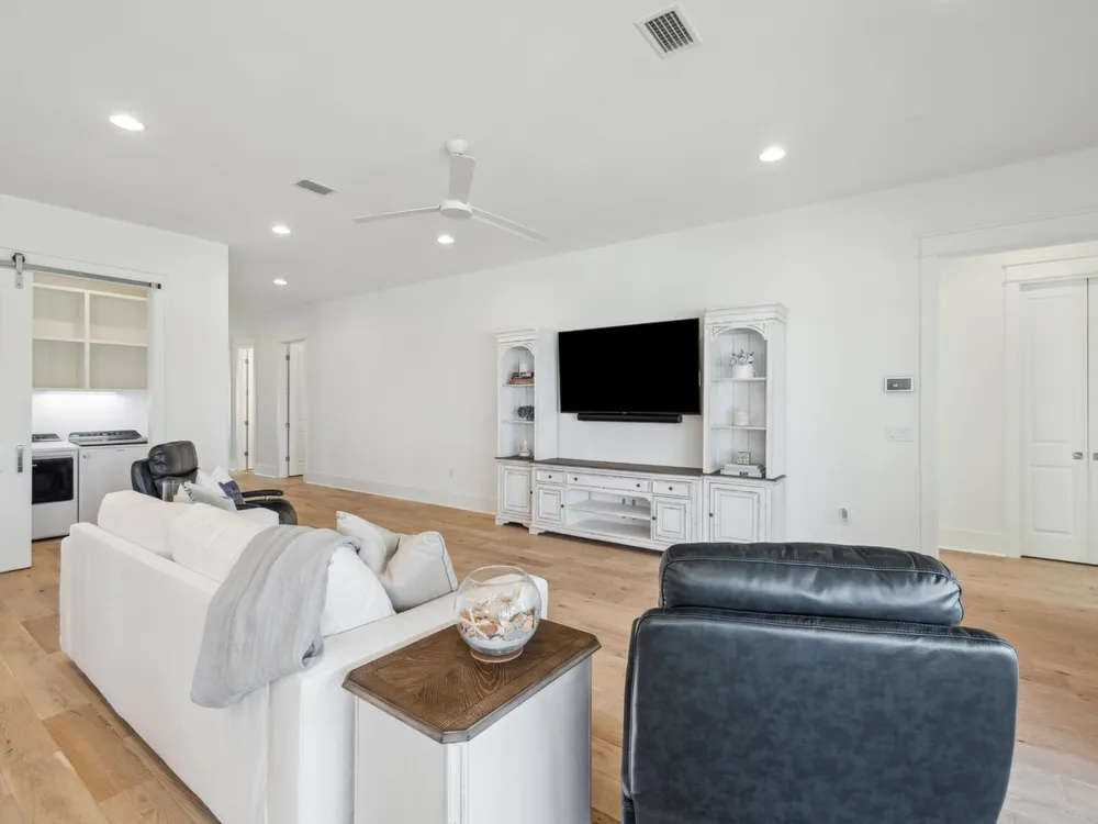 This newer construction lakeside residence is in the sought-after community of Stillwater at Watersound Origins. Beautifully constructed to the highest standards by Romair Homes, it boasts multiple upgrades and fine finishes that stand the test of time. Beyond the open front porch, light oak-engineered wood flooring leads the way into the open concept home, which is both light and spacious. Your eyes are immediately drawn to the upgraded nano wall that fully opens to extend the living space into the spacious screened porch. It's ideal for those who enjoy entertaining. Relax and enjoy a tranquil cup of coffee with views across the backyard to a picturesque pond that provides exceptional privacy and serenity. It's a calming view that never grows old.