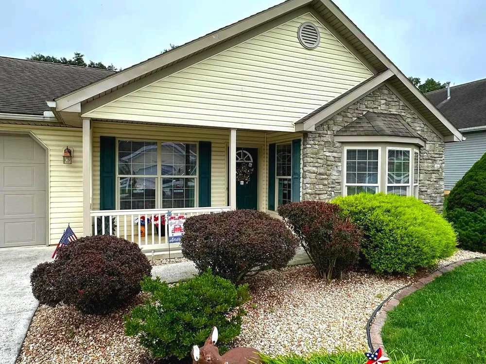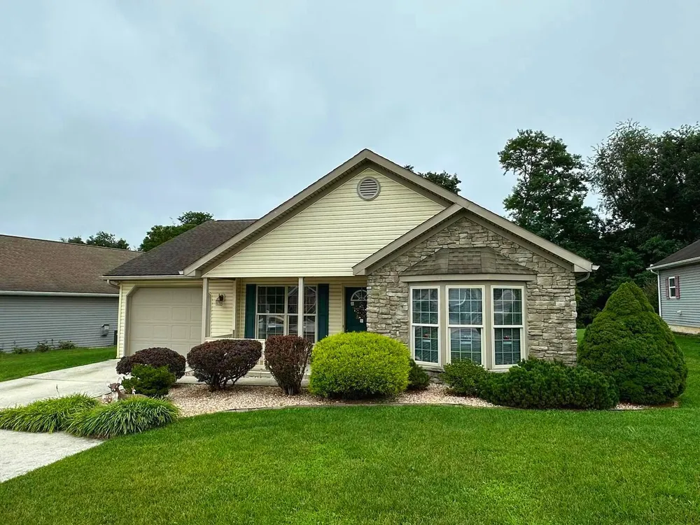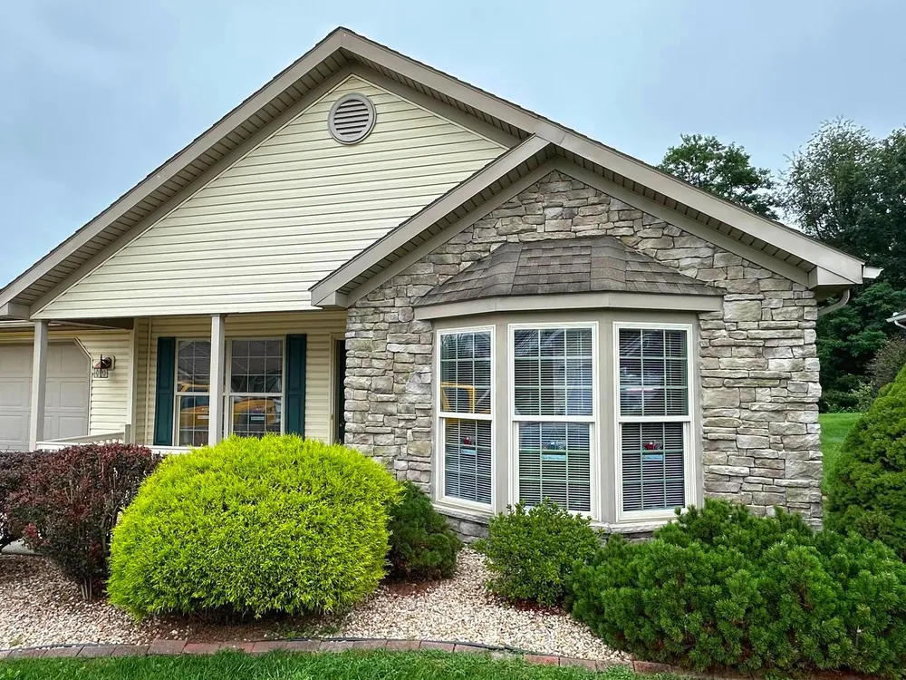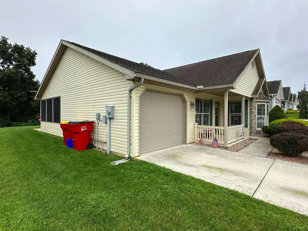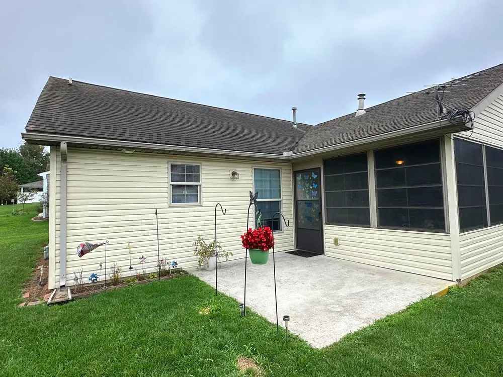Located in the desirable 55+ gated community of Country Manor, this well-kept 2 bedroom 2 full bath home offers a comfortable and convenient lifestyle. Inside, you’ll find an inviting open-concept layout with a gas fireplace in the living room, a spacious eat-in kitchen, and a cozy den with French doors leading to a three-season porch with removable windows. Your primary bedroom holds a full attached bath & walk in closet, your additional full bath and bedroom are located off the hall. Landscaping surrounds the property, adding to its charm and curb appeal. Ideally situated near restaurants, shopping, and more, this is a home you won’t want to miss! The community features a clubhouse, stocked fishing pond, fitness center, and scenic walking trails. At least one resident must be 55 or older with no one under 21 permitted. Up to two pets are allowed. The monthly land lease is $533, which covers sewer and trash services. Sale will be contingent on community approval for the new buyer(s)