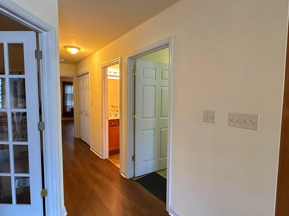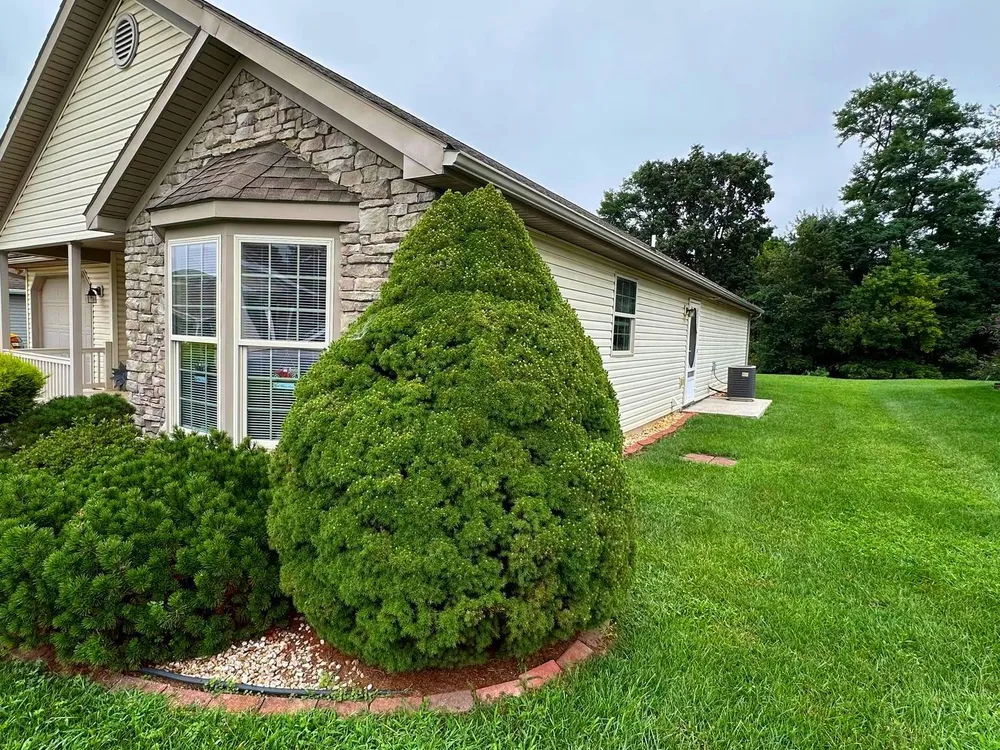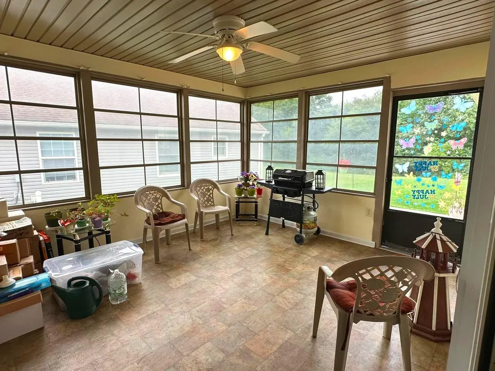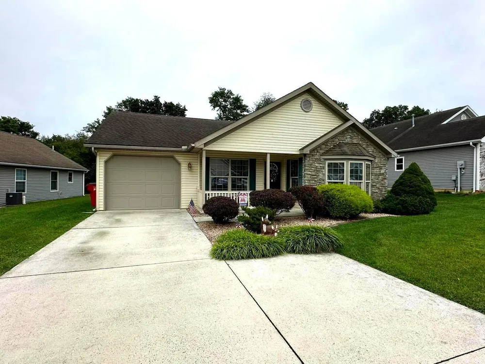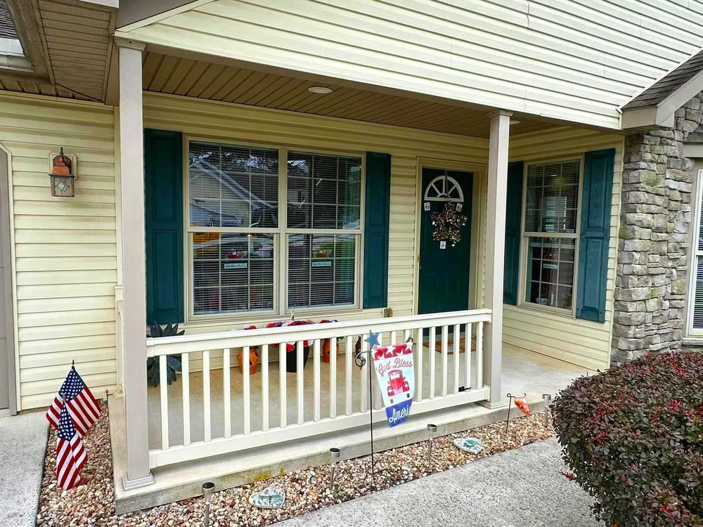 Located in the desirable 55+ gated community of Country Manor, this well-kept 2 bedroom 2 full bath home offers a comfortable and convenient lifestyle. Inside, you’ll find an inviting open-concept layout with a gas fireplace in the living room, a spacious eat-in kitchen, and a cozy den with French doors leading to a three-season porch with removable windows. Your primary bedroom holds a full attached bath & walk in closet, your additional full bath and bedroom are located off the hall. Landscaping surrounds the property, adding to its charm and curb appeal. Ideally situated near restaurants, shopping, and more, this is a home you won’t want to miss! The community features a clubhouse, stocked fishing pond, fitness center, and scenic walking trails. At least one resident must be 55 or older with no one under 21 permitted. Up to two pets are allowed. The monthly land lease is $533, which covers sewer and trash services. Sale will be contingent on community approval for the new buyer(s)
