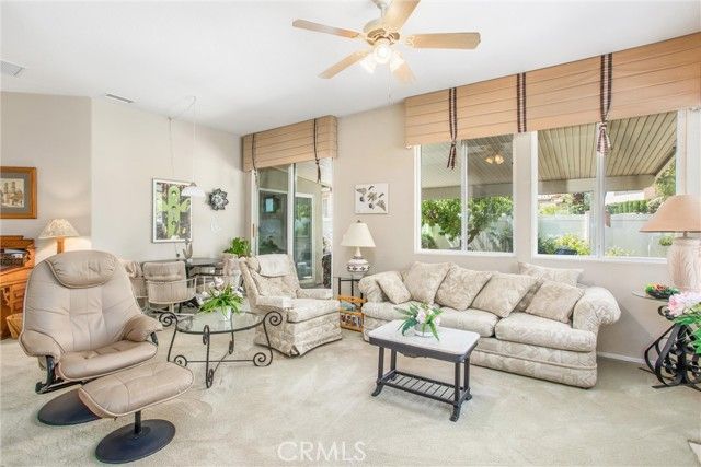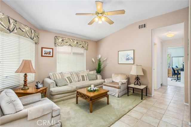 BACK ON THE MARKET! BUYERS COULDN'T PERFORM. Nestled on the desirable North Side of Sun Lakes Country Club, this rare and popular Heather Glen floor plan offers 2 bedrooms, 2 baths, and 1,504 sq. ft. of comfortable living space. The private side entrance opens to a charming patio, perfect for evening entertaining. Inside, a flexible front room (currently used as a parlor) makes an ideal den or office. The spacious living room features dramatic window coverings, abundant natural light, and a cozy fireplace. The open kitchen and dining area enjoy scenic views and include updated appliances—stove, refrigerator, dishwasher, and microwave—plus recessed and pendant lighting over the breakfast bar. The primary suite offers a walk-in closet, dual-sink vanity, and plush carpeting, while the guest bedroom is conveniently located near a full bath with tub/shower. Additional highlights include an indoor laundry room and abundant storage. Outdoors is a true birdwatcher’s paradise, with lush landscaping and a collection of fruit trees (cherry, peach, nectarine, orange, lemon, and grapefruit). Relax and enjoy lake views from your private garden sanctuary or wave at the occasional golfer driving by in his or her golf cart on this beautiful golf course AND lake view home. Sun Lakes Country Club is a 55+ gated community with 24-hour security and world-class amenities, including: Two 18-hole golf courses & driving range Three clubhouses with restaurants & ballroom Indoor/outdoor pools, tennis, pickleball & bocce ball Dozens of clubs, activities, and events All this, for under $500,000—compare the value to San Diego, Orange County, or Los Angeles and see why “If you’re lucky enough to live in Sun Lakes, you’re lucky enough!”