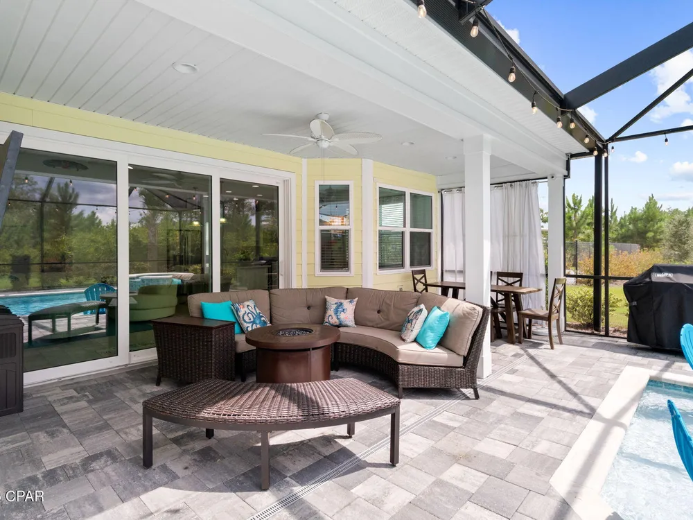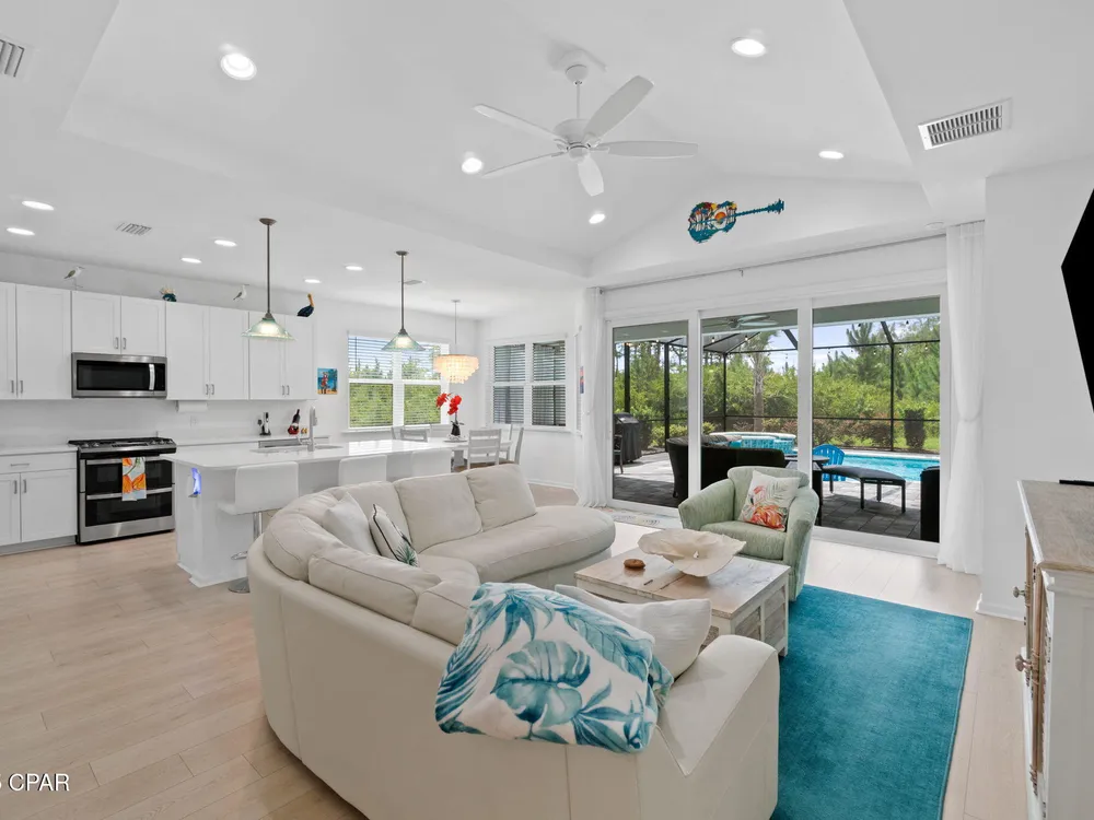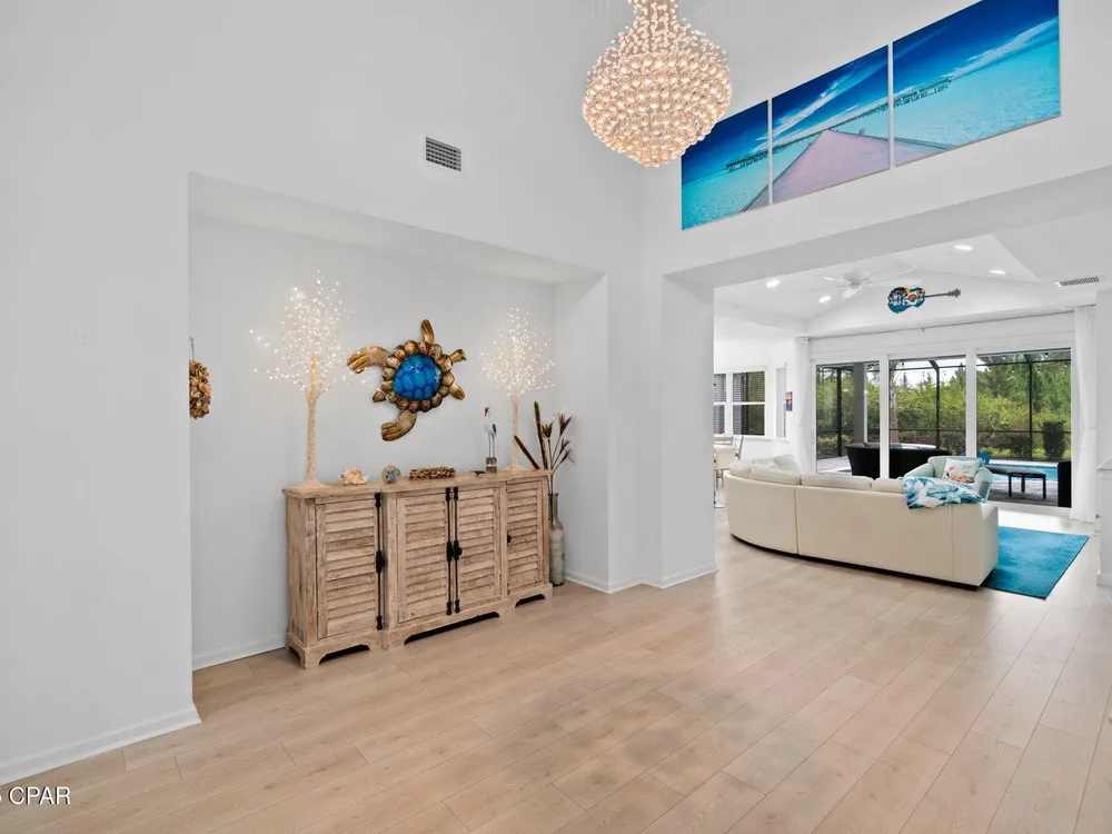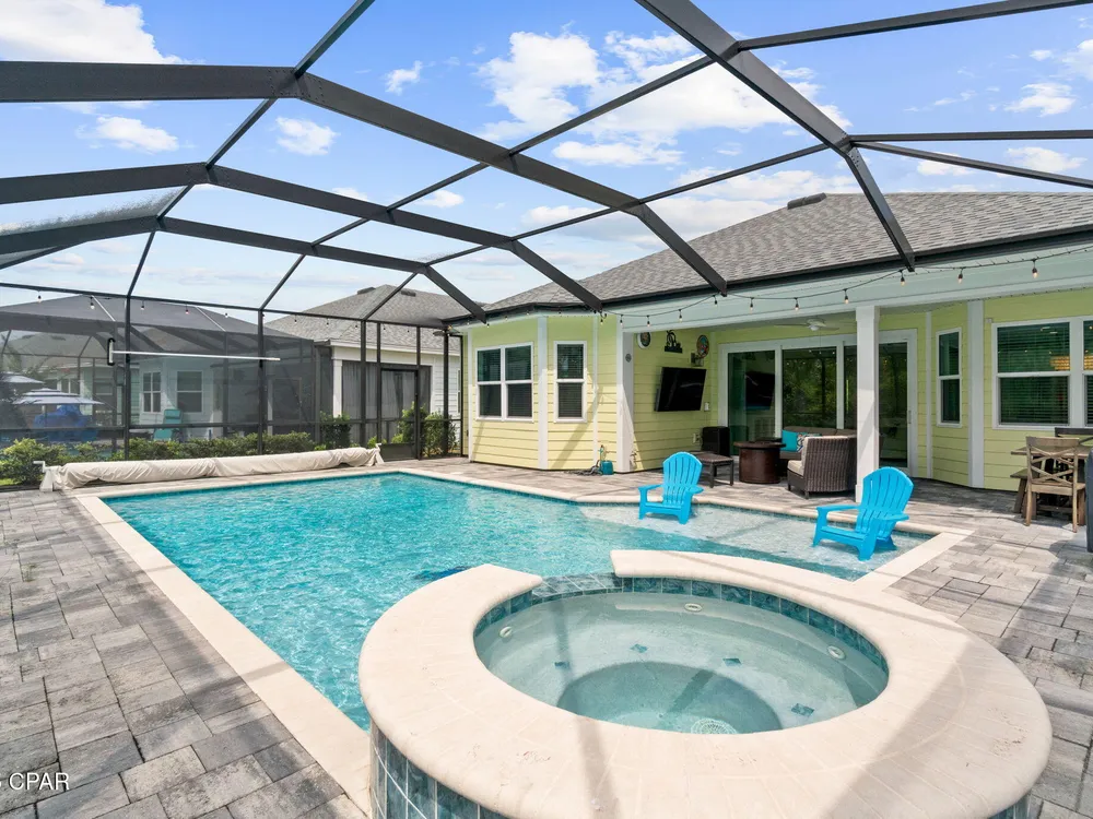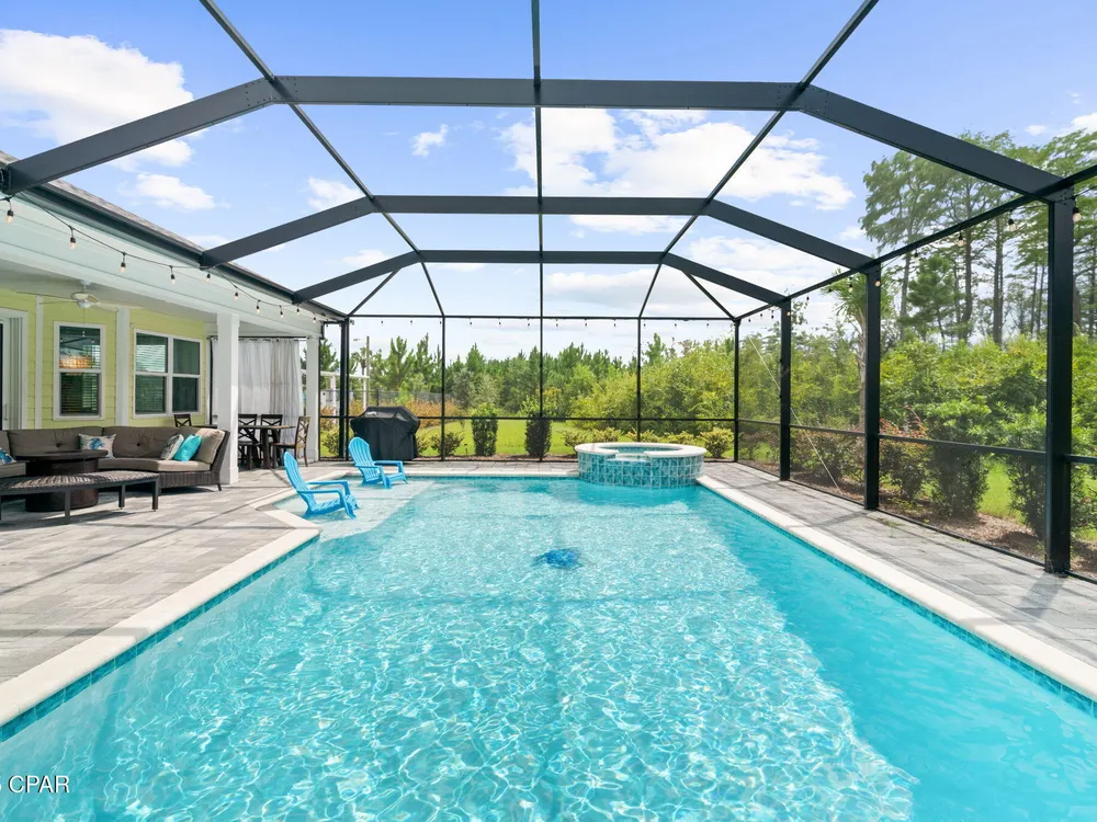 Gorgeous Parrot Floorplan with Saltwater Pool, Spa & Preserve View. Live the Latitude Margaritaville Watersound lifestyle in this exceptional coastal inspired home, perfectly positioned to capture tranquil preserve views. This spacious open-concept home features designer finishes, abundant natural light, and seamless indoor-outdoor living. Step outside to your private backyard retreat with a sparkling saltwater pool and spa, expansive screened lanai, and plenty of space for lounging or entertaining. Enjoy the peace of a preserve backdrop while being just a quick golf cart ride to world-class amenities including resort pools, fitness center, restaurants, live entertainment, and miles of walking and biking trails. Highly upgraded gourmet kitchen with gas double oven range, quartz countertops, large island, wine/beverage built-in refrigerator and an abundance of cabinets with pull-outs. 3 bedrooms 2 full baths and separate hobby/office, master ensuite with bay window over looking the private preserve lot, luxurious upgraded tile shower, quartz countertops and more. Hurricane IMPACT windows entire home, fabulous phase 3, close to all the amenities, custom salt-water heated pool with unique turtle mosaic complete with screen enclosure and paver decking, solar pool cover & reel, privacy curtains, sunset views. Open concept living with soaring ceilings and more. *Furniture is negotiable. Latitude Margaritaville Watersound is a vibrant 55+ community just 7 miles from the pristine beaches of Panama City Beach, minutes to 30A the ''Hamptons of the South'', Destin and many more wonderful coastal towns. Onsite amenities are second to none and feel like you're on a continuous vacation year round! An outstanding 2 story full service restaurant, resort style outdoor pool both overlooking the Intracoastal Waterway, A state of the art fitness center with an indoor lap pool and spa, fitness classes, water aerobics and more. Pickleball and tennis courts, a bandshell with a dance floor and music every Friday and Saturday night / activities year round. Kayak launch, game lawn with bocce ball, cornhole and ping pong. A theater, pet grooming, wood-working workshop and ceramics shop. A future public marina and commercial area are planned with a Publix grocery store, shopping and dining. Home has a builders 2/10 year structural warranty from the original build/close date. All lawn care is maintained by the HOA. Must see this picture perfect home and community! The lifestyle of this beautiful coastal Florida community awaits you!