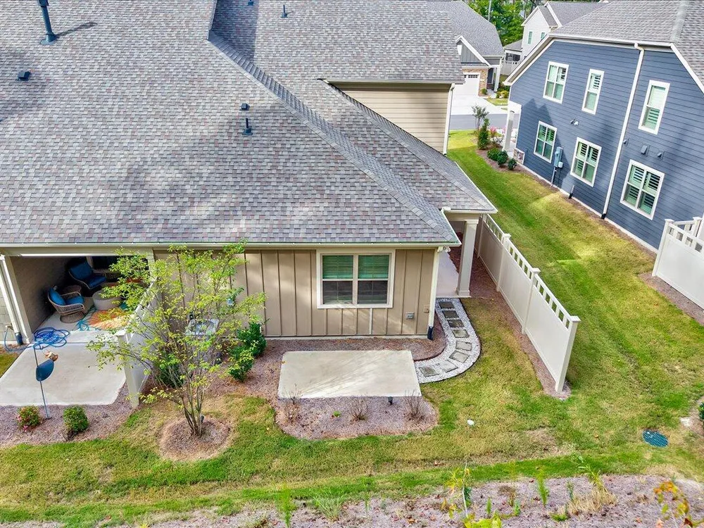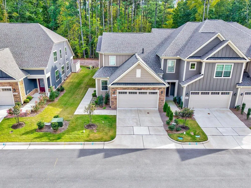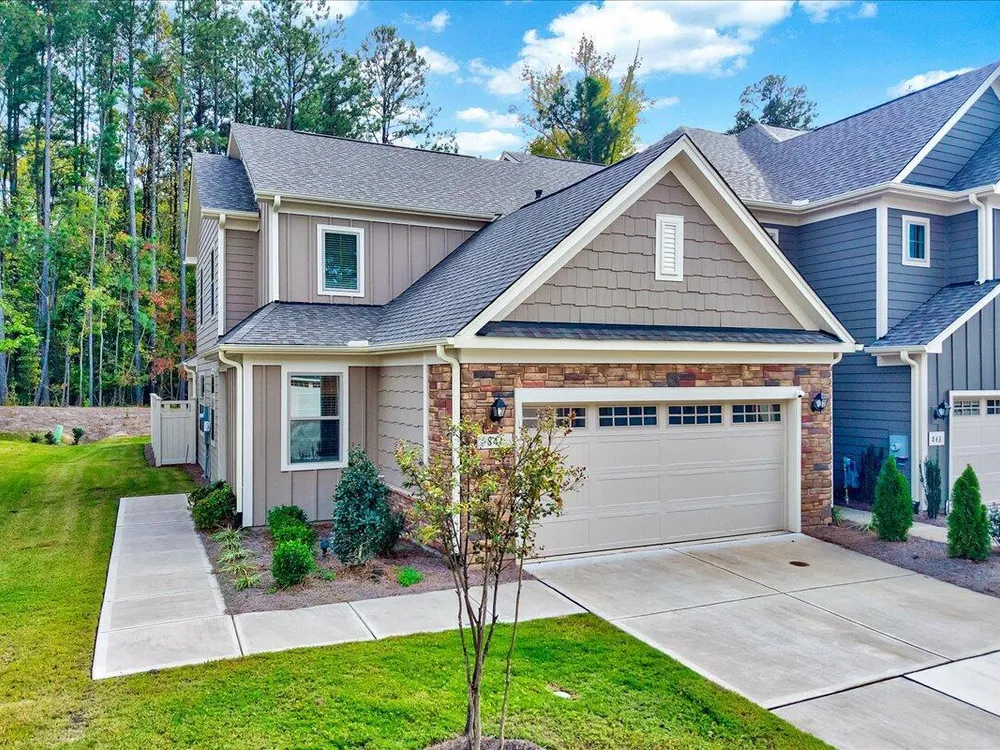 This stunning low-maintenance end unit townhome offers the perfect blend of style, comfort and convenience in one of West Cary's most desirable 55+ communities. Enjoy main-floor living with a bright, open layout featuring a spacious primary suite complete with a large walk-in closet and a spa-like bathroom. The gourmet kitchen is a chef's dream with a large quartz island, 5-burner gas range, tile backsplash, double ovens and a stainless-steel hood. Upstairs, you'll find two additional bedrooms, a full bath and a generous loft. Step outside to your private covered patio with wooded views. Located just minutes from the American Tobacco Trail, shopping, dining, and major highways, this home truly has it all. Enjoy resort-style amenities including a clubhouse, outdoor pool, fitness center, pickleball court and walking trails. Live the lifestyle you deserve in this beautiful West Cary retreat!