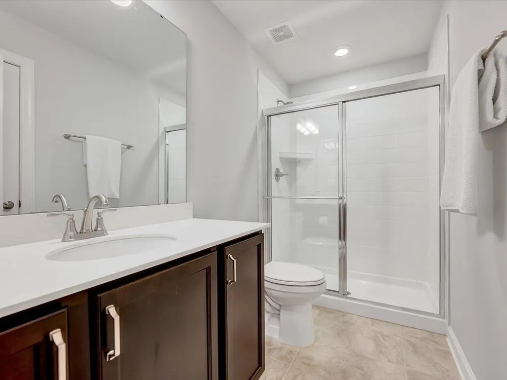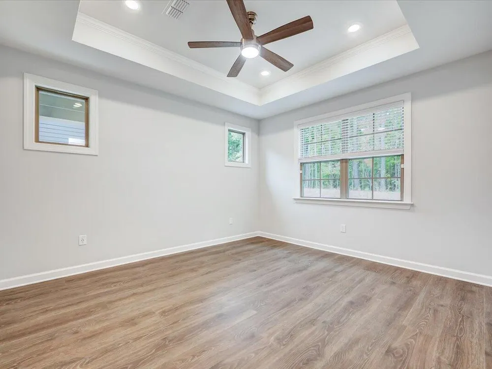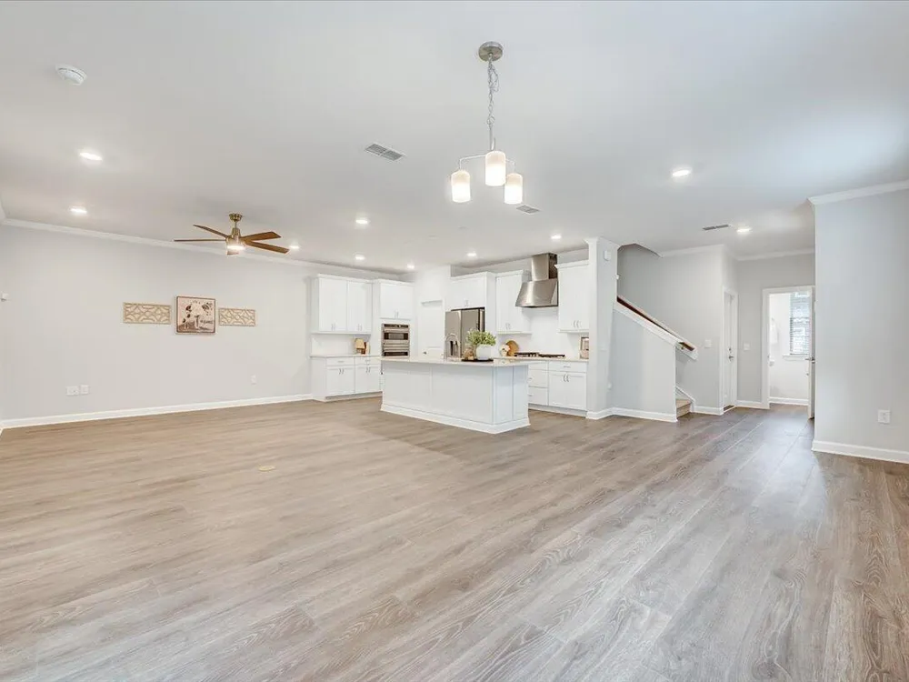 - Ceiling Fan(s), Double Vanity, Eat-in Kitchen, Entrance Foyer, High Ceilings, Kitchen Island, Pantry, Master Downstairs, Quartz Countertops, Recessed Lighting, Stall Shower, Tray Ceiling(s), Walk-In Closet(s), Walk-In Shower