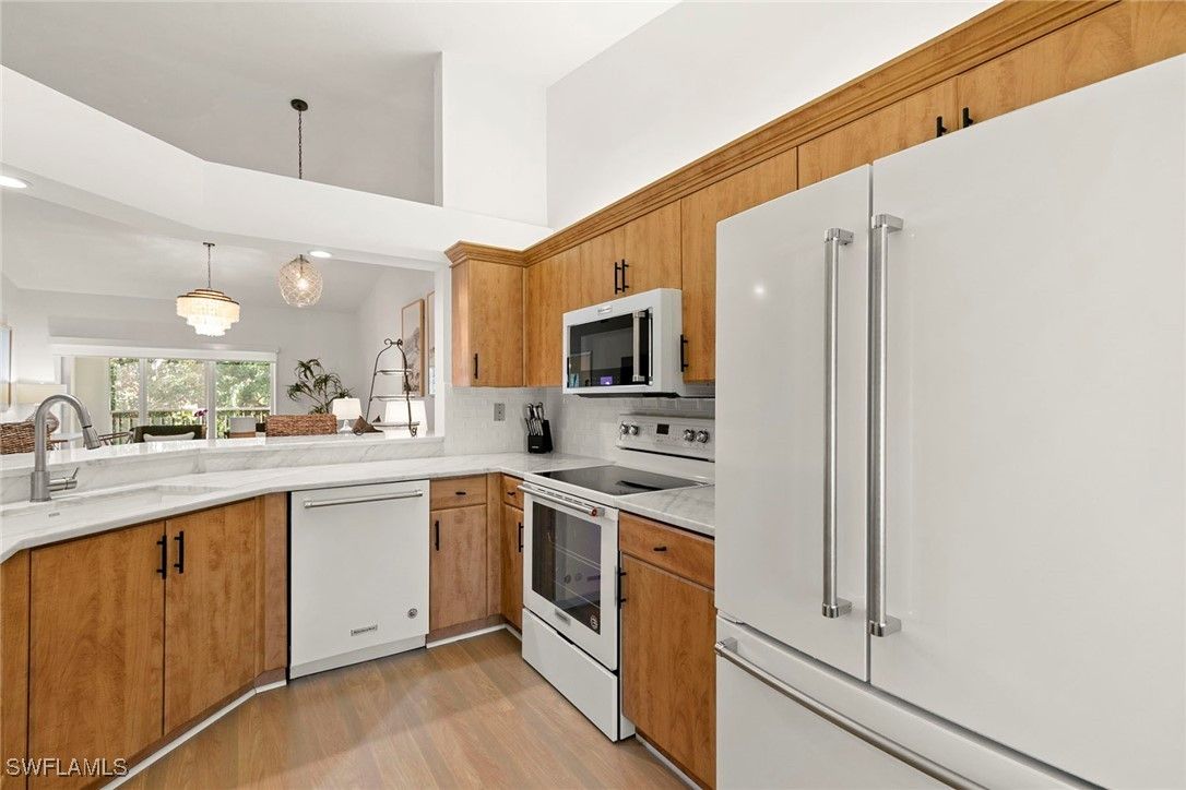 Beautifully renovated second floor condo in the heart of Pelican Bay. This light-filled residence in Laurel Oaks pairs vaulted ceilings with two screened lanais for an airy indoor-outdoor flow. Featuring an open living area, a split 2-bed/2-bath plan, and a well-placed beautifully updated kitchen with casual dining. Move in ready and peace-of-mind updates where it matters most: newer AC, plus community improvements: new roofs, new carports, and updated landscaping. Laurel Oaks offers a sparkling pool, spa, and social room in a quiet, park-like setting, while Pelican Bay delivers the lifestyle Naples is known for: private beach clubs with chair/umbrella service and beachfront dining, miles of walking paths, a fitness & wellness center, tennis and pickleball, and the convenient beach tram. All of this moments from Waterside Shops and Artis-Naples, and a short drive to Mercato and Fifth Avenue South. If you're seeking the Pelican Bay experience without a tower price or a project list, this Laurel Oaks condo is the effortless yes.