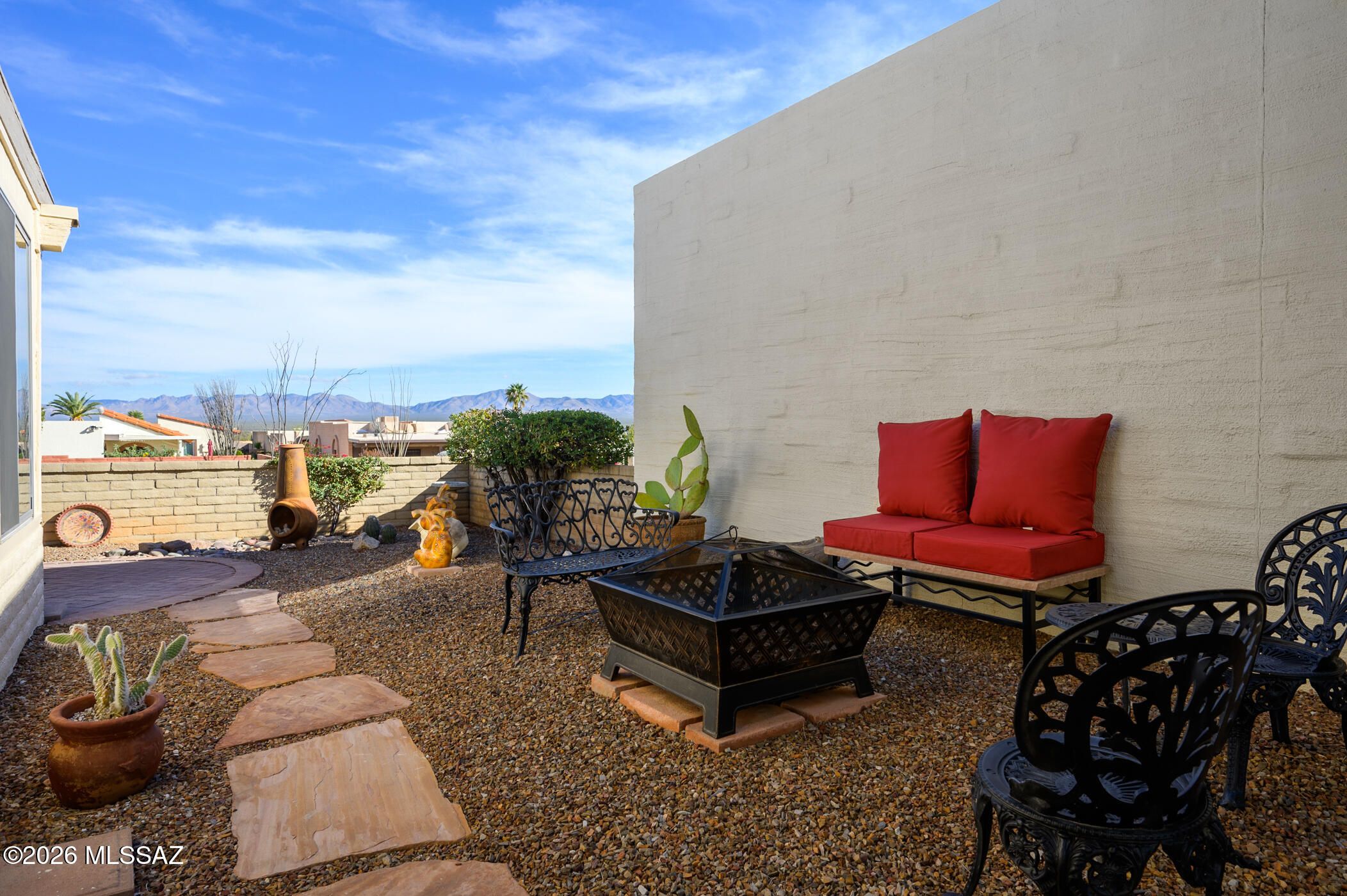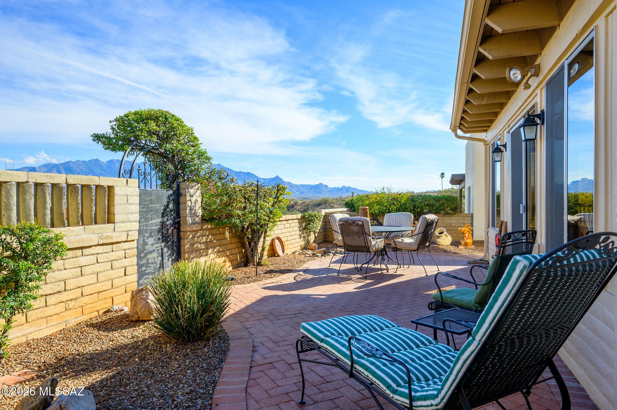 Wake up to the Santa Ritas painted in morning gold. This isn't just a 2-bedroom, 2-bathroom house; it's a front-row seat to Southern Arizona's most breathtaking theater. More than just a structure, this residence has been a deeply loved sanctuary, meticulously maintained with a level of pride and devotion that you'll feel the moment you cross the threshold. Bathed in natural light, the interiors offer a serene space where the desert's beauty is invited in. Whether you're sipping coffee as the peaks glow at sunrise or hosting friends against a twilight backdrop, this home turns scenery into a lifestyle. Because it has been so thoughtfully preserved, you can enjoy the peace of mind that comes with a truly turnkey home. The house comes with low-maintenance upkeep and full GVR access!