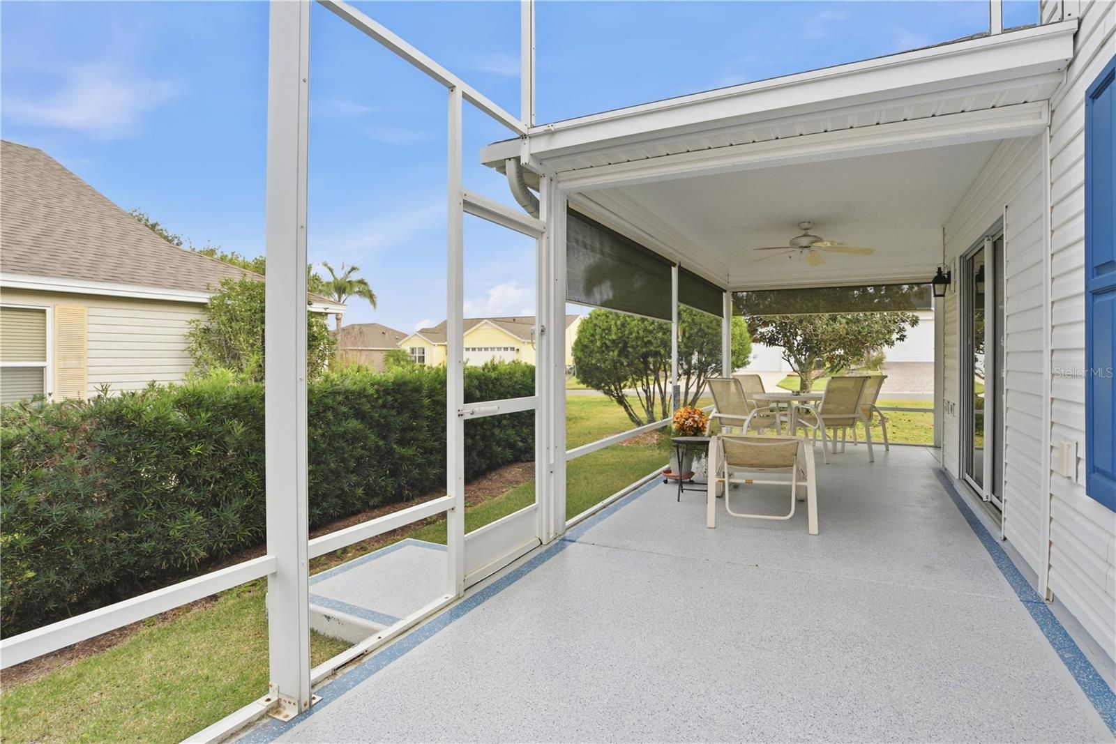 Check out these specs on this fabulous house! Location - just 2 miles south of Lake Sumter Landing, right off of Canal Street! That’s smack dab in the middle of ‘Between the Sixes!’ You are close to everything! Now let’s look at the house! This OLEANDER model located in the village of LARGO is not to be missed! As you enter the house you are greeted by the stunning PALLADIUM window that is unique to this model. It floods the room with gorgeous northern light all day. The house sits on a large corner lot that even has enough room for a pool! The home has had many upgrades to increase not only its value but also its livability and comfort. The ROOF is only 5 years old. The original driveway has been replaced with a beautiful painted driveway. All counters in the house are GRANITE. The sparkling STAINLESS STEEL APPLIANCES are LG BRAND and are only 5 years old. Enjoy the water softener and the TILE and LVP flooring! The Maytag washer and dryer are only seven years old and there is even sun film on the windows to help keep the house cool and protect your privacy. Don’t miss the EPOXY garage floor, the TILE SHOWERS and the PAINTED LANAI FLOOR and check out the beautiful glass on the entry door. Make sure to include this beautiful house on your short list of properties to see on your home search!