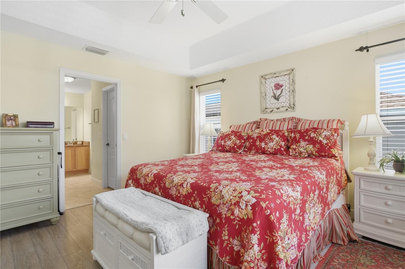 - Cathedral Ceiling(s), Ceiling Fan(s), Coffered Ceiling(s), Eat-in Kitchen, Solid Surface Counters, Tray Ceiling(s), Window Treatments