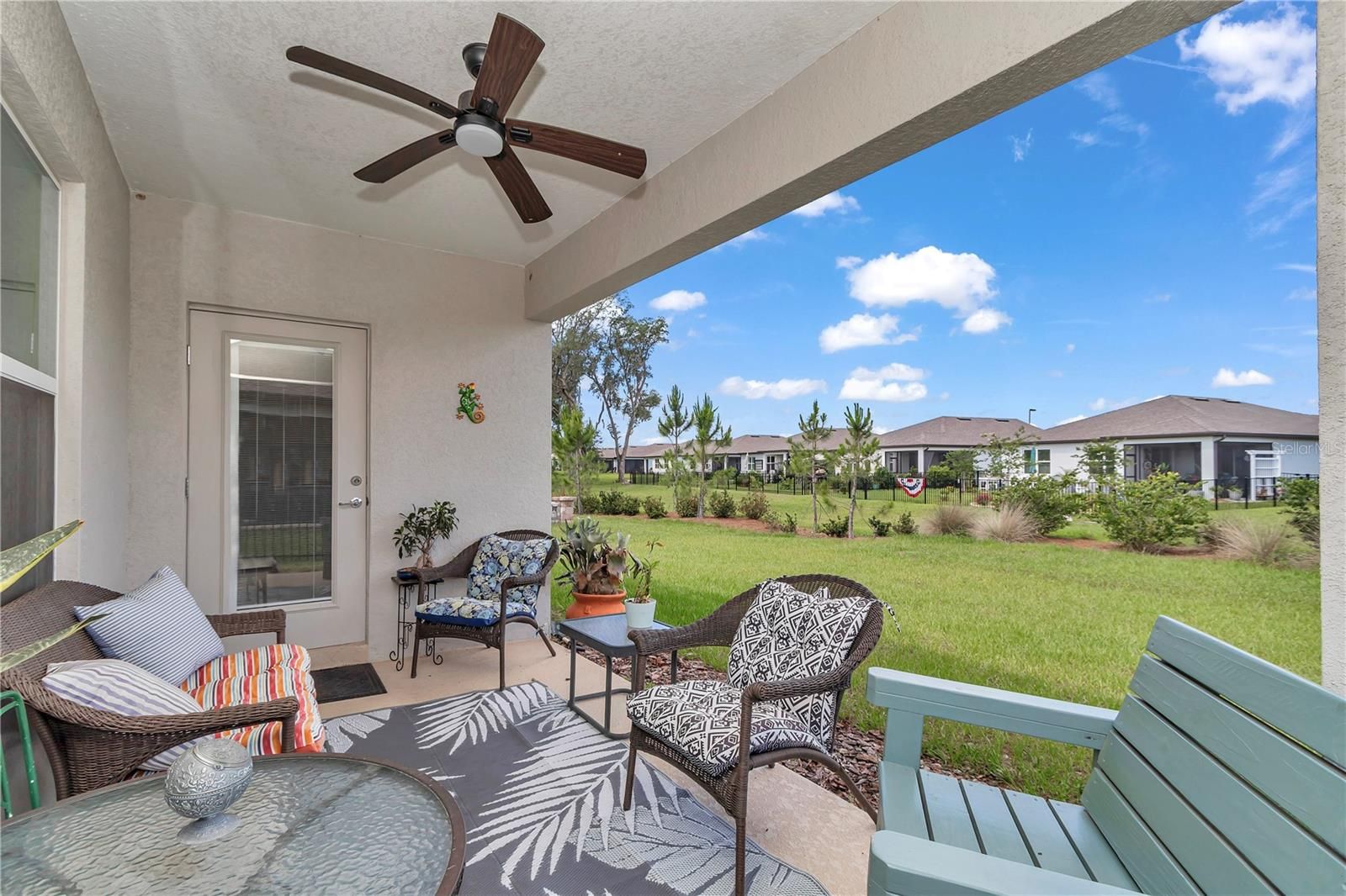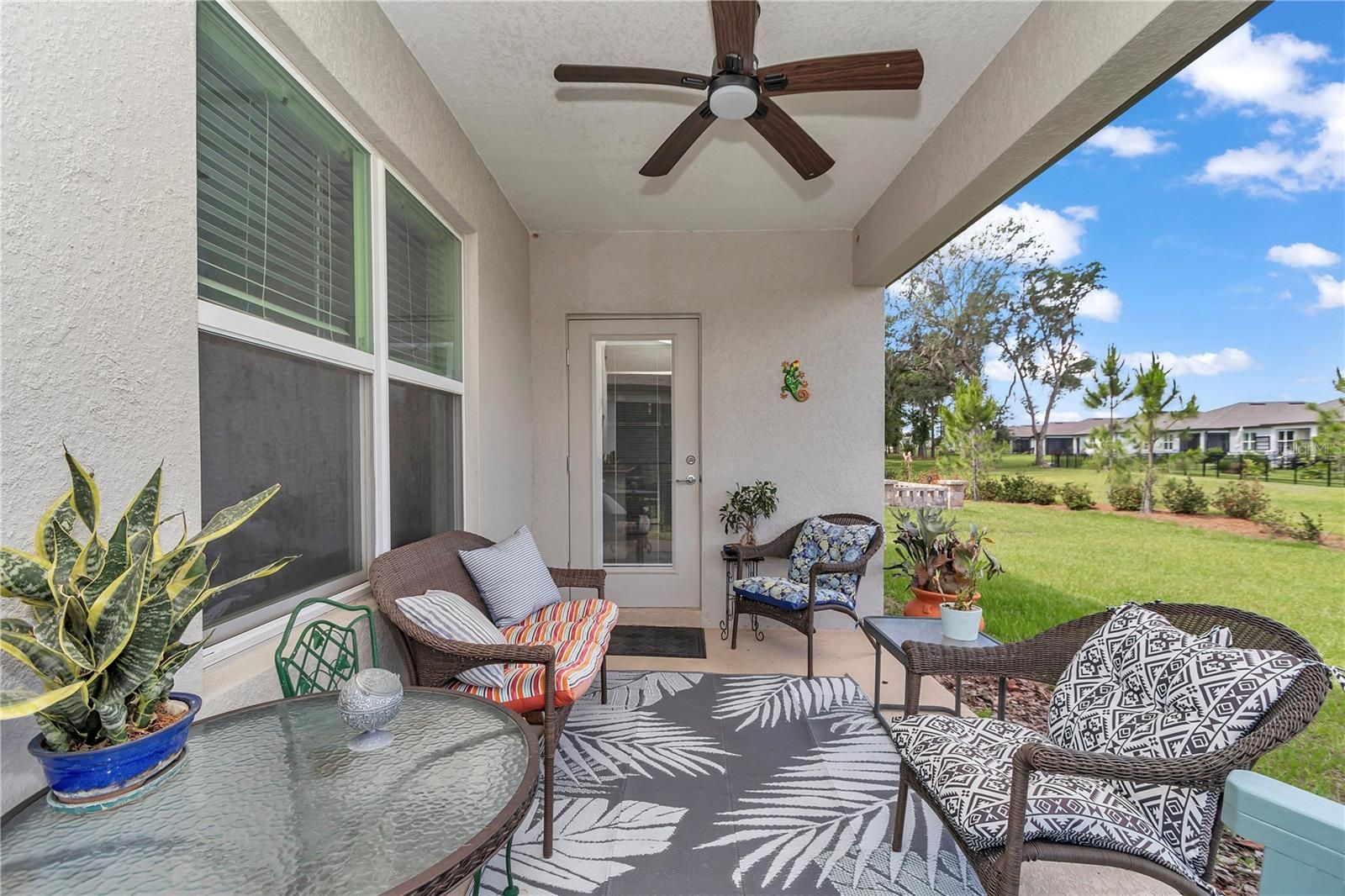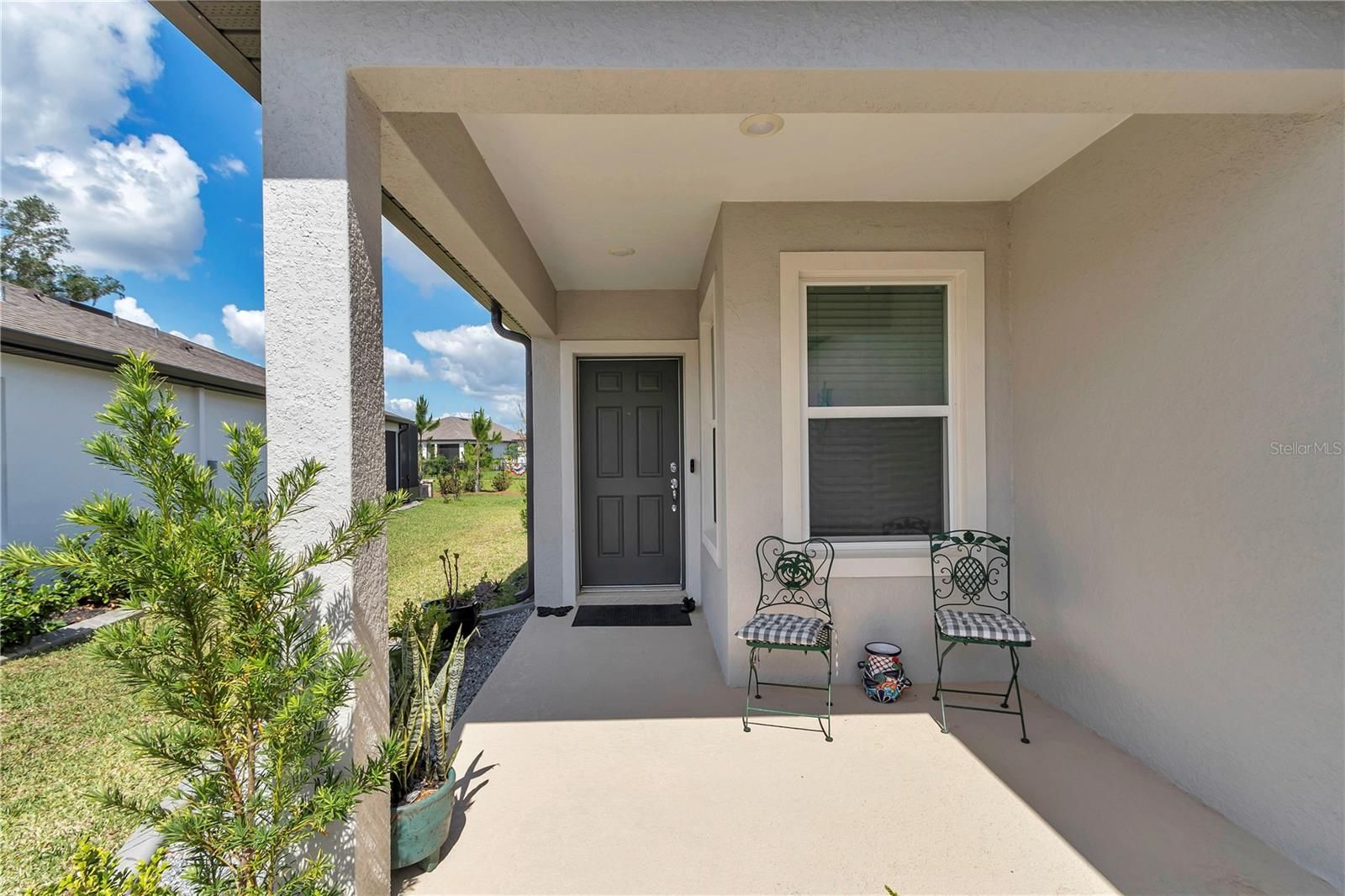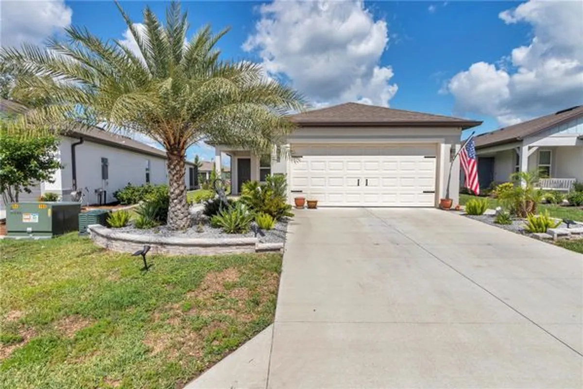 Seller motivated in this Candlewood model by Del Webb in Stone Creek a sought after 55+ community with guarded, gated entrance. This golf course and golf cart community features the best of the best amenities! This 2023 Candlewood has the perfect curb appeal with over four grand spent in raised stone gardens featuring a Royal Palm and lighting leading to the covered front porch. The current owner upgraded the the floor when building the home to tile with carpet in the bedrooms. This phenomenal plan features two bedrooms and two bathrooms plus a flex room that could be used for an extra den, hobby room or office. This open floor plan is very inviting with modern finishes. The focal point of the home is the spacious living room, dining and modern kitchen. The kitchen features spacious island with quartz countertops, stainless steel appliances and backsplash. Just off of the living room is the primary bedroom featuring double vanity, countertops and upgraded seamless glass door shower. The second bedroom is across the home and has basically its own bathroom with modern conveniences. There’s a two car garage with tier level storage allowing you to park your car underneath. Step back through the main Living and through the kitchen out to the cupboard lanai into your peaceful backyard. This home has irrigation with wifi, rain gutters, and an additional in upgrades in the home with modern lighting, new fans, wi-Fi thermostat, induction stove. 2025 water softener.The current owner is leaving the 2 TVs in the kitchen and in the spare bedroom. Low HOA and incredible amenities surround you in this one of a kind Candlewood. Golf cart available with an approved offer.