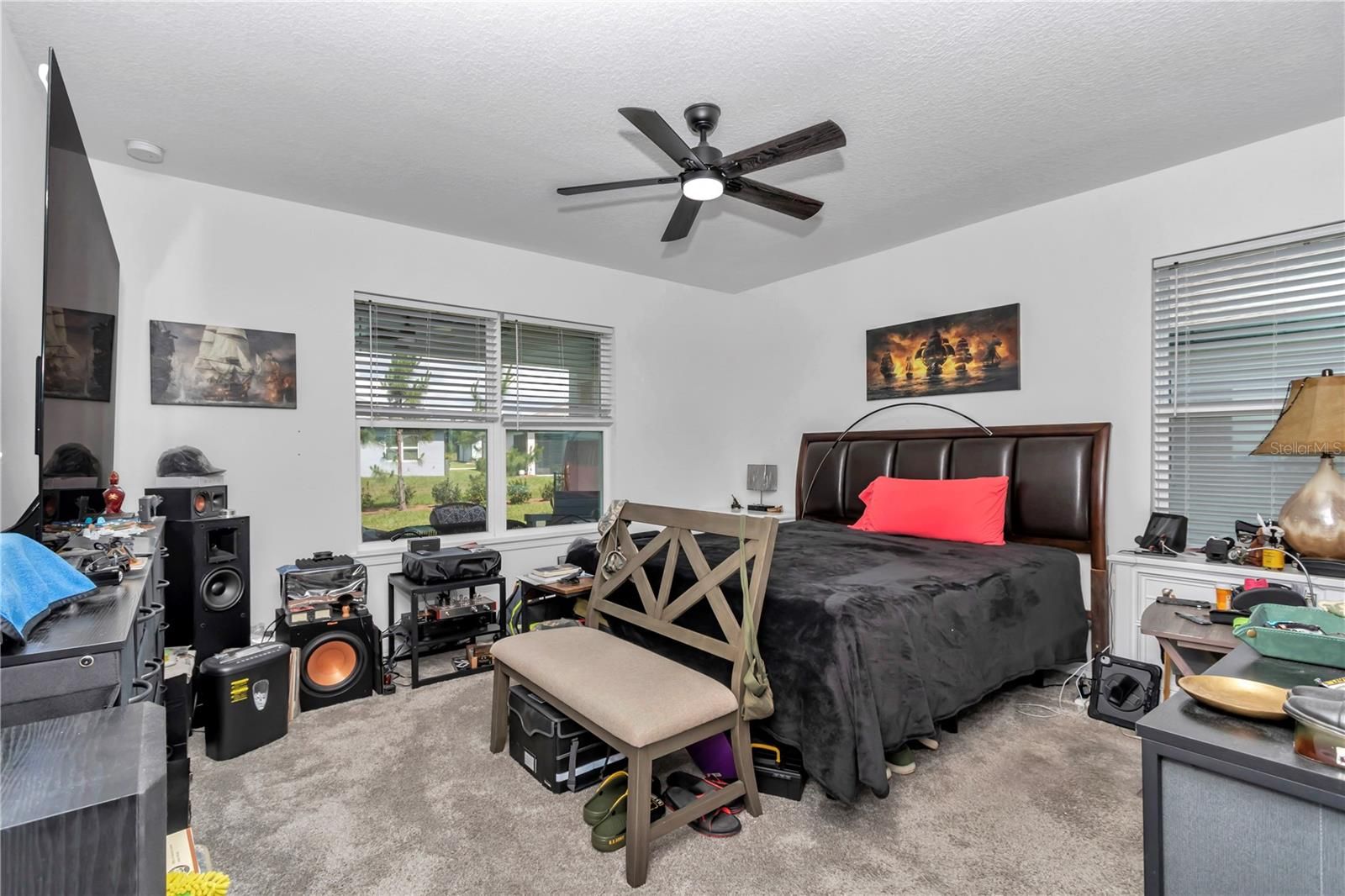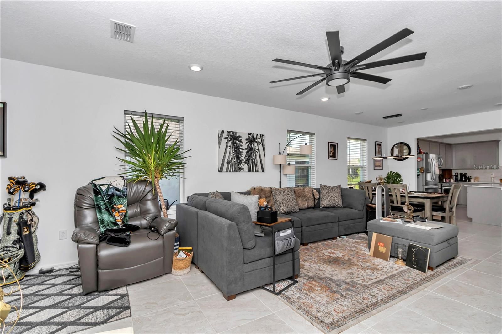 - Ceiling Fan(s), Eat-in Kitchen, Living/Dining Room, Open Floorplan, Main Level Primary, Stone Counters, Thermostat, Walk-In Closet(s), Window Treatments