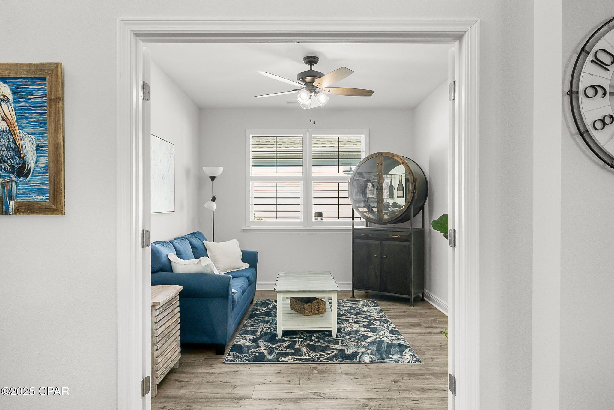 **JUST REDUCED. Sellers Emergency Move out of state. Their misfortune is your deal!**. Welcome to your dream coastal retreat! This exquisitely designed Beach Collection Parrot Model in Phase 3 of the highly desirable Latitude Margaritaville Watersound community is a true gem, offering a RARE PRESERVE VIEW FROM BOTH THE LANAI AND THE FRONT OF THE HOME. This beautifully upgraded 2-bedroom, 2-bath residence includes a sought-after CRAFT/HOBBY ROOM with a gorgeous custom barn door, a versatile den with elegant French glass-pane doors, and an extended driveway on both sides for additional parking and enhanced curb appeal. The inviting foyer features a chandelier and opens to a spacious, open-concept living area highlighted by CUSTOM CEILING BEAMS, a distinctive fireplace with mantle, crown molding, and 5�'' baseboards. The CHEF-INSPIRED KITCHEN anchors the home with abundant cabinetry featuring soft-close pull-out shelves and crown molding, granite countertops, glass tile backsplash, and under-cabinet lighting. STAINLESS STEEL APPLIANCES include a French door refrigerator with a custom flex-temperature drawer for wine or snacks. Adjacent to the kitchen, the craft/hobby room offers built-in custom cabinetry and under-counter lighting. Oversized sliding doors lead to the EXTENDED, SCREENED LANAI with a sleek EPOXY FINISH, perfect for enjoying peaceful preserve views and entertaining guests. The primary suite is a tranquil retreat with a tray ceiling, bay window, and custom wood-shelved closet. The en suite bath features floor-to-ceiling tile, granite countertops, and added storage. The upgraded laundry room includes built-in cabinetry, granite counters, a sink, and washer and dryer. This meticulously maintained home includes numerous POST-CONSTRUCTION UPGRADES, such as CUSTOM WOOD PLANTATION SHUTTERS (Made in the USA), designer ceiling fans and lighting, security and electronics enhancements, fabric storm/hurricane shutters, epoxy-coated garage flooring with custom shelving, Simply Safe Alarm System and the expanded driveway. Located just 7 miles from the sugar-white sands of the Emerald Coast, Latitude Margaritaville Watersound is a premier 55+ community offering an unmatched lifestyle. Residents enjoy a resort-style pool, indoor lap pool, full-size movie theater, state-of-the-art fitness center, pickleball courts, dog spa, woodworking room, pottery studio, and multiple creative spaces. The Bar & Chill, bandshell, and amenity center host live music seven days a week, creating an energetic and social atmosphere. This home is a short golf cart ride to all amenities and breathtaking sunsets over the Intracoastal Waterway. Don't miss this rare opportunity to live the ultimate Margaritaville lifestyle�where elegance, comfort, creativity, and fun come together. Schedule your tour today!
