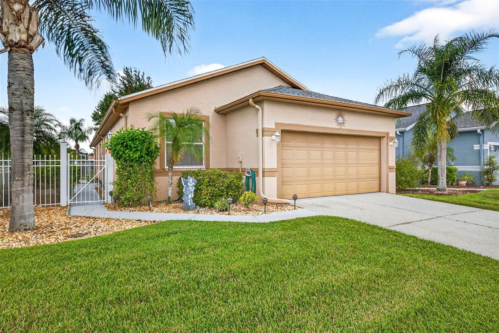 One or more photo(s) has been virtually staged. PRICE IMPROVEMENT! Beautifully maintained, light-filled 3-bed, 2-bath home in THE GROVES, a premier 55+ gated golf community. Designed for comfort and easy living, the open-concept layout features a spacious living and dining area, a large kitchen with an eat-in space, and a screened lanai with serene conservation views. The primary suite offers a true retreat with dual sinks, a walk-in shower, and an oversized walk-in closet. KEY HIGHLIGHTS: quartz counters, stainless appliances, 2024 range, 2025 water heater, 2019 roof, and durable tile and vinyl plank flooring throughout. The split-bedroom floor plan ensures privacy for guests, while the two-car garage with extra storage and indoor laundry add convenience. Located on a quiet cul-de-sac with no through traffic. EXTRA PERKS: 30-day minimum rental allowed (up to 4x/year), ideal for flexibility and investment. Plus, exterior painting is scheduled to begin January 2026, giving the new owner the exciting opportunity to choose their home’s color! Enjoy resort-style living with world-class amenities including a clubhouse, heated pool and spa, fitness center, restaurant and bar, 18-hole golf course, tennis, pickleball, bocce, shuffleboard, and dog park. The community is golf-cart accessible to Publix and nearby dining, making everyday living both fun and convenient. Come experience the best of Florida living—schedule your private tour today!