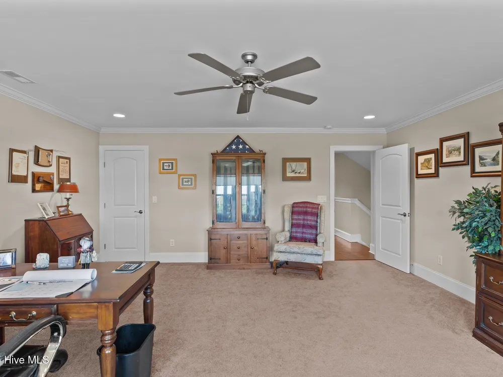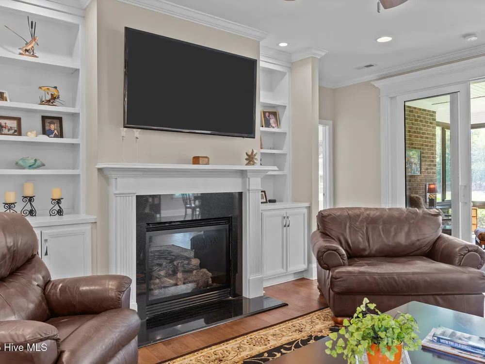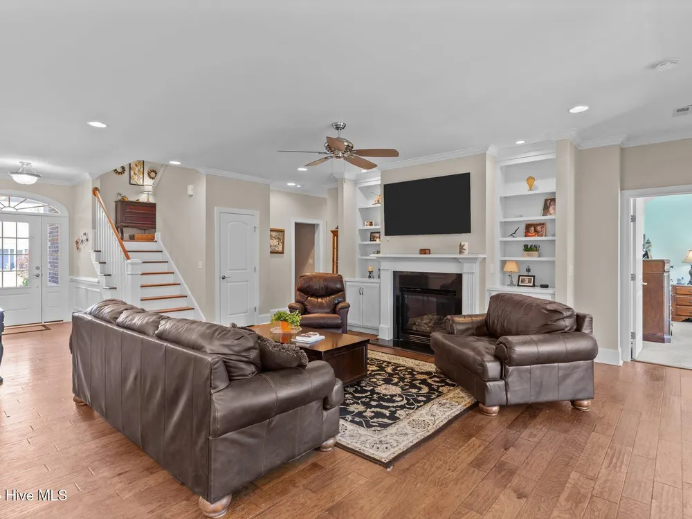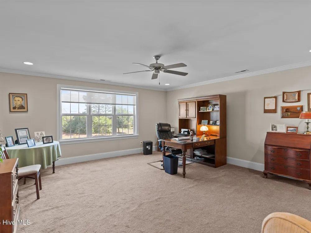 - Blinds/Shades, Walk-in Shower, Workshop, Walk-In Closet(s), Entrance Foyer, Pantry, Master Downstairs, Kitchen Island, High Ceilings, Gas Log, Ceiling Fan(s)
