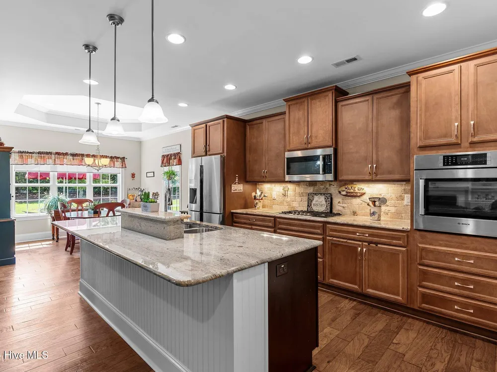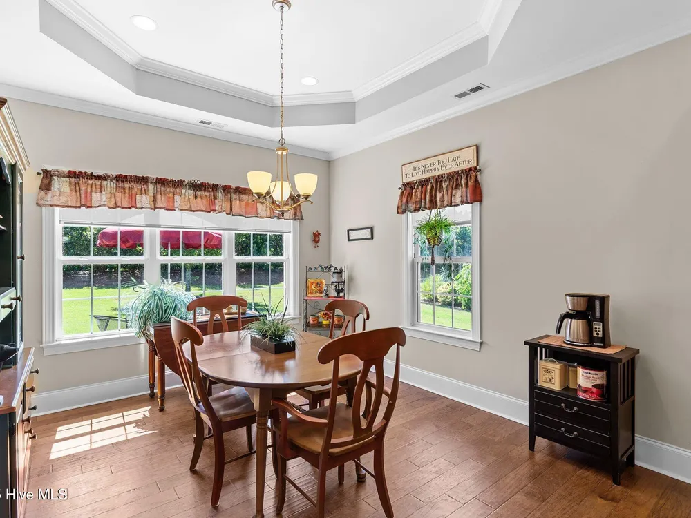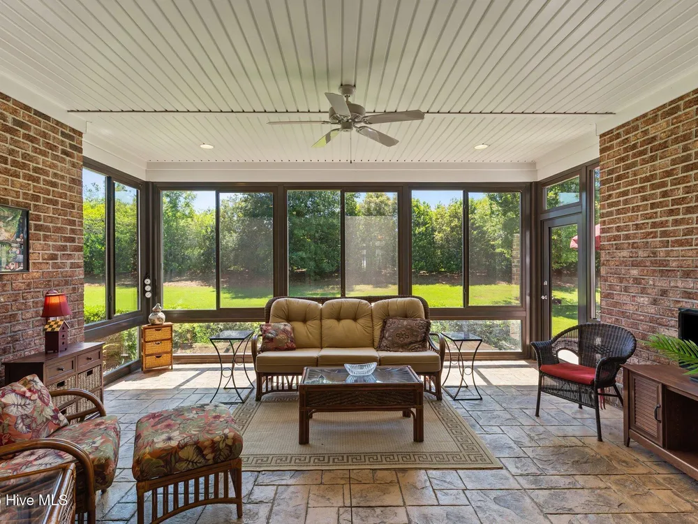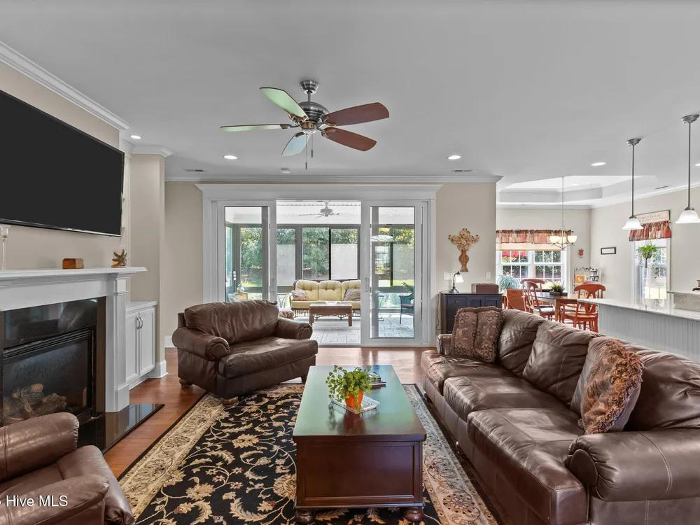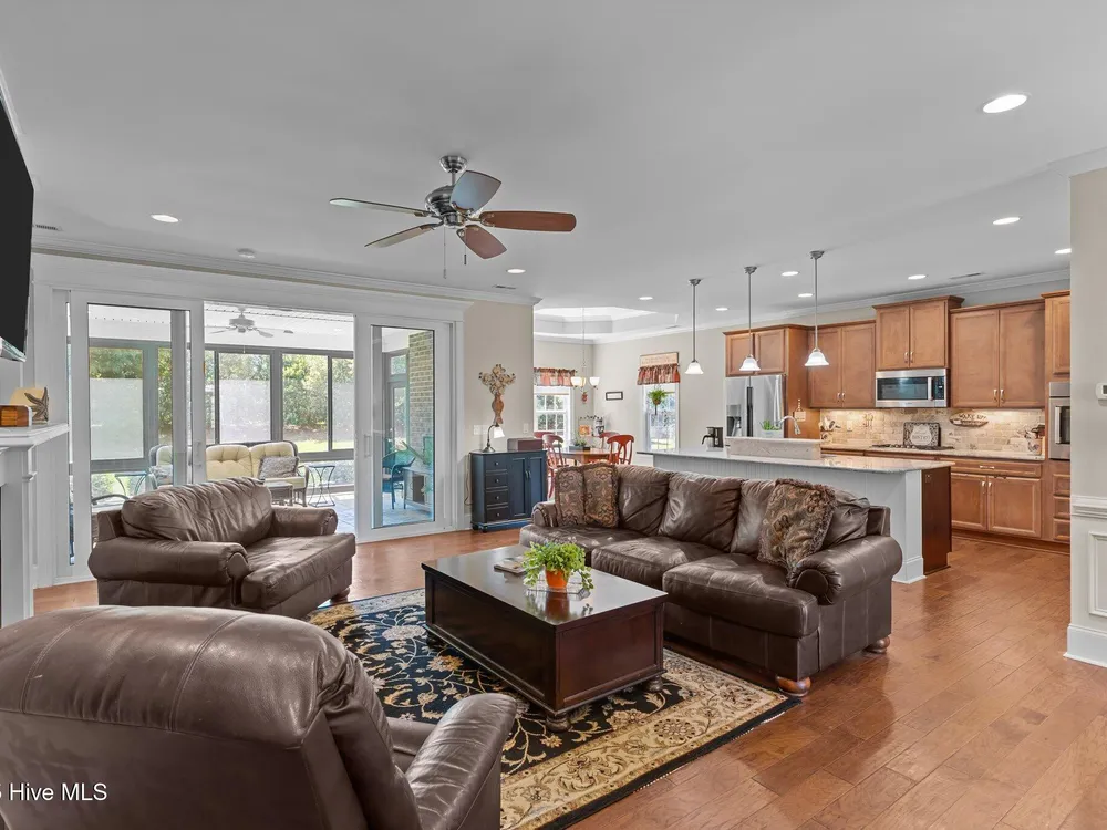 Experience luxury living in this exquisite 4-bedroom, 3-bath executive home by Horizon, perfectly situated in the prestigious, amenity-rich Compass Pointe community. Designed for both elegance and comfort, this residence boasts an open-concept floor plan ideal for effortless entertaining and everyday living.At the heart of the home is a chef's dream kitchen, featuring a large center island, premium stainless steel appliances, gas cooktop, wall oven, and sleek finishes throughout. Just off the kitchen, unwind in the enclosed glass lanai--an ideal retreat to savor your morning coffee while overlooking the beautifully landscaped, private backyard.The main level showcases a serene primary suite with tranquil views, a spa-inspired bath, and an expansive walk-in closet. A secondary guest bedroom is also conveniently located on the main floor, while two generously sized guest rooms upstairs offer comfort and privacy for visitors.Thoughtful details include coffered ceilings, designer ceiling fans, and oversized walk-in closets for abundant storage. The well-appointed laundry room offers cabinetry and a utility sink, while the oversized two-car garage features durable epoxy flooring and a built-in workshop area--perfect for hobbyists and craftspeople alike.Living in Compass Pointe means enjoying a world-class lifestyle with access to a private golf course, resort-style pools, a lazy river, tennis and pickleball courts, a kayak launch, dog park, and scenic walking trails. Located just minutes from historic downtown Wilmington and the pristine beaches of Brunswick County, this is coastal Carolina living at its finest.Schedule your private tour today and discover why this exceptional home won't last long.
