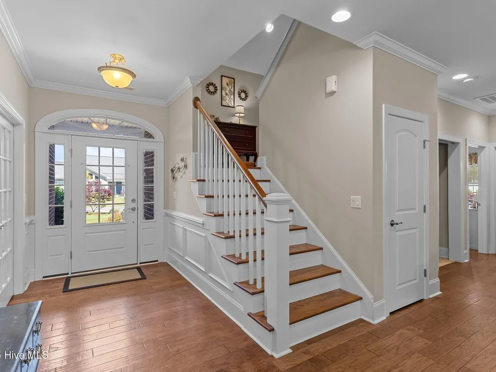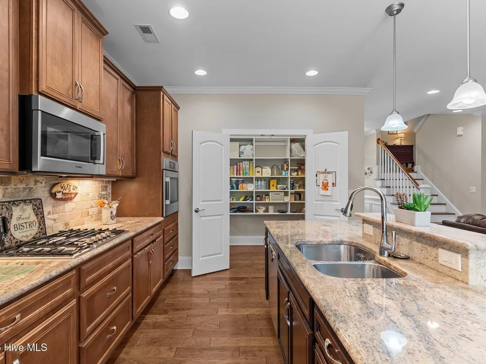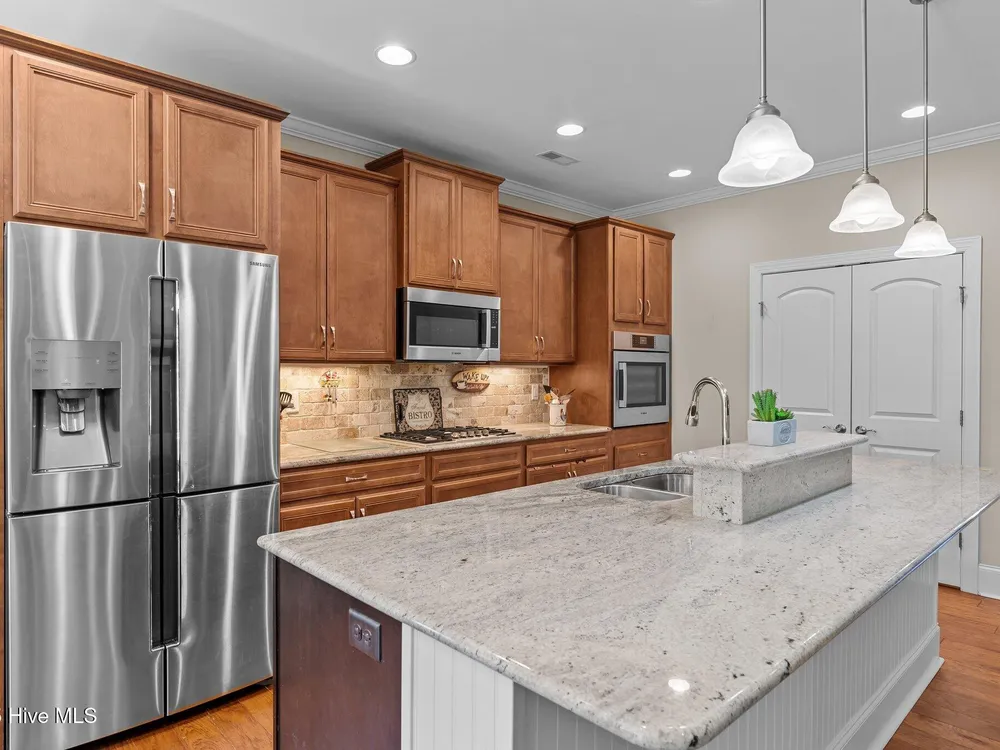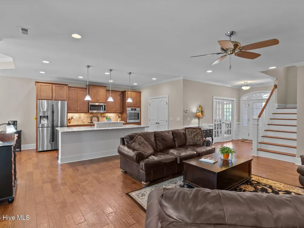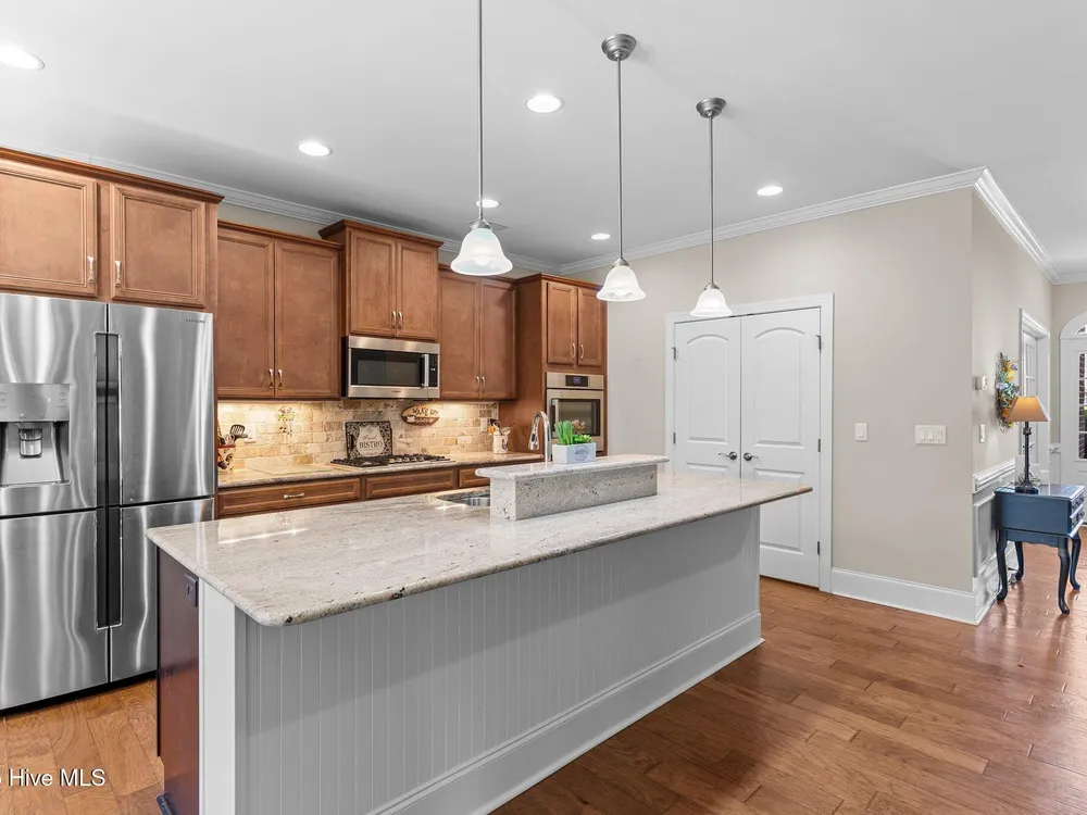 Experience luxury living in this exquisite 4-bedroom, 3-bath executive home by Horizon, perfectly situated in the prestigious, amenity-rich Compass Pointe community. Designed for both elegance and comfort, this residence boasts an open-concept floor plan ideal for effortless entertaining and everyday living.At the heart of the home is a chef's dream kitchen, featuring a large center island, premium stainless steel appliances, gas cooktop, wall oven, and sleek finishes throughout. Just off the kitchen, unwind in the enclosed glass lanai--an ideal retreat to savor your morning coffee while overlooking the beautifully landscaped, private backyard.The main level showcases a serene primary suite with tranquil views, a spa-inspired bath, and an expansive walk-in closet. A secondary guest bedroom is also conveniently located on the main floor, while two generously sized guest rooms upstairs offer comfort and privacy for visitors.Thoughtful details include coffered ceilings, designer ceiling fans, and oversized walk-in closets for abundant storage. The well-appointed laundry room offers cabinetry and a utility sink, while the oversized two-car garage features durable epoxy flooring and a built-in workshop area--perfect for hobbyists and craftspeople alike.Living in Compass Pointe means enjoying a world-class lifestyle with access to a private golf course, resort-style pools, a lazy river, tennis and pickleball courts, a kayak launch, dog park, and scenic walking trails. Located just minutes from historic downtown Wilmington and the pristine beaches of Brunswick County, this is coastal Carolina living at its finest.Schedule your private tour today and discover why this exceptional home won't last long.