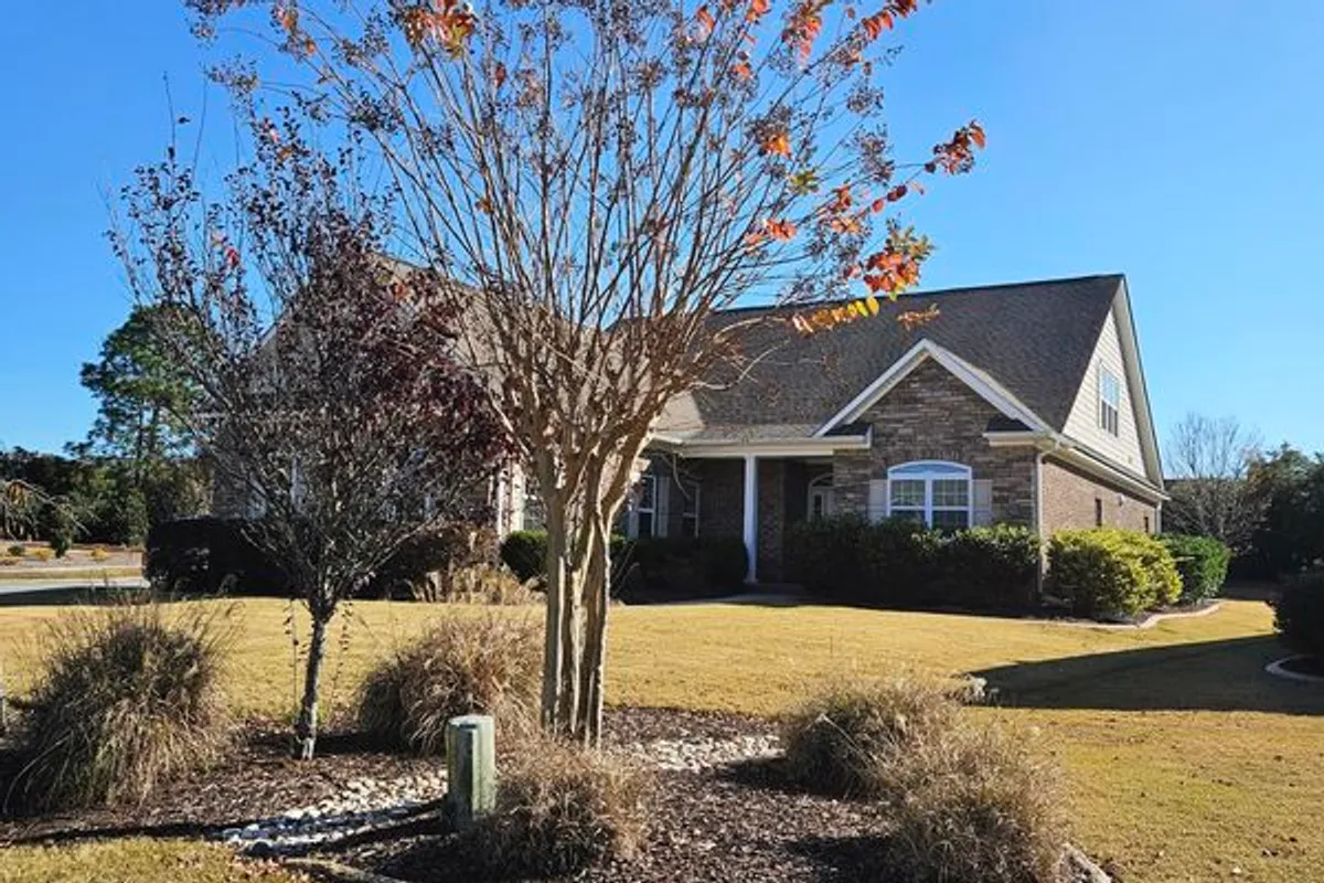 Welcome to the charming coastal town of Leland, NC. Take advantage of our 2-story, exquisite brick home, located in the highly sought-after 50+ community of Compass Pointe. Spanning 2,800 square feet, this custom 4 bed, 3.5 bath home built by award-winning Horizon Homes is move-in ready. As the 2nd owners, you'll appreciate its value over time due to its desirable CORNER .38-acre lot location. Walk through the open floor plan and scope out the chef's dream kitchen boasting premium Bosch professional-grade appliances, a large granite countertop center island,a surprising spacious walk-in pantry and hardwood flooring--created from natural wood and is known for its classic beauty, durability, and ability to add value to a home. The primary bedroom is a quiet sanctuary with a 1st floor guest room nearby. Two more guest rooms on the 2nd floor, one currently used as an office, completes this property. You'll find an abundance of closets and walk-in storage making it ideal for those who value organization and have a treasured collection of belongings. Some high-end details include coffered ceilings, ceiling fans, and an epoxy-coated garage floor. Off the living room, enter a low maintenance, enclosed glass lanai-a place perfect for reading, playing games, or simply enjoying conversations with friends. The backyard oasis is a mix of fresh-cut grass & tall privacy shrubs waiting for a hammock or a gardeners' touch. Living in Compass Pointe means enjoying a vibrant social community with a myriad of amenities like its grand lanai, outdoor pools with a cabana bar, a lazy river, wellness center, tennis and pickleball courts, a kayak launch, dog park, and an extensive network of walking trails. If you are an avid & ardent golfer with membership in CP's private championship 18-hole golf course, then its Heritage Collection of Golf Clubs offers worldwide reciprocal access across the US, 41 clubs through affiliation with Links2Golf and The Registry Collection.