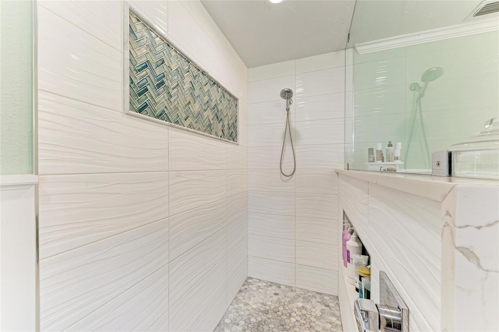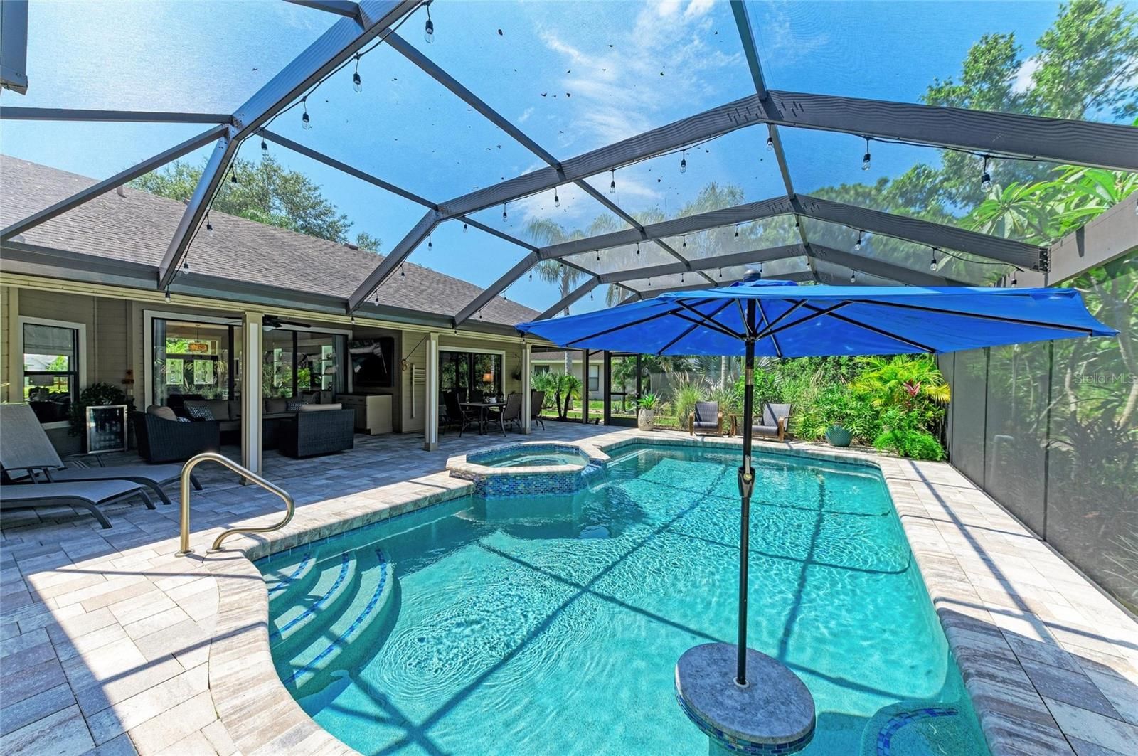 BRAND NEW ROOF WITH TRANSFERABLE WARRANTY! If you are looking for a home that has been completely remodeled, on a quite cul-de-sac, near everything Sarasota has to offer, then you have found the ONE! This home has undergone an extensive remodel within the last couple years. This kitchen was designed with entertainment in mind with a quartz island that is OVER 8 FEET SQUARE! The custom kitchen has plenty of solid wood cabinets, custom drawer inserts and quartz countertops. Kitchen Aide stainless steel appliances. The family room includes an 11+ foot long custom built-in and can house up to an 85 inch tv. The primary bedroom is quite the retreat with a custom pocket door to separate the sleeping area from the ensuite and walk-in closet. The walk-in closet has been custom built with matching sides for his and hers with a shoe rack on both sides for all of your shoes and boots. There is also plenty of storage in the drawers for your jewelry and clothes along with a 8 foot full length mirror to check out your finished look. The ensuite includes a walk in shower for ease and comfort. The guest bathroom has been customized with a walk in shower, sliding glass door, new vanity with matching quartz top, along with some live-edge shelving. The home has had the popcorn ceiling removed, recessed lighting added a few choice light fixtures were added as well. As you step outside you will need to decide where you are going to entertain. The under truss area is large and has a custom tongue and groove stained plank ceiling for your ambiance while sitting around the firepit or enjoying dinner at the table. The T.V. mount allows you to be sitting at the custom built-in table in the pool enjoying your favorite drink while watching your team win! If grilling is your thing then this home does not disappoint. Enjoy the outdoor "GRILLZEEBO" for your grilling needs then have a seat at the outdoor fire pit. Enjoy sitting around the fire with your friends and your favorite drink after a long day swimming in the heated oversized pool. Lots of time and thought went into the lovely landscaping to provide the quintessential Florida vibe. Low voltage lighting provides evening ambiance and lights the way on the lovely paver path from the front of the home to the rear. There is a custom feel to this house with all the outdoor wood projects that make this home one of a kind.