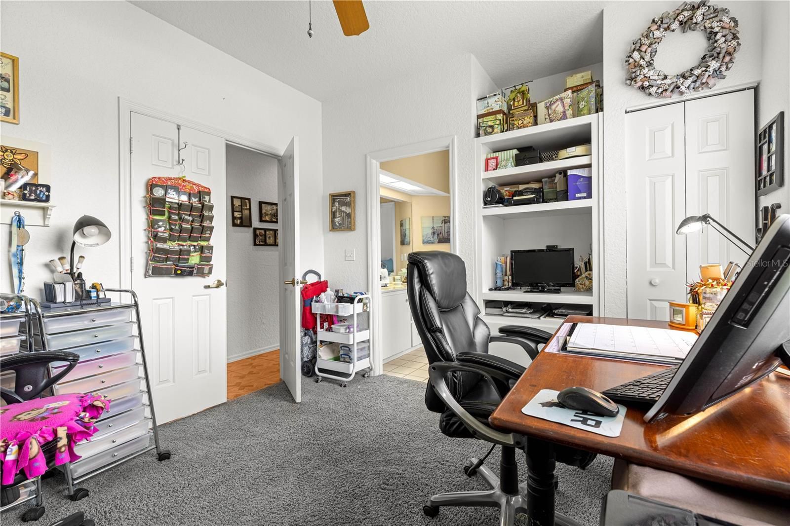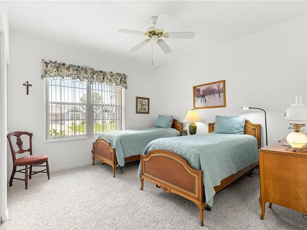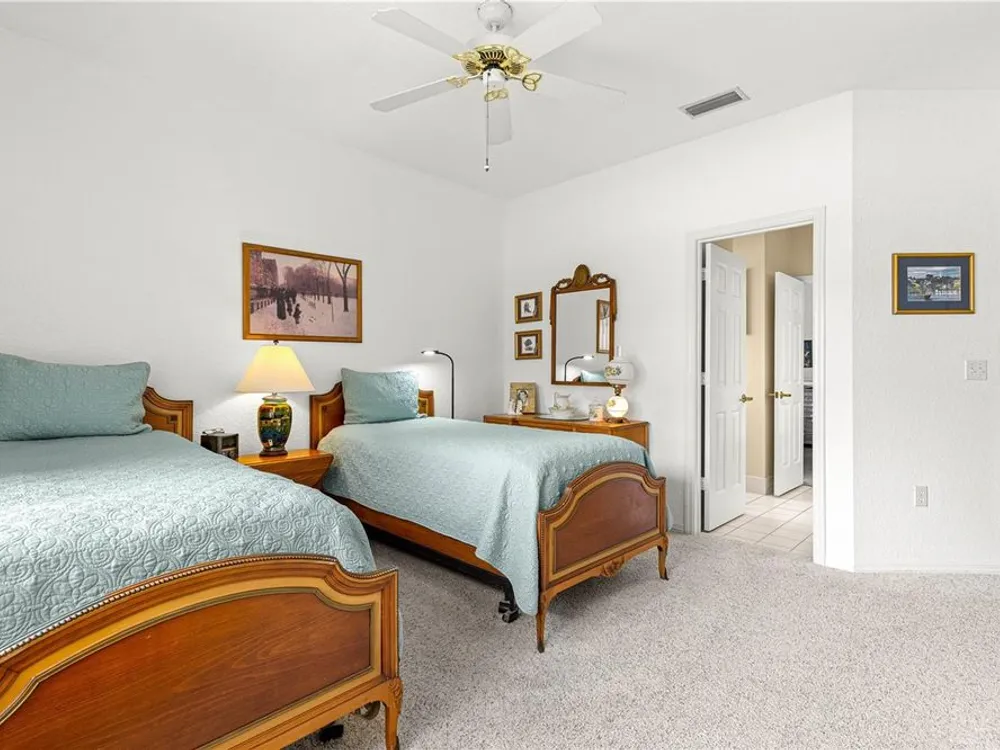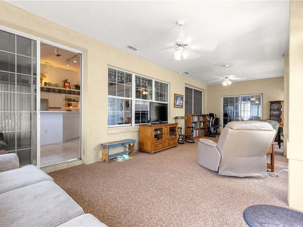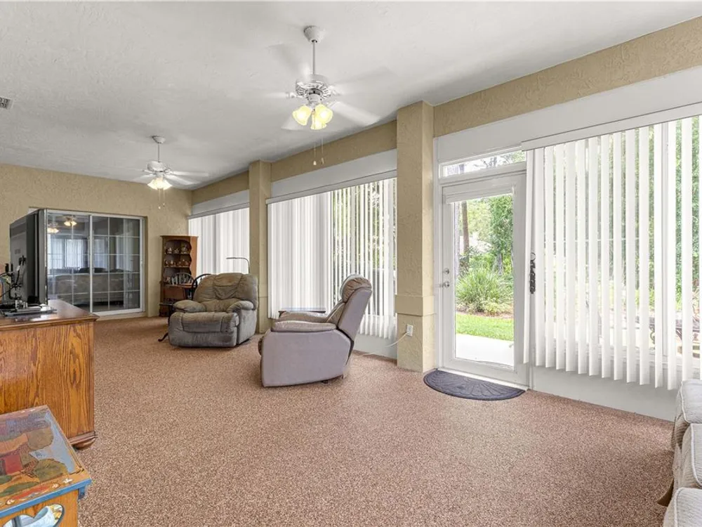 Welcome to this lovely Monte Carlo model on a PRIVATE home site! The attractive landscaping sets the stage for this home. Featuring tall ceilings, the living room is welcoming and warm. The double sided, wood burning fireplace would be the perfect location for holiday traditions. The guest bedrooms are set in a jack and jill configuration. The primary bedroom is huge with a large walk-in closet. the primary bath features a cultured marble shower, separate sinks and a deep cultured marble tub. The kitchen is perfectly suited for those cooking for a large party with tons of cabinets and counterspace. The large island in the kitchen is great at a buffet server or for your morning coffee. Updated stainless steel appliances and a built in pantry add to the many pluses in the home. The laundry room has built in cabinets and the washer and dryer are also included. The half bath is conveniently located off the kitchen. There is even room for a workbench and a 10x10 area in the garage with pull down stairs for storage. The 32x11 Florida Room that is under heat and air is the perfect space to bring the indoors and outdoors together and enjoy the private views this homesite has to offer. With a 2015 AC and 2022 roof this home is ready for it's new owners. Schedule your private tour today!