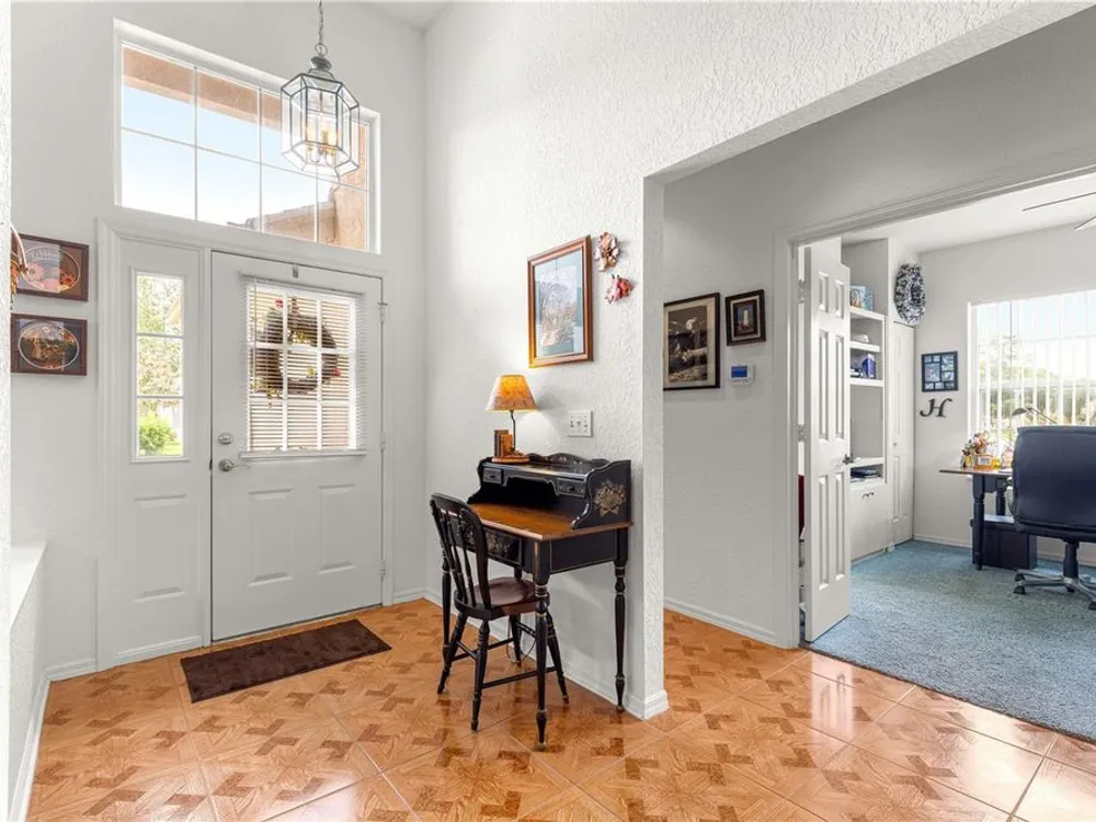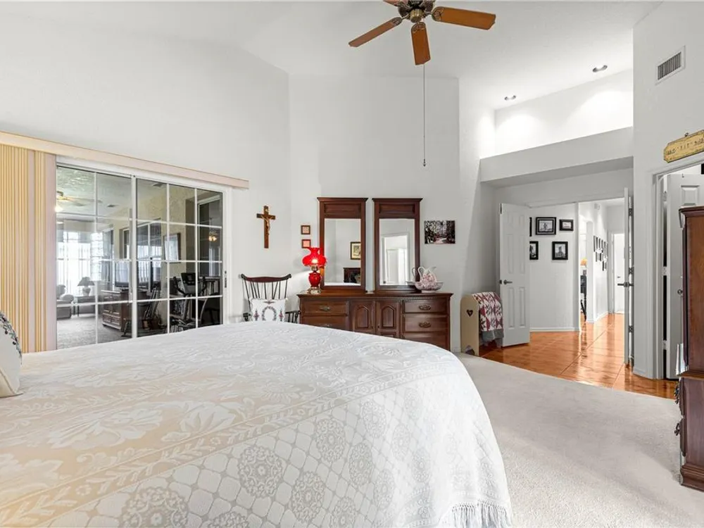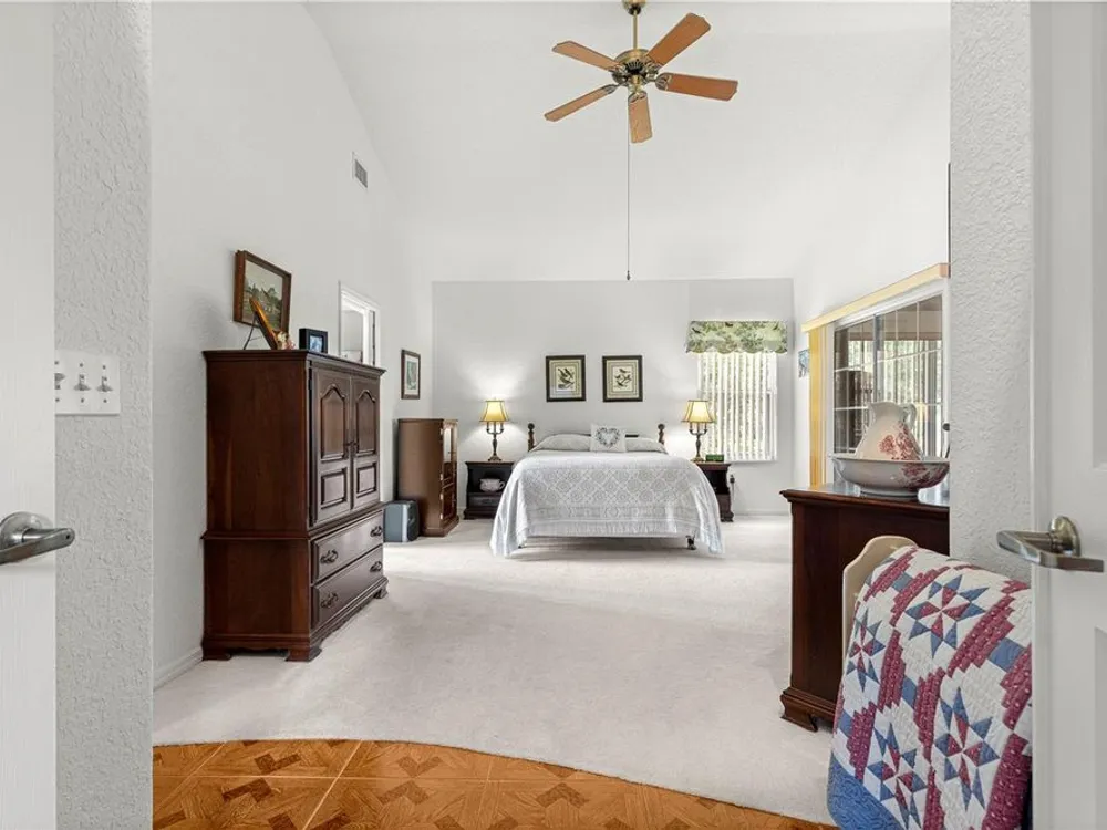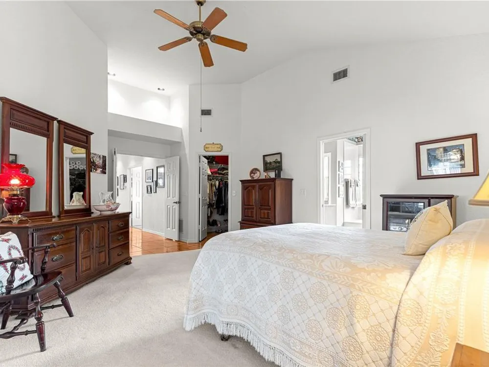 - Ceiling Fan(s), Eat-in Kitchen, High Ceilings, Main Level Primary, Thermostat, Walk-In Closet(s), Window Treatments