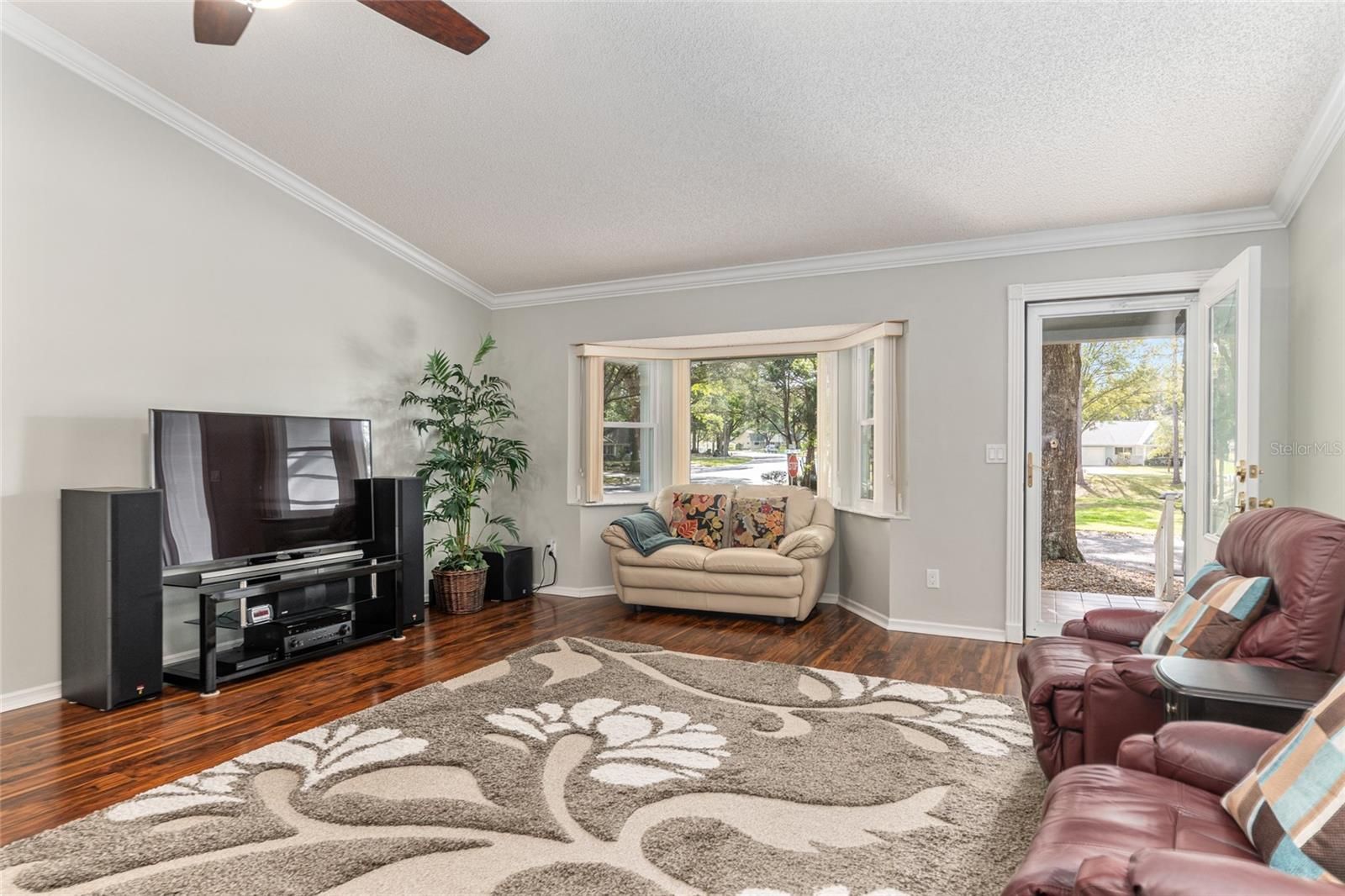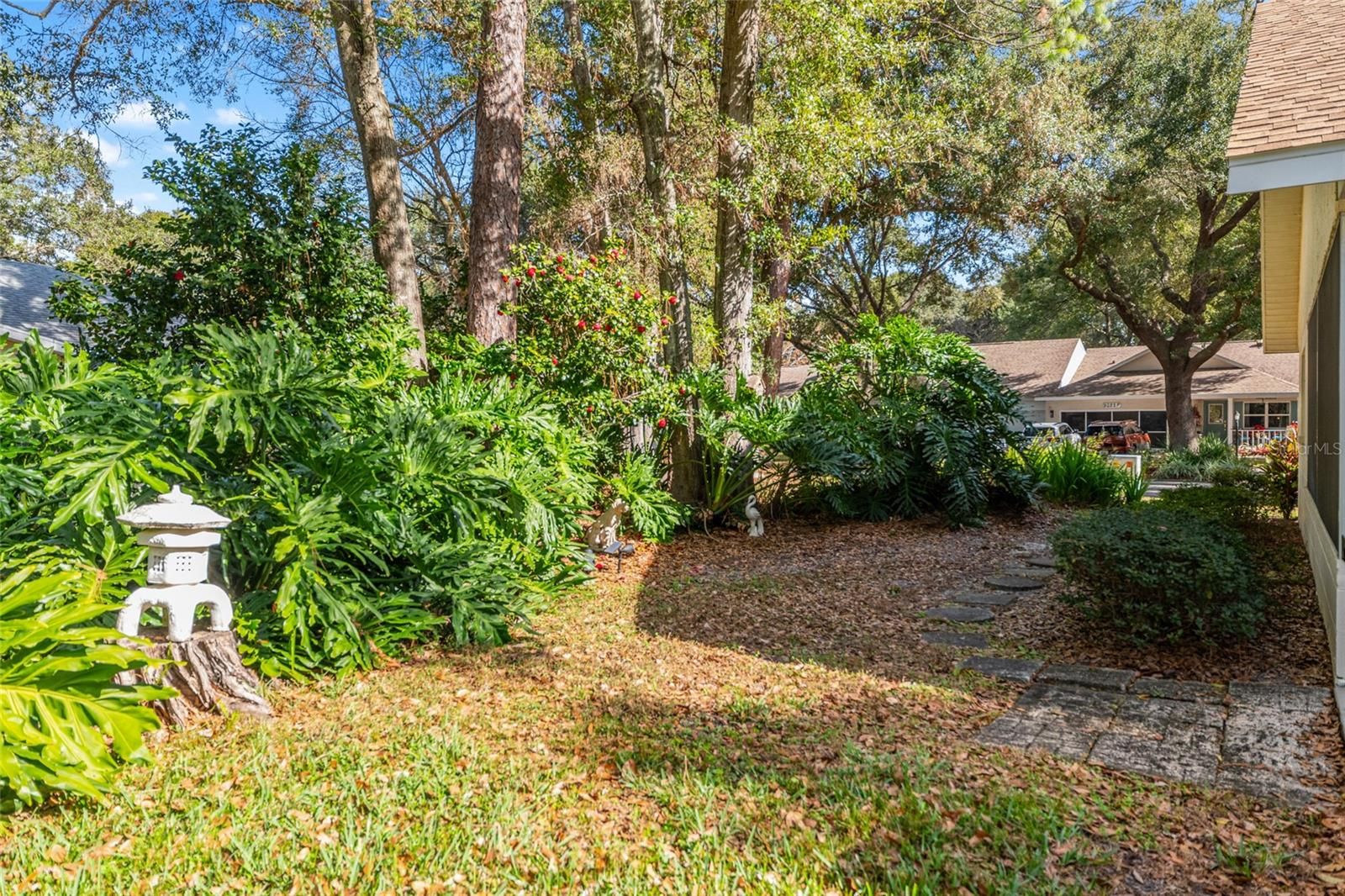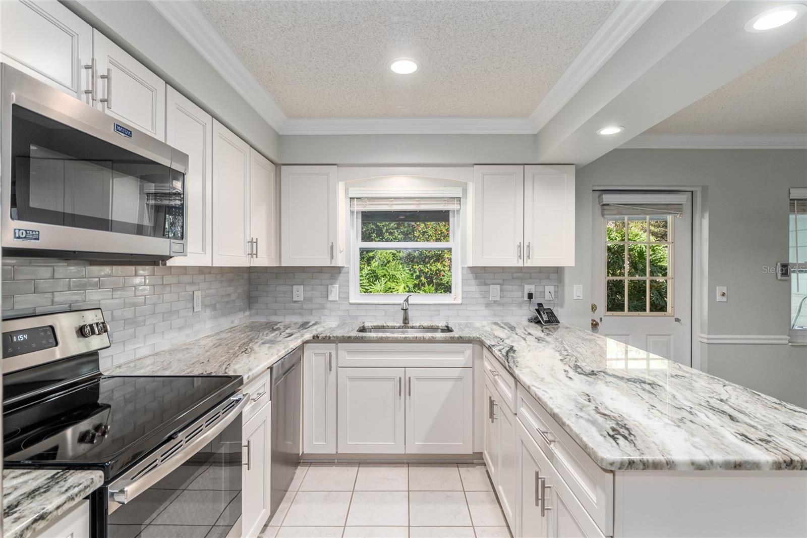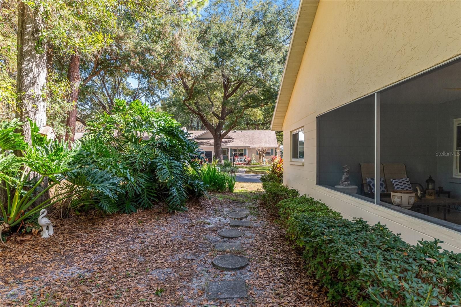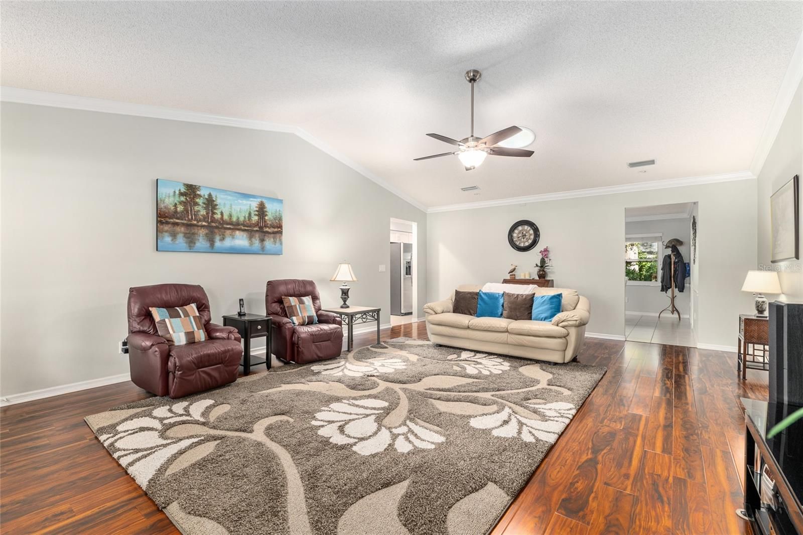END UNIT with park-like setting! This spacious Augusta end-unit is tucked away on a quiet street in On Top of the World's Friendship Colony. The home features 2 bedrooms, 2 bathrooms, a 2-car garage, and a separate office/den with built-in shelving - one of the few floor plans offering a true third room. Vaulted ceilings, added can lights, and a full glass front door enhance the open, bright feel throughout. The kitchen has been upgraded with new cabinetry, granite countertops, soft-close features, tile backsplash, stainless steel appliances, and a large pantry. The king-sized primary bedroom offers his-and-hers closets, while the primary bath features a step-in shower and updated countertop. This split-bedroom floor plan provides privacy, with a spacious second bedroom offering a walk-in closet and an adjacent bath with a tub/shower combination. Additional highlights include no front neighbors, a private landscaped backyard, updated double-pane windows, a newer roof (2021), a screened lanai, vinyl wood-like flooring and a well-maintained interior. No pets and non-smoking home. Located in the much sought-after 55+ neighborhood of On Top of the World!