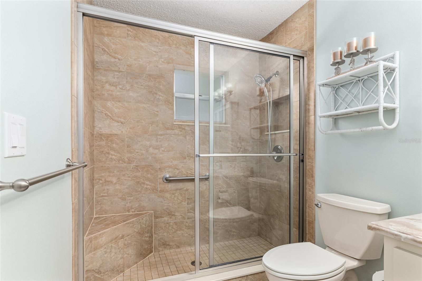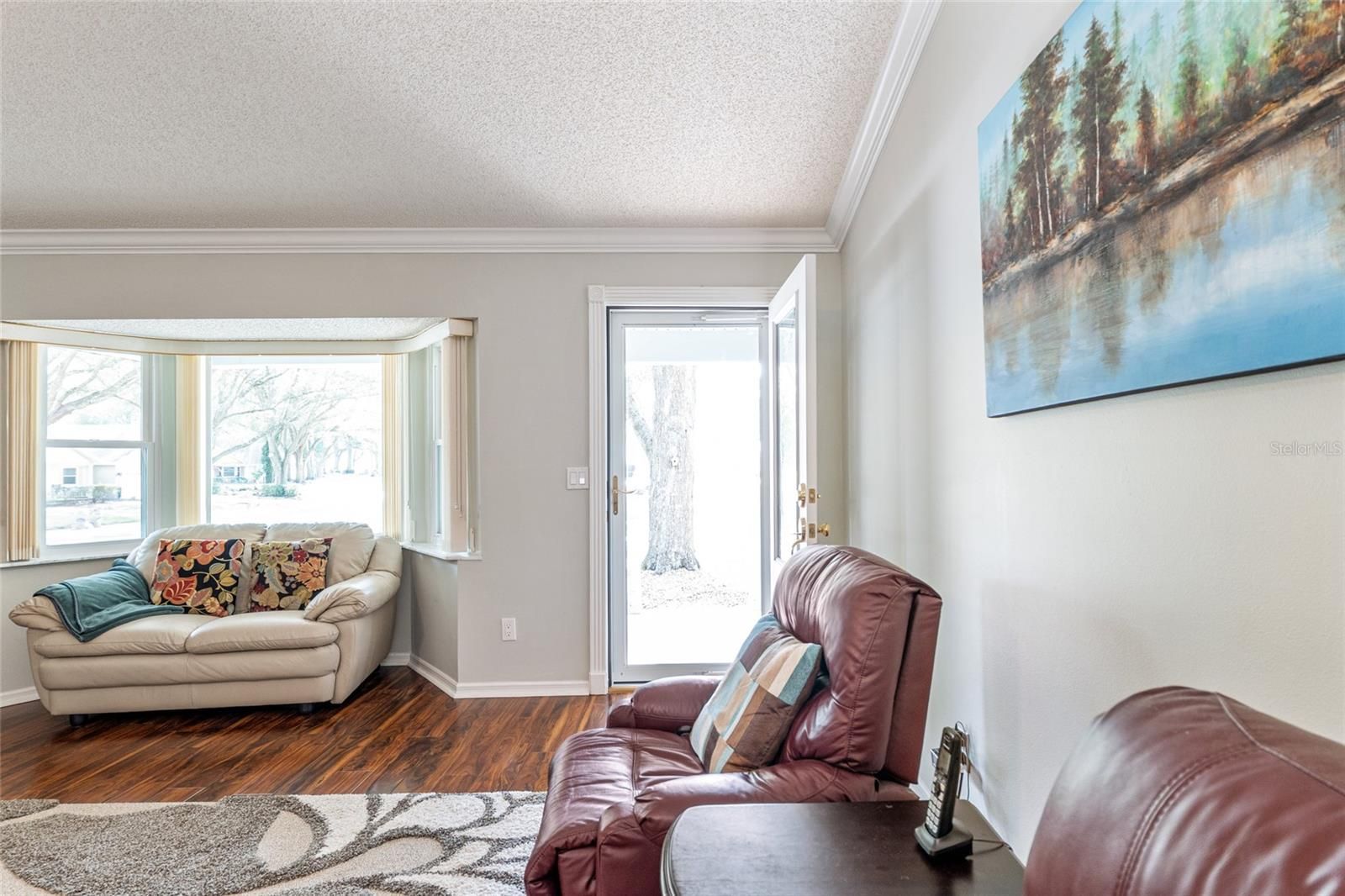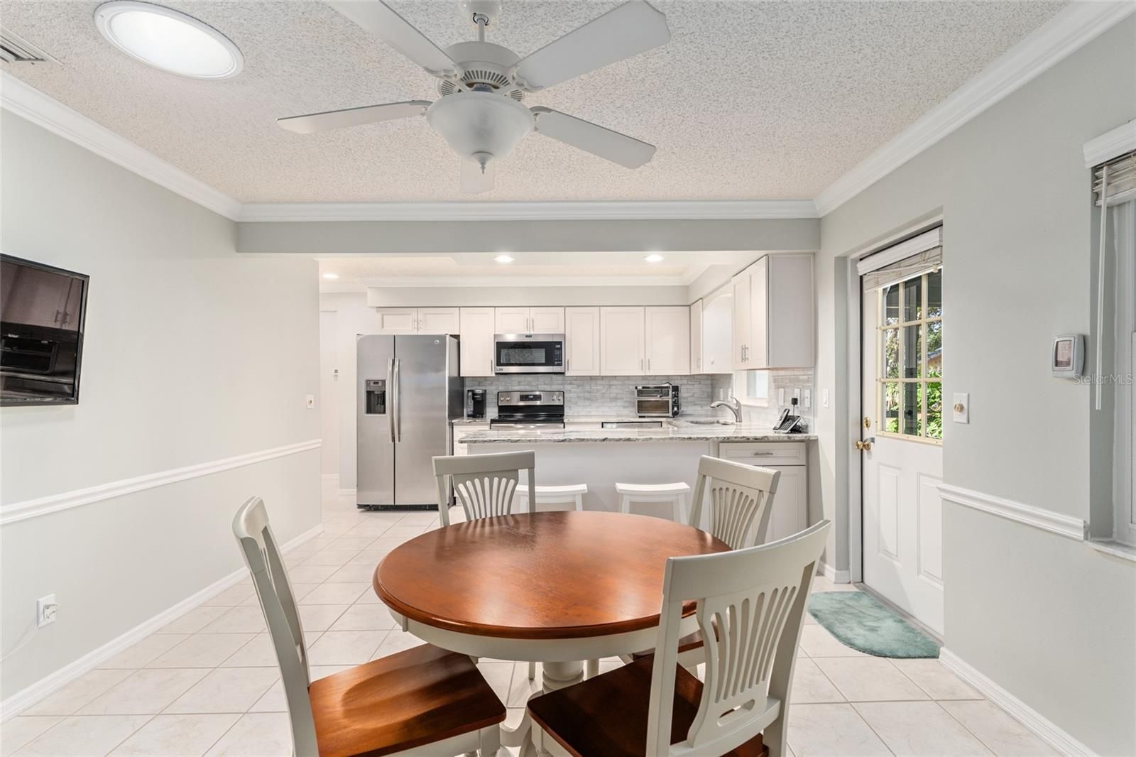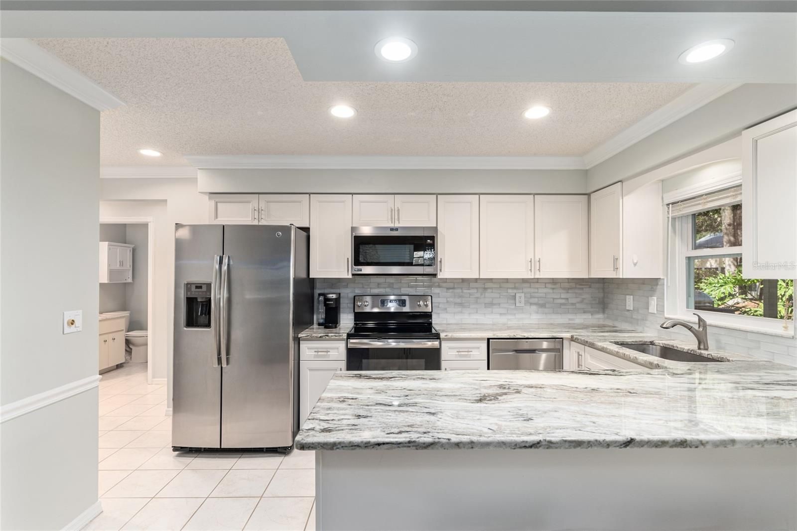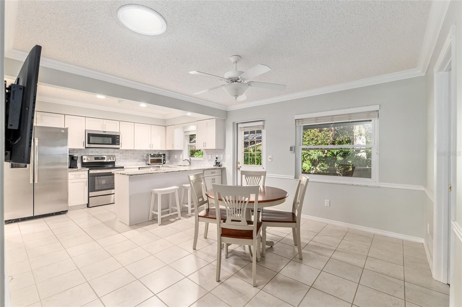 END UNIT with park-like setting! This spacious Augusta end-unit is tucked away on a quiet street in On Top of the World's Friendship Colony. The home features 2 bedrooms, 2 bathrooms, a 2-car garage, and a separate office/den with built-in shelving - one of the few floor plans offering a true third room. Vaulted ceilings, added can lights, and a full glass front door enhance the open, bright feel throughout. The kitchen has been upgraded with new cabinetry, granite countertops, soft-close features, tile backsplash, stainless steel appliances, and a large pantry. The king-sized primary bedroom offers his-and-hers closets, while the primary bath features a step-in shower and updated countertop. This split-bedroom floor plan provides privacy, with a spacious second bedroom offering a walk-in closet and an adjacent bath with a tub/shower combination. Additional highlights include no front neighbors, a private landscaped backyard, updated double-pane windows, a newer roof (2021), a screened lanai, vinyl wood-like flooring and a well-maintained interior. No pets and non-smoking home. Located in the much sought-after 55+ neighborhood of On Top of the World!