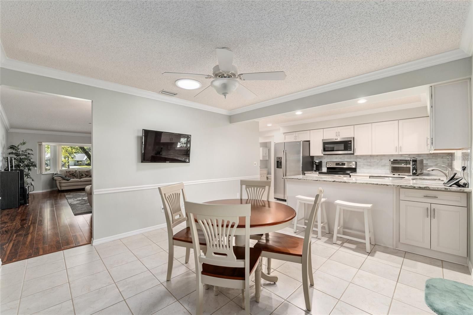 - Ceiling Fan(s), Eat-in Kitchen, Living/Dining Room, Main Level Primary, Split Bedrooms, Thermostat, Vaulted Ceiling(s), Walk-In Closet(s), Window Treatments