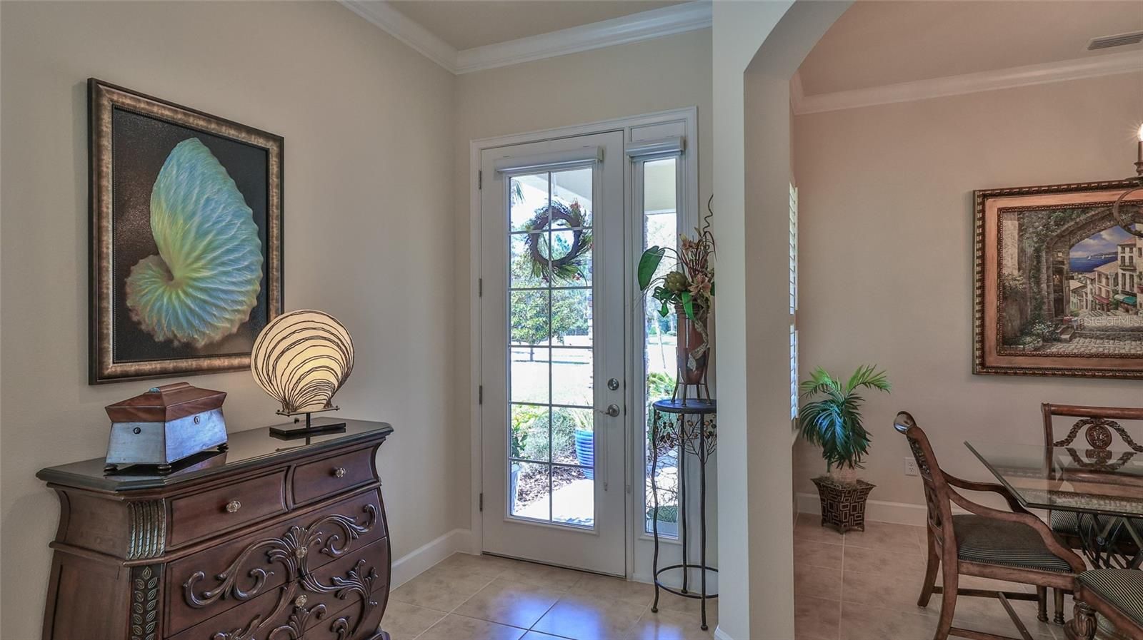 This beautifully maintained two-bedroom, two-bath, two-car garage townhome with a dedicated office/den is at the end of a peaceful cul-de-sac in the desirable, gated community of Plantation Bay. As an end unit, the home enjoys extra privacy and is set against the backdrop of a serene nature preserve, with plenty of natural light pouring in throughout the home. Maintenance-free living is made easy, as the Prestwick Pointe sub association covers the roof, exterior paint, scheduled for repainting this year, and landscaping. Enter through the upgraded glass front door into a well-appointed floor plan. The tastefully updated interior features 6-inch crown molding and plantation shutters throughout. Power blinds on the sliding glass doors enhance convenience and privacy while allowing you to easily access the outdoor space. The kitchen is a chef’s dream, offering extensive granite countertops, stainless steel appliances, 42-inch cabinetry and a dedicated walk-in pantry. The spacious owner’s suite includes two walk-in closets outfitted with California Closet upgrades, a walk-in shower, and dual sinks for added luxury. Both bedrooms are fitted with plush carpet for comfort, while the rest of the home is designed for easy maintenance. The guest room is equipped with Murphy beds, allowing for a flexible space that can easily transition from a cozy bedroom to a functional office or bonus room. Step through the triple, collapsible sliders onto a fully screened, covered lanai where you can relax and enjoy views of the preserve. The home also includes full cabinetry in the laundry room and ceiling storage racks in the garage. The prestigious Plantation Bay community offers a wealth of activities and amenities, including optional memberships for 45 holes of golf, a fitness center and pool, nine Har-Tru tennis courts, 10 pickleball courts, two clubhouses and two restaurants. The new, $30 million Founders Clubhouse is a gem in the community, offering even more opportunities to enjoy a vibrant, social lifestyle. This townhome offers the best of both comfort and convenience, ideal for anyone seeking a relaxing, yet active lifestyle in a picturesque setting.