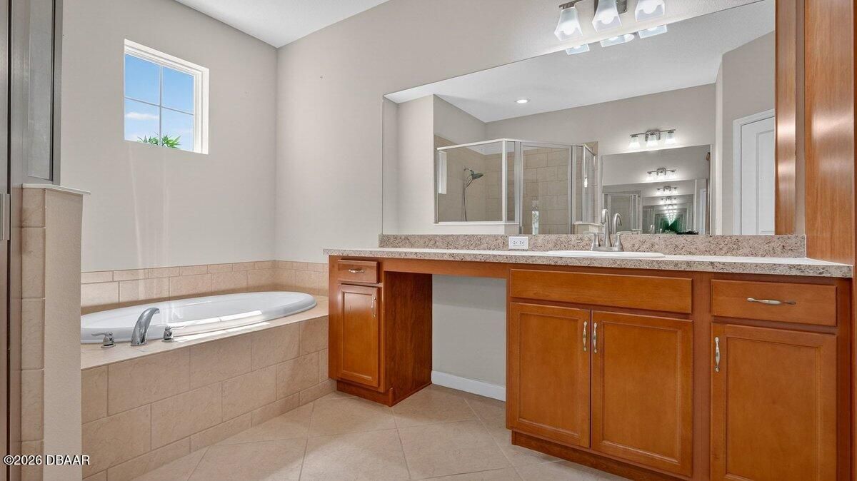 - Ceiling Fan(s), Eat-in Kitchen, Entrance Foyer, His and Hers Closets, Kitchen Island, Primary Bathroom -Tub with Separate Shower, Split Bedrooms, Walk-In Closet(s)