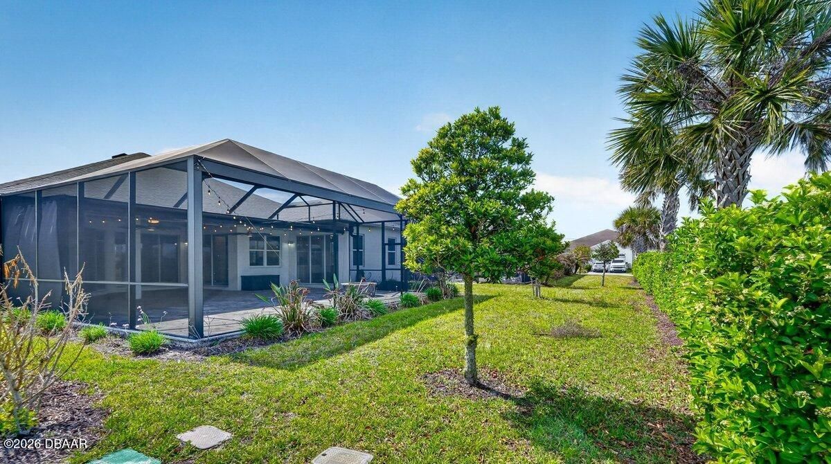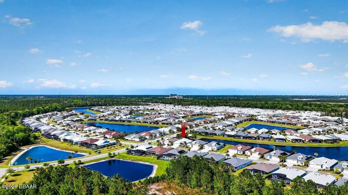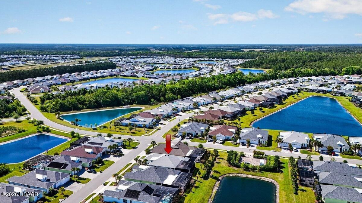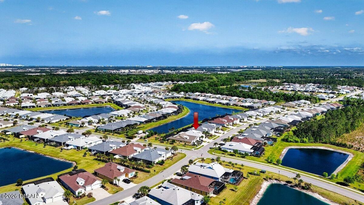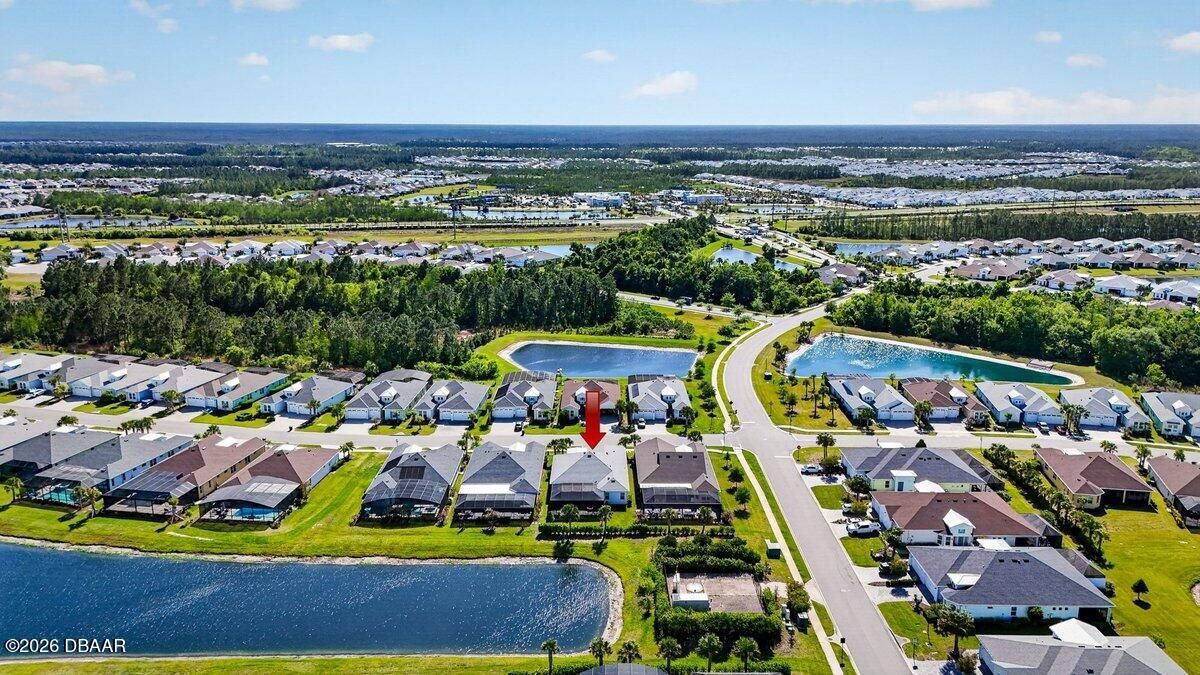 Welcome to a home that offers more than just space--it offers a lifestyle designed for comfort, connection, and enjoyment in the heart of Latitude Margaritaville. As you arrive, the paved driveway and walkway lead you to a welcoming covered front porch that sets the tone for what lies inside. Step through the front door into a spacious foyer filled with natural light, where you immediately feel the openness of the home and the connection to the expansive lanai beyond. Just off the entry, a generously sized den provides incredible flexibility. Whether you envision a home office, hobby room, or future third bedroom, this space is perfectly positioned with access to a nearby bathroom, making it both functional and adaptable. Continue forward into the living room, where large sliders frame views of the massive screened lanai and invite the outdoors in. The layout flows beautifully from space to space. The designated dining room sits just off the main living area, creating the perfect setting for hosting dinners while still staying connected to family and guests. Toward the rear of the home, the kitchen becomes a central hub, featuring a breakfast nook that opens directly to the lanai--an ideal place to enjoy your morning coffee while overlooking the peaceful water views. Just beyond the kitchen, the family room adds even more gathering space, surrounded by windows and sliders that fill the home with natural light and offer water views from multiple living areas. The primary suite is thoughtfully positioned for privacy and comfort. This spacious retreat includes an en-suite bathroom with dual vanities, a soaking tub, walk-in shower, and private water closet. Two walk-in closets provide abundant storage, and private access to the lanai makes it easy to step outside and enjoy quiet mornings or relaxing evenings overlooking the water. Guests will appreciate the split-bedroom design, with the secondary bedroom tucked away in its own private wing and featuring its own en-suite bathroom with walk-in shower. A convenient half bath near the garage adds ease when entertaining, while practical features like luxury vinyl plank flooring throughout, a water softener system, generator hookup, and an oversized three-car garage provide both comfort and peace of mind. And then there is the true highlight--the lanai. With over 1,300 square feet of screened outdoor living space, this is where the home truly shines. Whether hosting gatherings, enjoying dinner outdoors, or simply relaxing while overlooking the water, this expansive outdoor area becomes an extension of the home itself and offers the kind of space rarely found. But life here extends far beyond the front door. Latitude Margaritaville is known for its unmatched lifestyle and resort-style amenities. Residents enjoy a vibrant Town Center featuring a fully equipped fitness center, live entertainment at the Latitude Town Square, performances at the Last Mango Theatre, and gathering spaces designed to bring neighbors together. Outdoor enthusiasts will appreciate pickleball, tennis, bocce courts, and scenic walking trails, while the resort-style Paradise Pool, restaurant and bar, and social spaces create an atmosphere where every day feels like a vacation. The community also offers convenient golf cart paths to nearby shopping, restaurants, and everyday essentials, along with a private beach club accessible by community shuttle--making coastal living part of your everyday routine. With lawn care included and an active calendar full of events, clubs, and social opportunities, this 55+ community is designed to make life easier, more enjoyable, and truly fulfilling. This isn't just a home--it's a place to slow down, enjoy the view, and experience everything that makes Latitude Margaritaville one of the most desirable communities in the area.