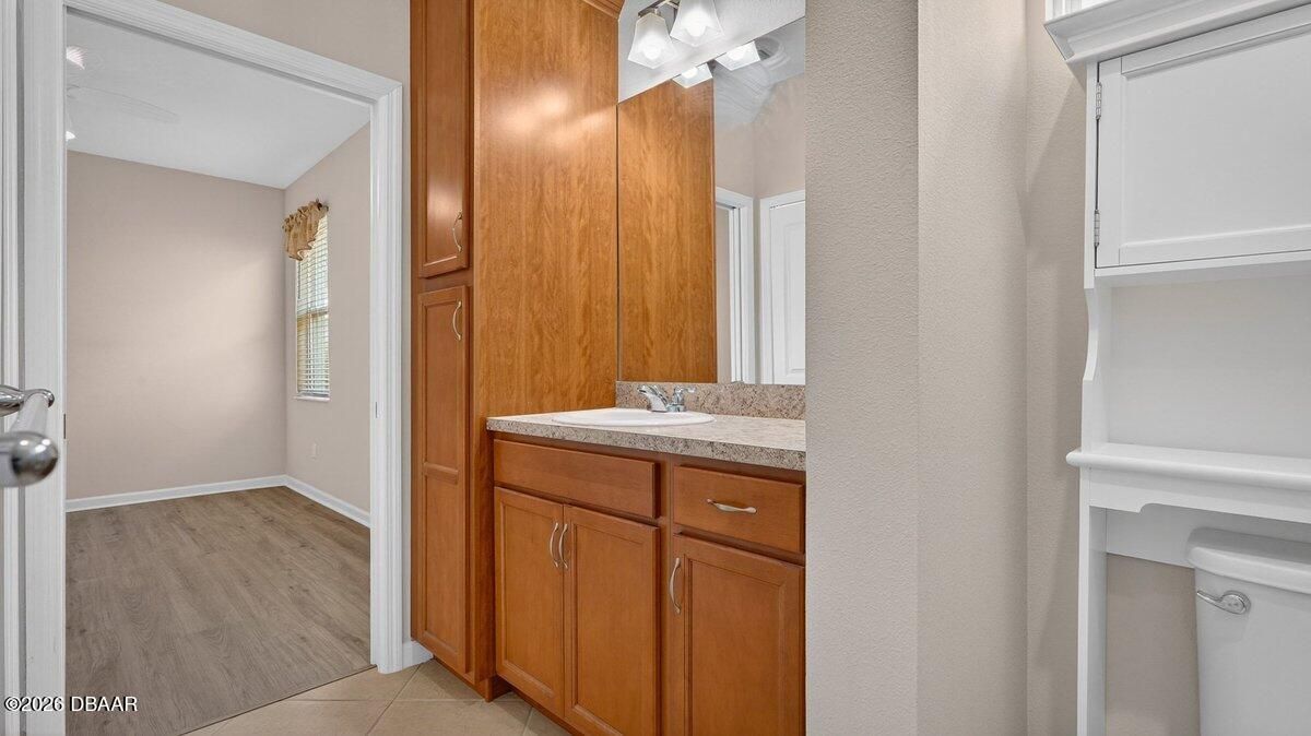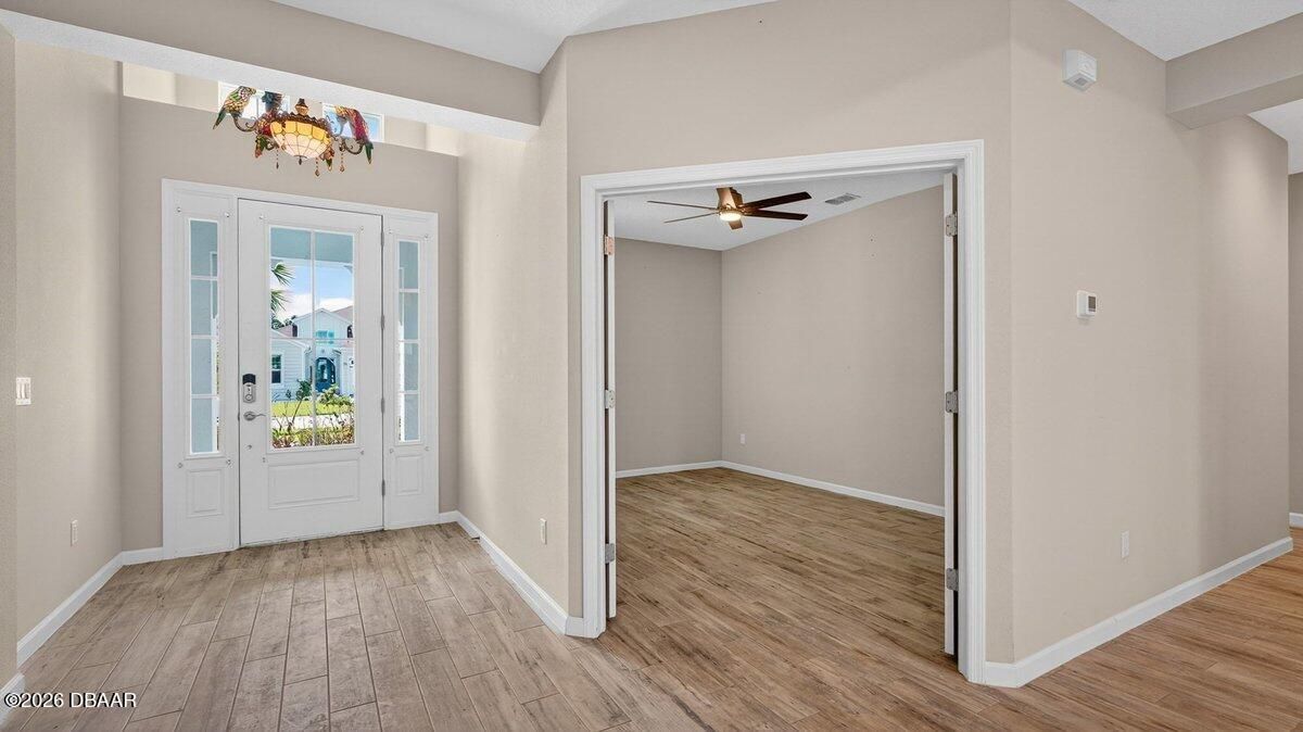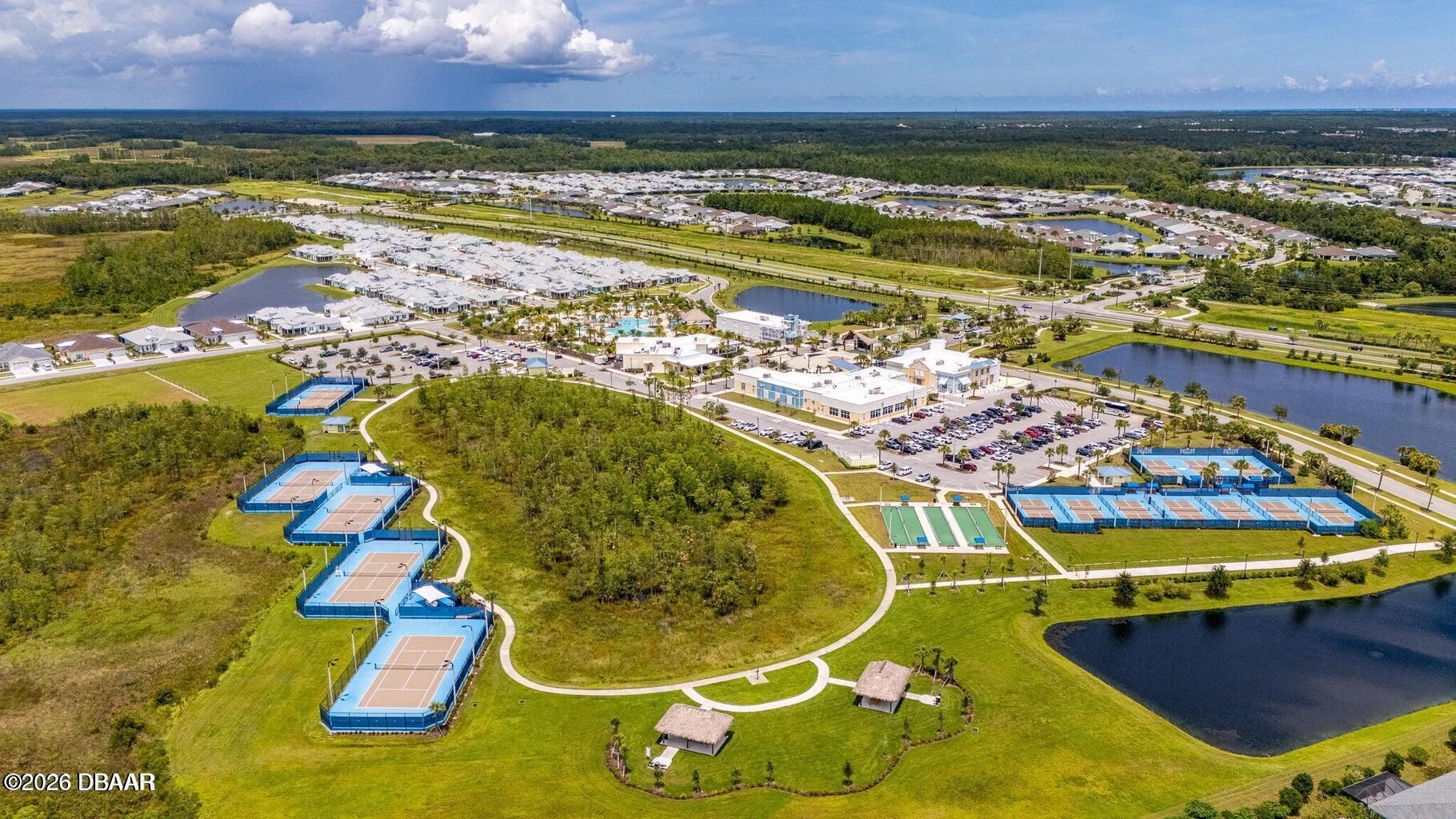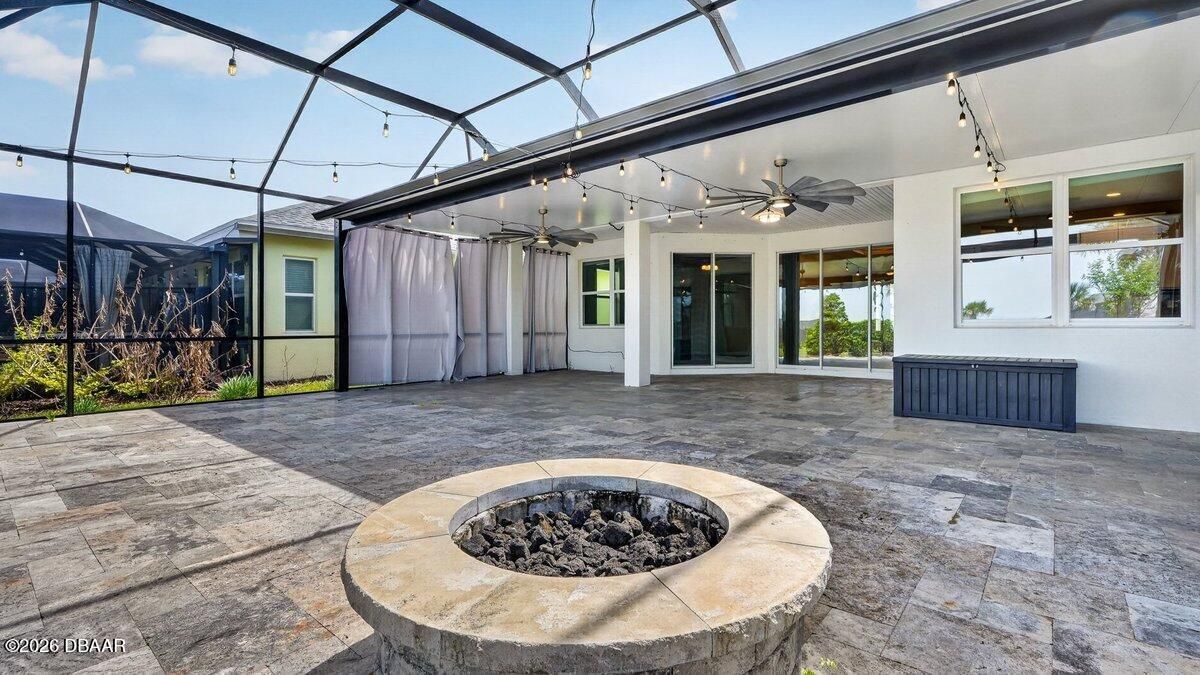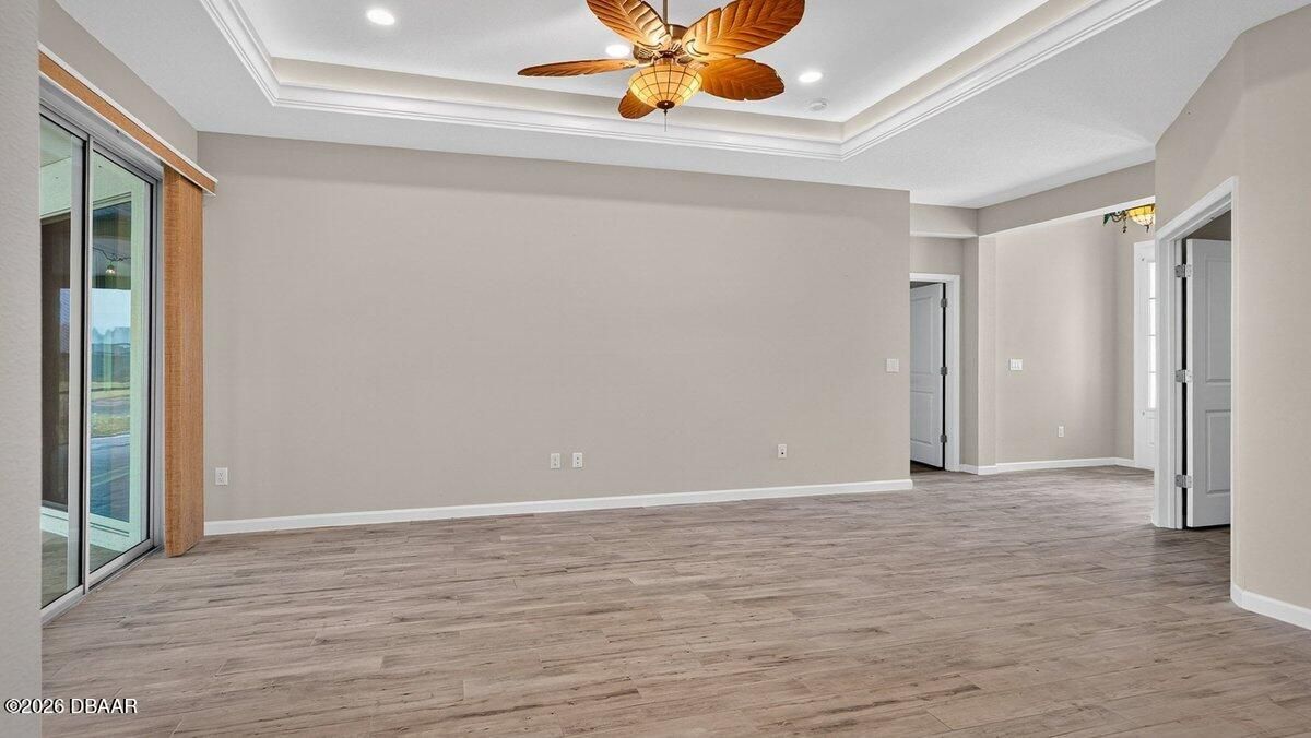 Welcome to a home that offers more than just space--it offers a lifestyle designed for comfort, connection, and enjoyment in the heart of Latitude Margaritaville. As you arrive, the paved driveway and walkway lead you to a welcoming covered front porch that sets the tone for what lies inside. Step through the front door into a spacious foyer filled with natural light, where you immediately feel the openness of the home and the connection to the expansive lanai beyond. Just off the entry, a generously sized den provides incredible flexibility. Whether you envision a home office, hobby room, or future third bedroom, this space is perfectly positioned with access to a nearby bathroom, making it both functional and adaptable. Continue forward into the living room, where large sliders frame views of the massive screened lanai and invite the outdoors in. The layout flows beautifully from space to space. The designated dining room sits just off the main living area, creating the perfect setting for hosting dinners while still staying connected to family and guests. Toward the rear of the home, the kitchen becomes a central hub, featuring a breakfast nook that opens directly to the lanai--an ideal place to enjoy your morning coffee while overlooking the peaceful water views. Just beyond the kitchen, the family room adds even more gathering space, surrounded by windows and sliders that fill the home with natural light and offer water views from multiple living areas. The primary suite is thoughtfully positioned for privacy and comfort. This spacious retreat includes an en-suite bathroom with dual vanities, a soaking tub, walk-in shower, and private water closet. Two walk-in closets provide abundant storage, and private access to the lanai makes it easy to step outside and enjoy quiet mornings or relaxing evenings overlooking the water. Guests will appreciate the split-bedroom design, with the secondary bedroom tucked away in its own private wing and featuring its own en-suite bathroom with walk-in shower. A convenient half bath near the garage adds ease when entertaining, while practical features like luxury vinyl plank flooring throughout, a water softener system, generator hookup, and an oversized three-car garage provide both comfort and peace of mind. And then there is the true highlight--the lanai. With over 1,300 square feet of screened outdoor living space, this is where the home truly shines. Whether hosting gatherings, enjoying dinner outdoors, or simply relaxing while overlooking the water, this expansive outdoor area becomes an extension of the home itself and offers the kind of space rarely found. But life here extends far beyond the front door. Latitude Margaritaville is known for its unmatched lifestyle and resort-style amenities. Residents enjoy a vibrant Town Center featuring a fully equipped fitness center, live entertainment at the Latitude Town Square, performances at the Last Mango Theatre, and gathering spaces designed to bring neighbors together. Outdoor enthusiasts will appreciate pickleball, tennis, bocce courts, and scenic walking trails, while the resort-style Paradise Pool, restaurant and bar, and social spaces create an atmosphere where every day feels like a vacation. The community also offers convenient golf cart paths to nearby shopping, restaurants, and everyday essentials, along with a private beach club accessible by community shuttle--making coastal living part of your everyday routine. With lawn care included and an active calendar full of events, clubs, and social opportunities, this 55+ community is designed to make life easier, more enjoyable, and truly fulfilling. This isn't just a home--it's a place to slow down, enjoy the view, and experience everything that makes Latitude Margaritaville one of the most desirable communities in the area.