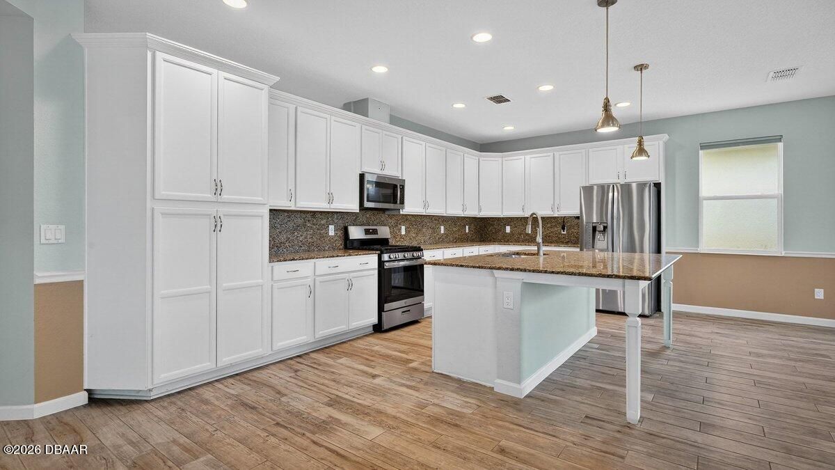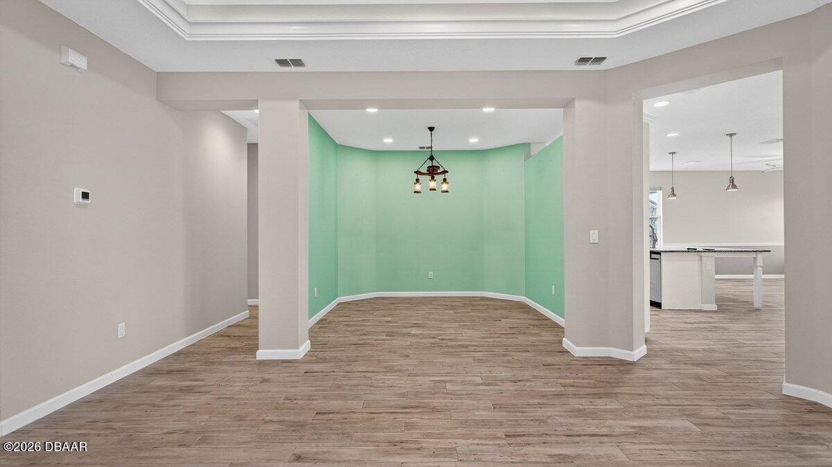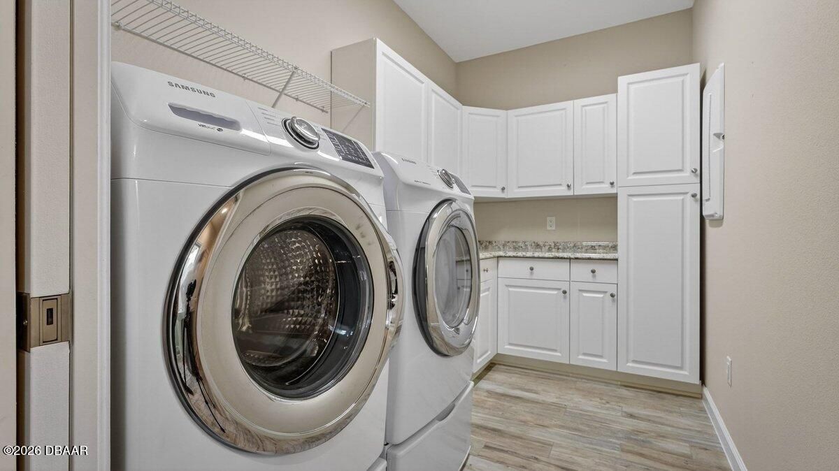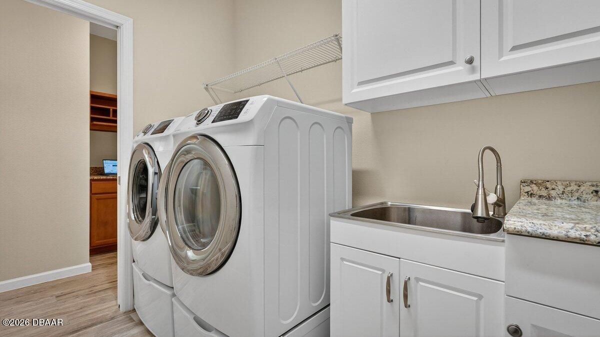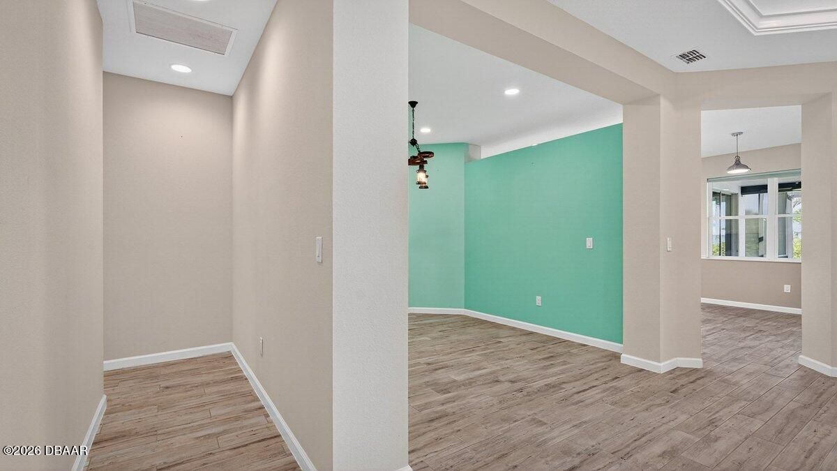 Welcome to a home that offers more than just space--it offers a lifestyle designed for comfort, connection, and enjoyment in the heart of Latitude Margaritaville. As you arrive, the paved driveway and walkway lead you to a welcoming covered front porch that sets the tone for what lies inside. Step through the front door into a spacious foyer filled with natural light, where you immediately feel the openness of the home and the connection to the expansive lanai beyond. Just off the entry, a generously sized den provides incredible flexibility. Whether you envision a home office, hobby room, or future third bedroom, this space is perfectly positioned with access to a nearby bathroom, making it both functional and adaptable. Continue forward into the living room, where large sliders frame views of the massive screened lanai and invite the outdoors in. The layout flows beautifully from space to space. The designated dining room sits just off the main living area, creating the perfect setting for hosting dinners while still staying connected to family and guests. Toward the rear of the home, the kitchen becomes a central hub, featuring a breakfast nook that opens directly to the lanai--an ideal place to enjoy your morning coffee while overlooking the peaceful water views. Just beyond the kitchen, the family room adds even more gathering space, surrounded by windows and sliders that fill the home with natural light and offer water views from multiple living areas. The primary suite is thoughtfully positioned for privacy and comfort. This spacious retreat includes an en-suite bathroom with dual vanities, a soaking tub, walk-in shower, and private water closet. Two walk-in closets provide abundant storage, and private access to the lanai makes it easy to step outside and enjoy quiet mornings or relaxing evenings overlooking the water. Guests will appreciate the split-bedroom design, with the secondary bedroom tucked away in its own private wing and featuring its own en-suite bathroom with walk-in shower. A convenient half bath near the garage adds ease when entertaining, while practical features like luxury vinyl plank flooring throughout, a water softener system, generator hookup, and an oversized three-car garage provide both comfort and peace of mind. And then there is the true highlight--the lanai. With over 1,300 square feet of screened outdoor living space, this is where the home truly shines. Whether hosting gatherings, enjoying dinner outdoors, or simply relaxing while overlooking the water, this expansive outdoor area becomes an extension of the home itself and offers the kind of space rarely found. But life here extends far beyond the front door. Latitude Margaritaville is known for its unmatched lifestyle and resort-style amenities. Residents enjoy a vibrant Town Center featuring a fully equipped fitness center, live entertainment at the Latitude Town Square, performances at the Last Mango Theatre, and gathering spaces designed to bring neighbors together. Outdoor enthusiasts will appreciate pickleball, tennis, bocce courts, and scenic walking trails, while the resort-style Paradise Pool, restaurant and bar, and social spaces create an atmosphere where every day feels like a vacation. The community also offers convenient golf cart paths to nearby shopping, restaurants, and everyday essentials, along with a private beach club accessible by community shuttle--making coastal living part of your everyday routine. With lawn care included and an active calendar full of events, clubs, and social opportunities, this 55+ community is designed to make life easier, more enjoyable, and truly fulfilling. This isn't just a home--it's a place to slow down, enjoy the view, and experience everything that makes Latitude Margaritaville one of the most desirable communities in the area.