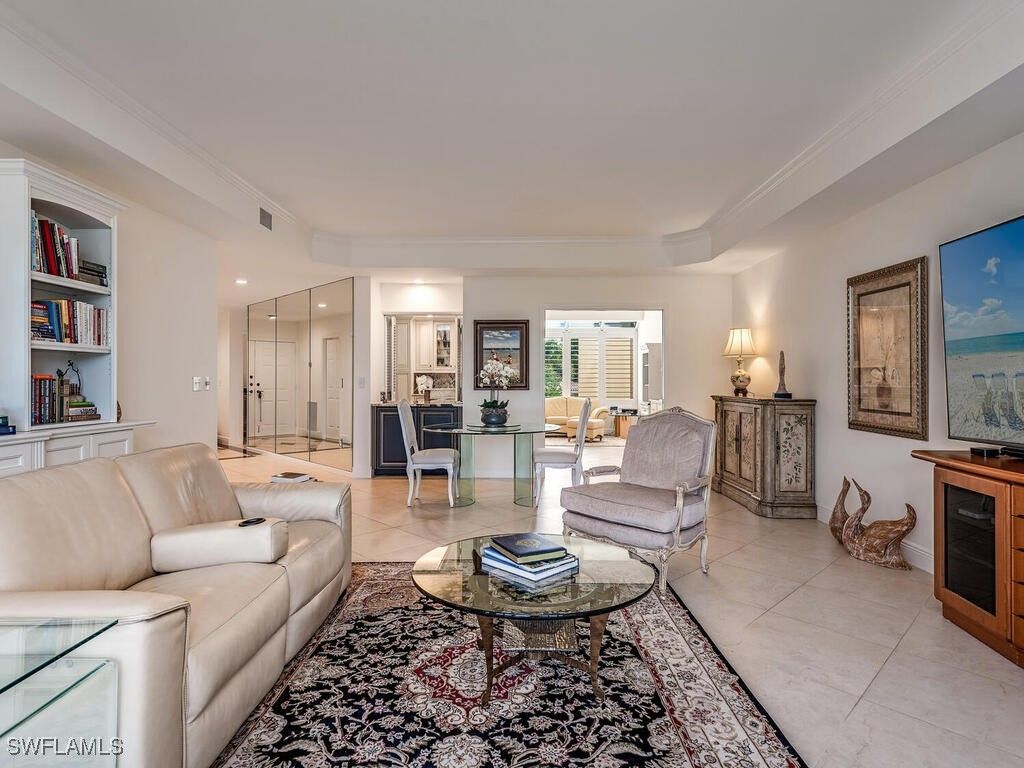 Steeped with natural light and beautifully updated throughout, this 2-Bedroom + Den/Flex, 2.5-Bath residence is perfectly situated within The Crescent at Pelican Bay, one of Naples’ most sought-after communities. A bright, open-concept layout create an inviting atmosphere with gorgeous views from each room. Porcelain tile flooring throughout flows seamlessly through the spacious living areas, connecting effortlessly to an enclosed lanai—expanding the living space and providing the perfect setting for entertaining or enjoying the lush tropical surroundings and vibrant southwestern sunsets. The thoughtful split-bedroom floor plan ensures privacy for both owners and guests. The owner’s suite offers a luxurious retreat with a large walk-in closet, additional linen storage, and a spa-inspired bathroom with a walk-in shower and separate soaking tub. The guest suite is equally impressive, featuring its own private bath, walk-in closet, balcony, and storm protection. A conveniently located powder room serves visitors with ease. Just off the kitchen, a versatile den provides flexible space for a home office or can be converted into a third bedroom if desired. The kitchen is a standout, showcasing Level 5 granite countertops, custom cabinetry, premium appliances, and full-height cabinets for ample storage and a polished, contemporary look. Additional highlights include 9-foot ceilings, impact-resistant sliders, storm shutters, abundant natural light, and a rare oversized two-car garage located only steps from the elevator, complete with epoxy flooring, a dehumidifier, and a cedar-lined storage closet. With only two residences per floor, the property offers exceptional privacy and a boutique atmosphere. Elevated 12 feet above sea level and never impacted by storm surge, this home offers both elegance and peace of mind. As a resident of Pelican Bay, you'll enjoy exclusive access to all its premier amenities, including 2 PRIVATE BEACHFRONT restaurants/bars, attended beach service, kayaks, paddle boards, 18 Har-Tru tennis courts, fitness center, pickleball coming soon, and scenic nature trails for walking and biking. Perfectly situated near Artis Naples, Waterside Shops, and Mercato, this residence provides unparalleled convenience to world-class shopping, dining, and entertainment options.