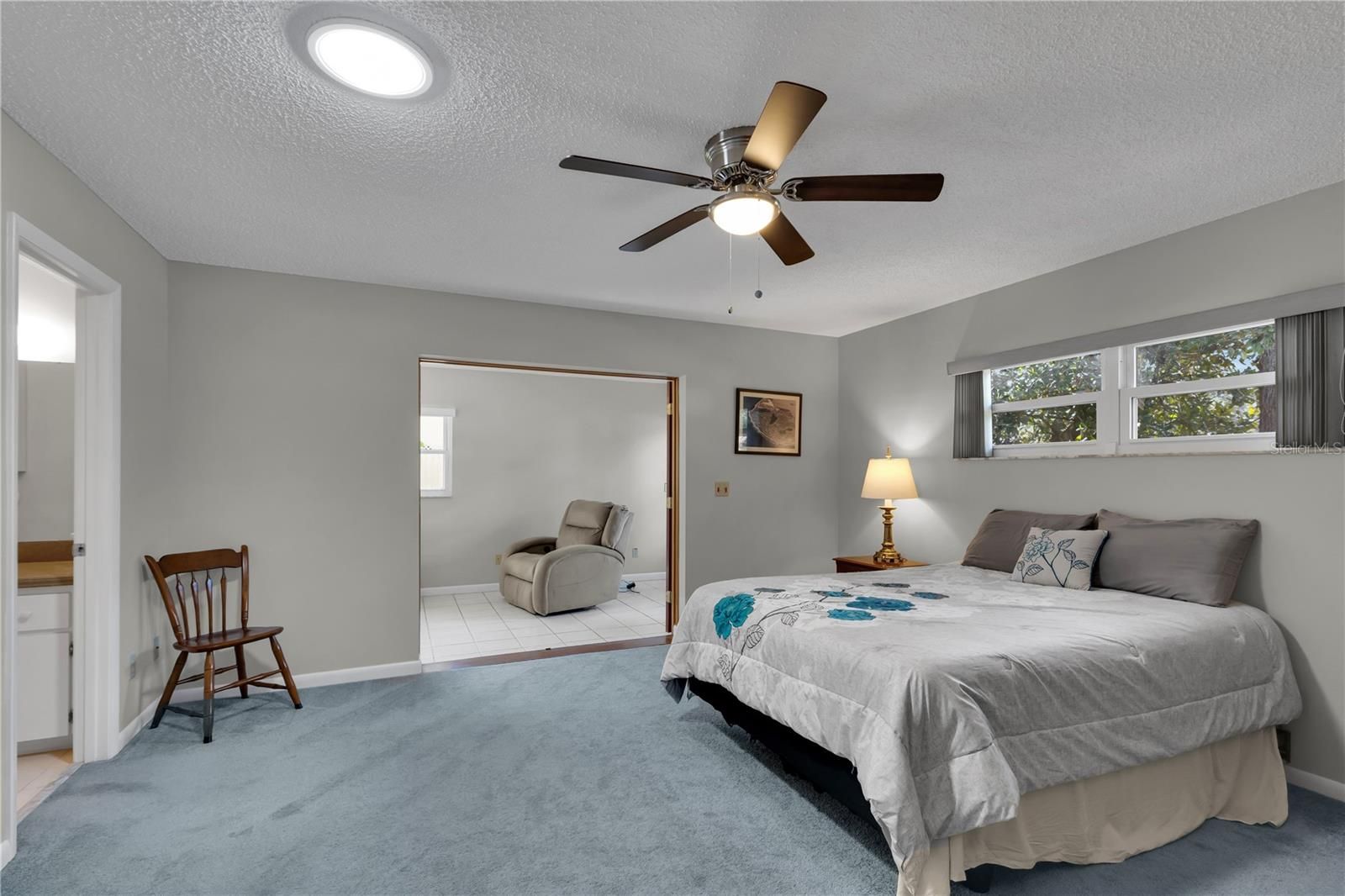 - Ceiling Fan(s), Eat-in Kitchen, Kitchen/Family Room Combo, Living/Dining Room, Main Level Primary, Stone Counters, Thermostat, Walk-In Closet(s)