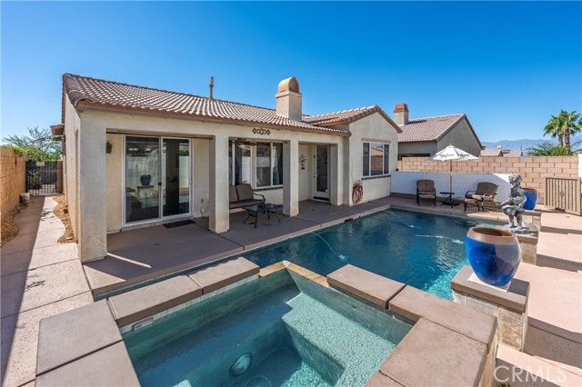 TURNKEY, POOL, SPA & PERFECT for SHORT TERM RENTAL! This beautifully remodeled 3 bedroom 2 bath home located within the Terra Lago Community has a private pool, spa and amazing mountain views! Its community offers amenities such as a community clubhouse, a 3 acre lake, water sports, gym, a playground, BBQ area, a community pool/spa, 24 hour gate access, high speed internet, Direct TV cable and is adjacent to a golf course. The home features a spacious open-floor plan with a great room, gas fireplace, open kitchen, hardwood floors, high ceilings and a primary bedroom with en-suite bath. The kitchen has beautiful wood cabinetry, quartz countertops, tile backsplash, a center island with seating and built-in appliances. The spacious primary bedroom overlooks the pool area and has a large ensuite bathroom with soaking tub and walk-in shower. Additionally, the home has a salt water pool and spa, outdoor patio with pergola, EV charging station, automatic sprinkler/drip system and a spacious high ceiling 2 car garage. Enjoy the best Indio has to offer located just minutes to golfing, hiking trails, casinos, restaurants and Coachella!