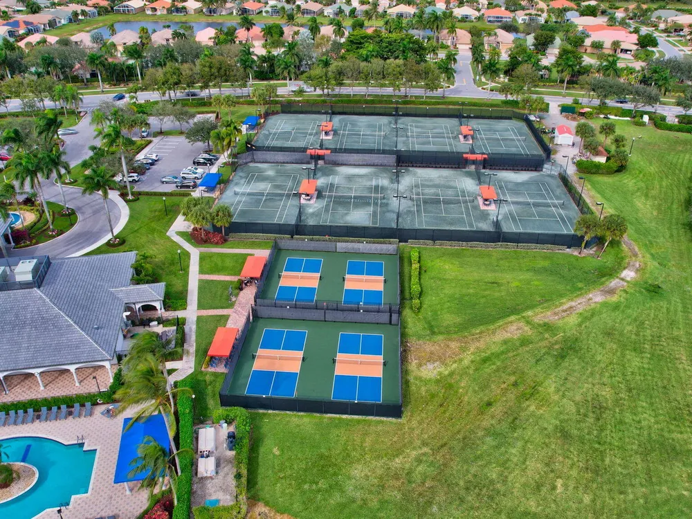 - Bocce, Business Center, Restaurant, Clubhouse, Fitness Center, Library, Property Manager On Site, Pickleball, Pool, Spa/Hot Tub, Street Lights, Tennis Court(s)