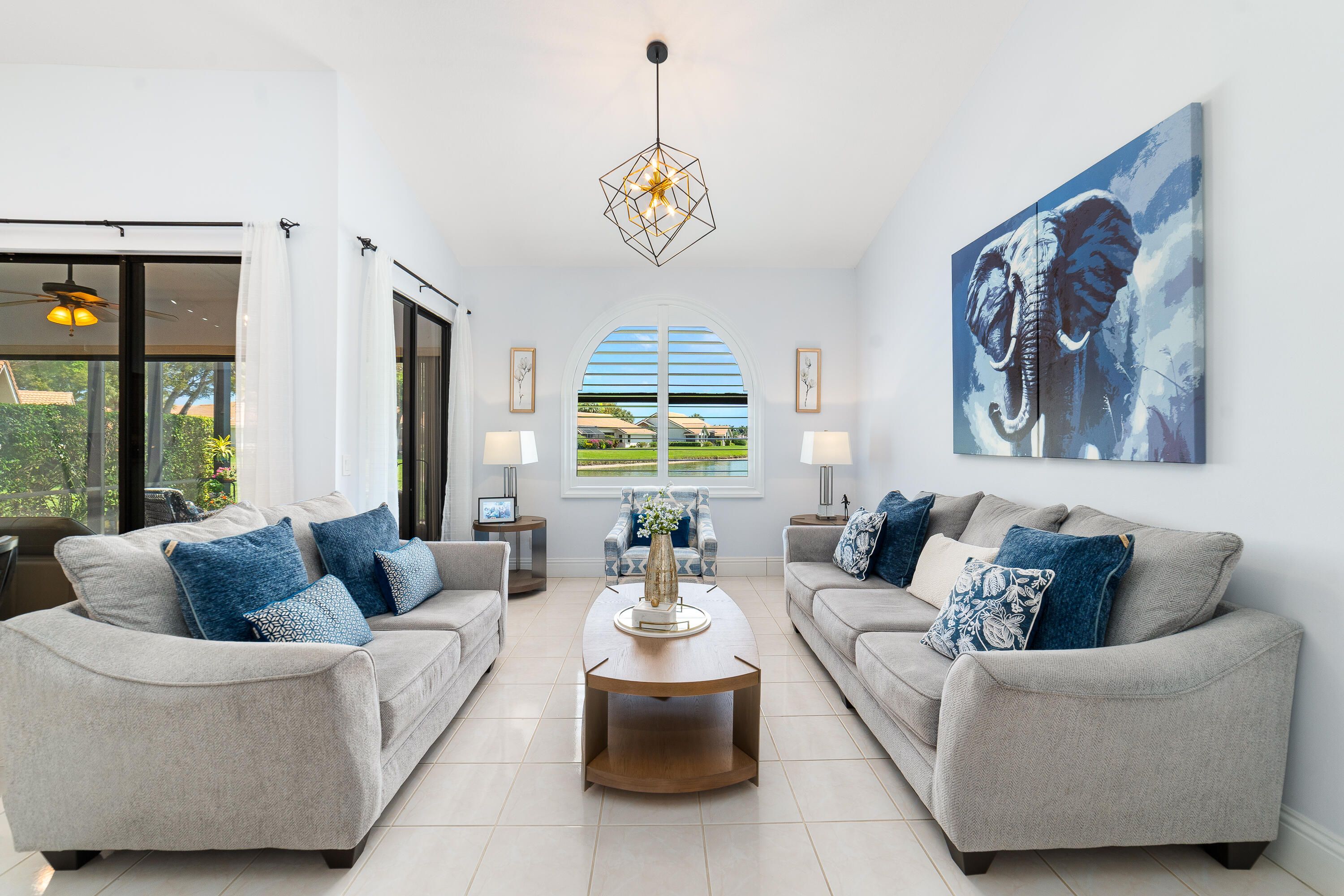 Discover this charming corner-unit situated on an oversized lot within a gated village of the Aberdeen community. Spanning 1,574 square feet, the home features two bedrooms and two bathrooms. The interior offers a seamless flow, where a spacious great room opens directly into the kitchen, creating an inviting environment for daily living. The primary bathroom has been updated with a walk-in shower. A standout feature is the glass-enclosed lanai, which is fully air-conditioned and provides peaceful lake views. This property includes a wide driveway and sits in a neighborhood that requires a separate club membership. Residents can enjoy local amenities like the clubhouse, pools, and tennis courts.
