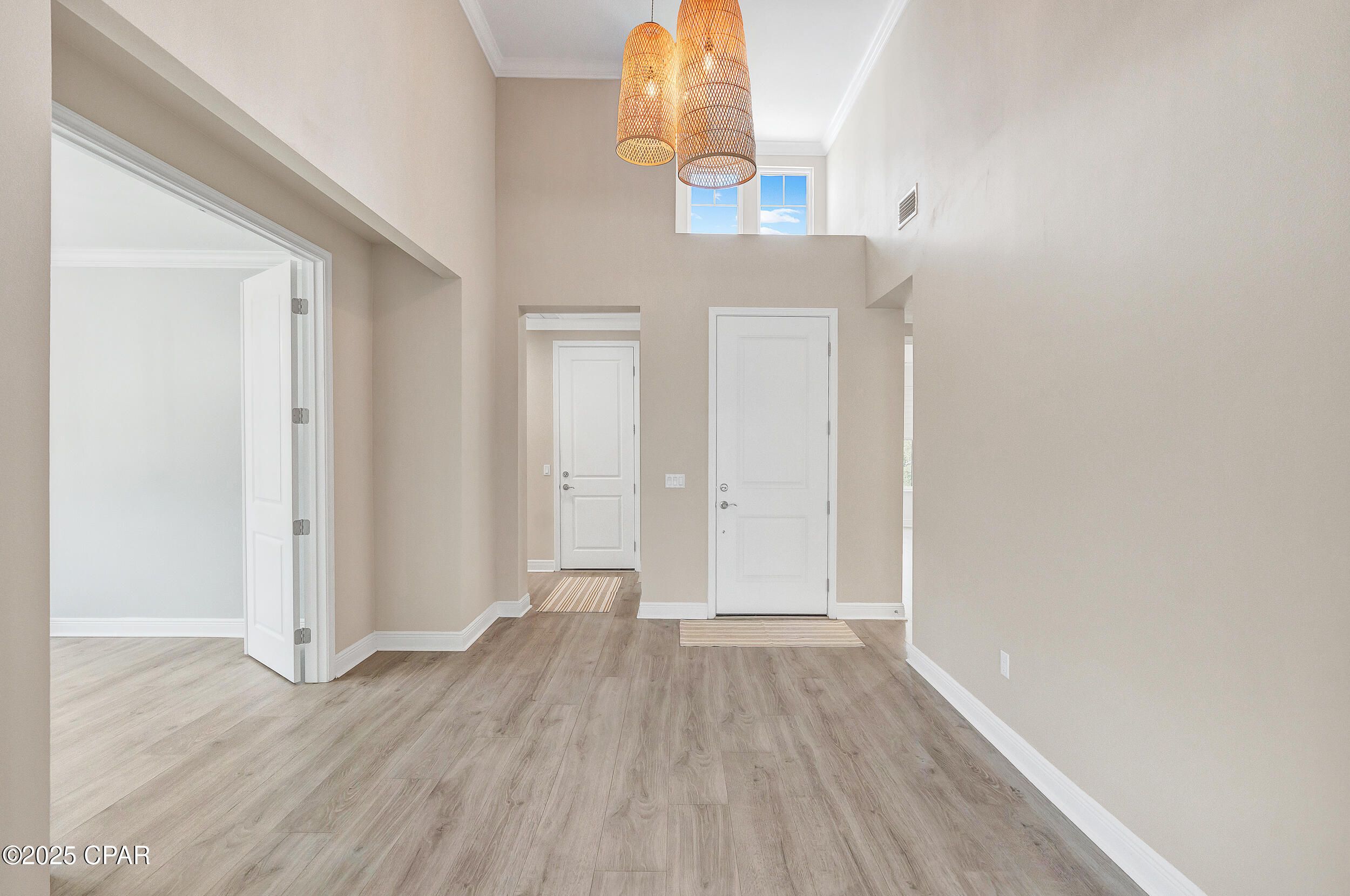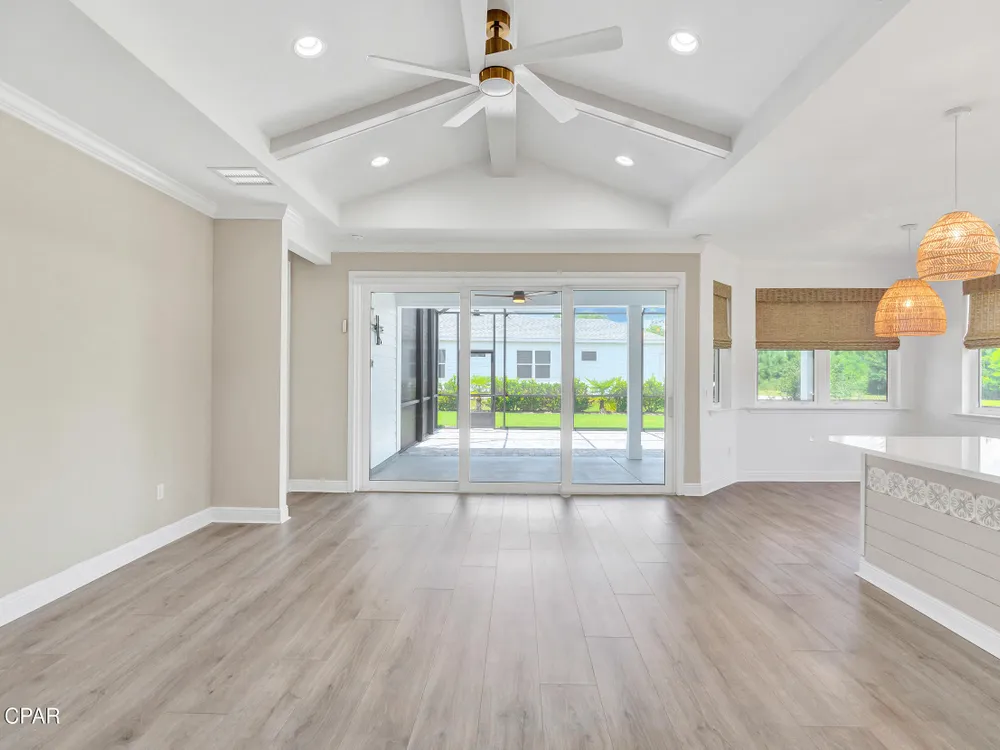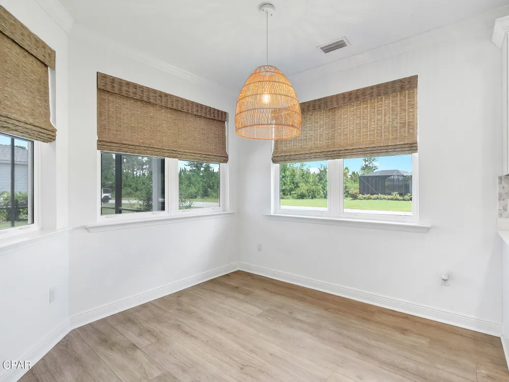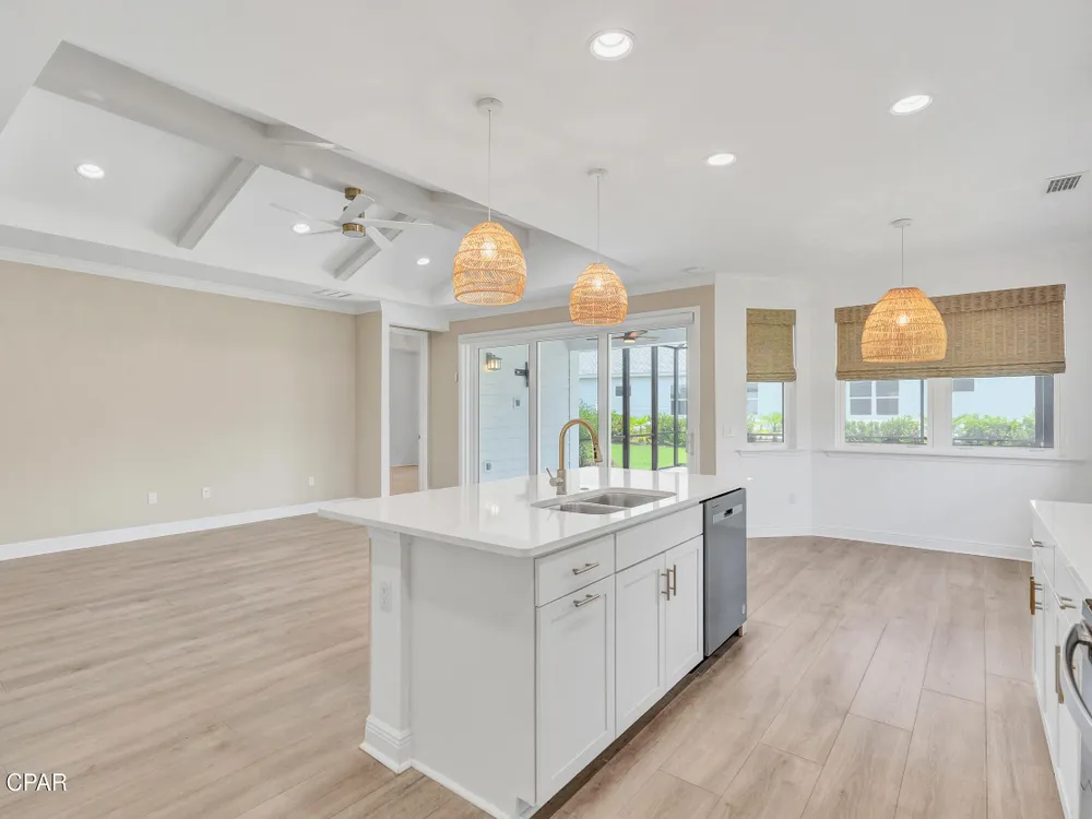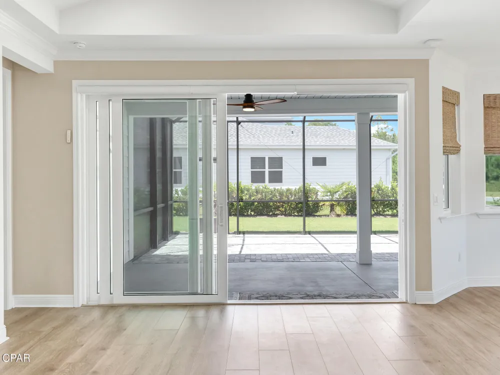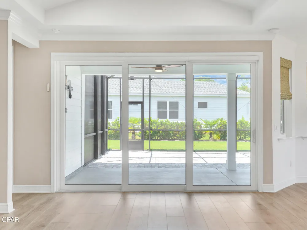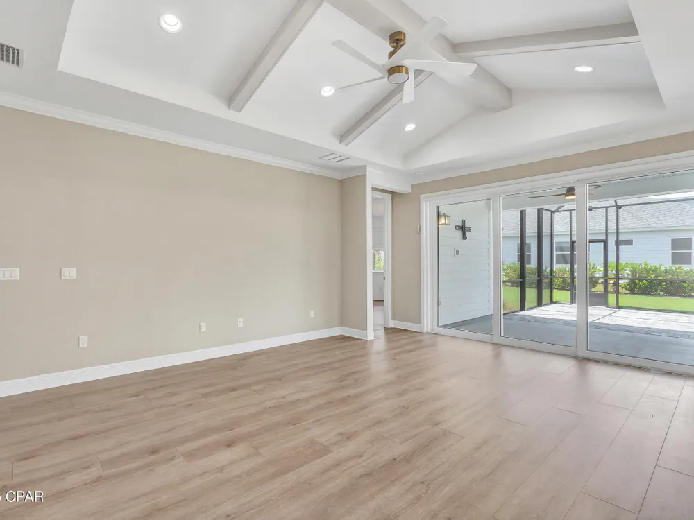 MOVE IN READY HOME AT LATITUDE AT WATERSOUND! OWNER FINANCING OPTIONS AVAILABLE. Why settle for new construction that is further away from the Town Square amenities? This beautifully maintained home is ideally situated on a spacious corner lot with a large side yard abutting a non-through street—offering privacy, quiet, and minimal traffic. Just five minutes from the world-class amenities of Latitude at Watersound, this home delivers the perfect blend of comfort, style, and convenience. From the moment you arrive, the curb appeal stands out, thanks to the generous lot size and carefully considered upgrades. Step inside to soaring cathedral ceilings and an airy, open layout. To your right, a hallway leads to a spacious two-car garage with pull-down stairs for easy attic access and abundant storage The nearby laundry room is outfitted with custom shelving and cabinetry to keep everything organized and tucked away. Two guest bedrooms and a full shared bath are located just off the foyer, while a formal dining room with double-door access adds versatility and elegance. The main living space is truly the heart of the home which include thoughtful upgrades that make all the difference. You are sure to appreciate the striking beamed ceilings, automatic blinds, and seamless access to the extended screened-in patio perfect for relaxing or entertaining outdoors. The patio includes pavers, full screening, a TV mount. There is room to add a pool if desired. The kitchen is both stylish and functional with quartz countertops, stainless steel appliances, a center island with breakfast bar, and a credit toward a new refrigerator offered at closing. Tucked away for privacy, the primary suite offers a tranquil retreat with a tray ceiling, double walk-in closets, and a lovely bay window. The ensuite bath features a large walk-in shower with floor-to-ceiling tile and a bench, a wraparound double vanity, and a linen closet for added storage. As a resident of Latitude at Watersound, you'll enjoy access to a vibrant 55+ community with top-tier amenities including a resort-style pool, state-of-the-art fitness center, on-site restaurants and bars, walking trails, pickleball and tennis courts, live entertainment, and more offering the ultimate Florida lifestyle just minutes from the beach.