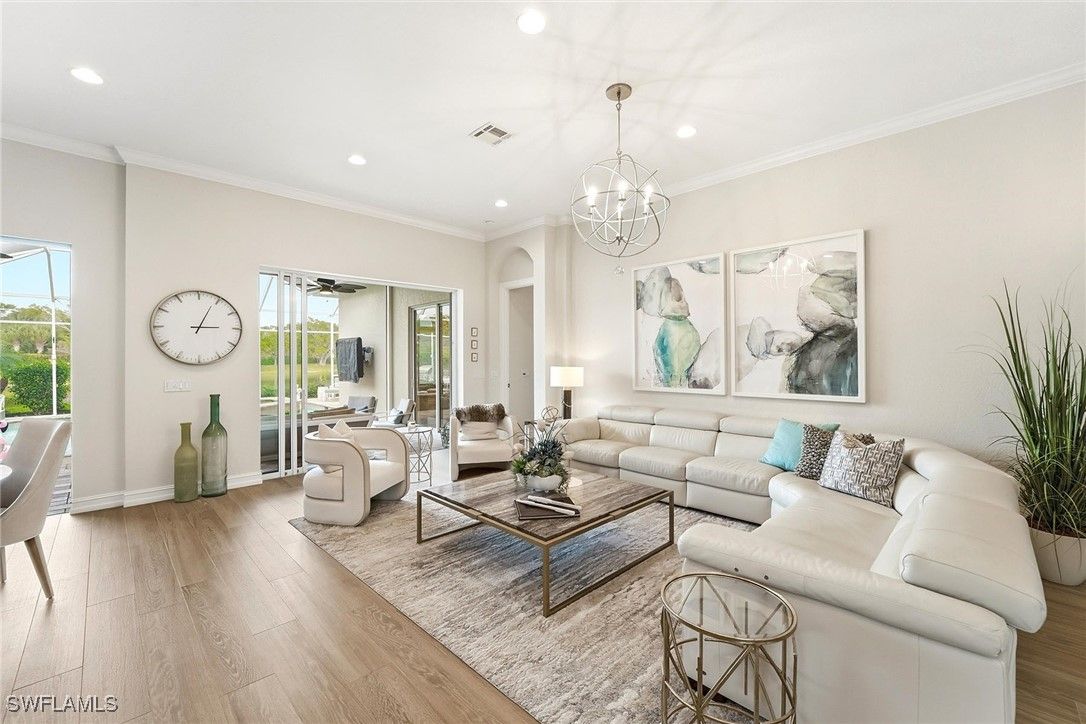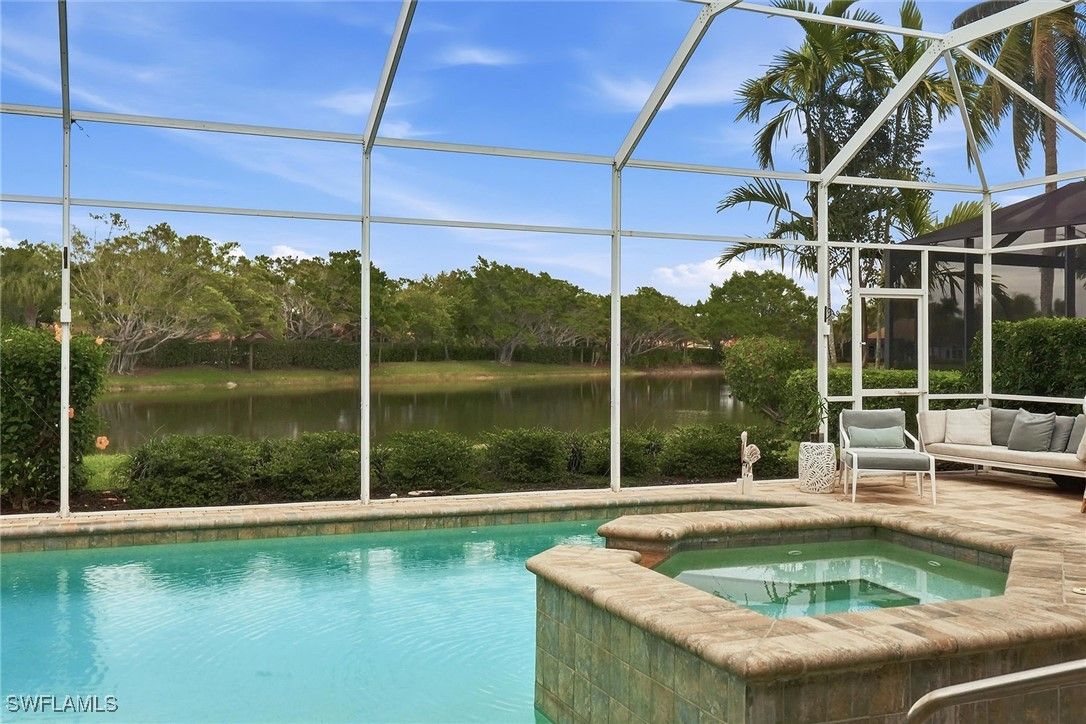 Exquisite luxury residence located in the highly sought-after enclave of Mallard’s Landing at Fiddler’s Creek. Thoughtfully reimagined and newly remodeled, this elegant home showcases an open-concept floor plan that seamlessly integrates indoor and outdoor living. Expansive sliding doors invite you to the serene lanai and sparkling gas heated, salt water pool area. The outdoor grill is perfect for alfresco dining and gracious entertaining beneath Florida’s radiant skies. From the charming and inviting entryway, you’re welcomed into a grand great room distinguished by soaring 11-foot ceilings and an abundance of natural light, creating an atmosphere of airy sophistication. The gourmet kitchen is a true centerpiece, featuring gleaming granite countertops, a custom tile backsplash, and fine cabinetry that harmonizes beauty with functionality. A cozy breakfast nook, well-appointed laundry room, and spacious side-load garage reflect the home’s thoughtful design and efficiency. The luxurious primary suite is a private retreat, offering exceptional space and comfort with dual walk-in closets, a spa-inspired bath with a separate walk-in shower, and an indulgent garden-style soaking tub. With a full lake view and impeccably landscaped surroundings, this residence blends timeless elegance with the relaxed Florida lifestyle, making it an extraordinary place to call home.