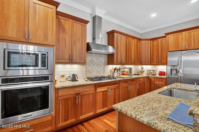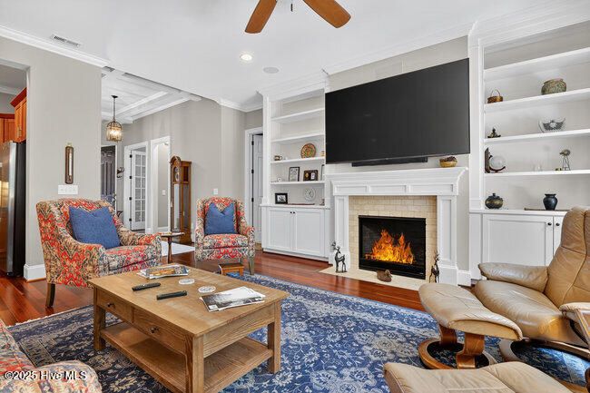 Enjoy the country club lifestyle, tree lined streets and beautiful landscaping in this gated golfing community. Openness, natural light and an abundance of custom features add to the coastal charm of this lovely brick home. Living areas include cherry hardwood floors, fireplace, built-ins, beverage bar and crown molding. The kitchen boasts granite countertops, stainless steel appliances, natural cherry cabinets, travertine backsplash and gas cooktop. The finished room above the garage has an abundance of windows and a full bath. The delightful sunroom overlooks a private and professionally landscaped yard including a koi pond. Homeowner enjoys deeded water rights to the Intracoastal Waterway including picnic area, dock and boat ramp. Memberships to the Porters Neck Country Club are available. Amenities include dining, fitness center, pool, tennis, pickleball and golf. Porters Neck. Convenient to Interstates 40 and 140.