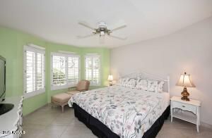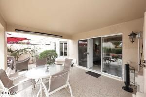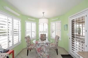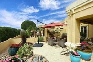 This beautiful end unit casita, with its wonderful expanded patio, is one of a kind! Immaculately maintained & tastefully updated, this desirable St. Thomas model is move-in ready. Relax or entertain on the patio with its tranquil setting or enjoy the community pool located just across the street. Located adjacent to a natural area creates added privacy. The bright & inviting kitchen is highlighted with white cabinetry & a breakfast nook, while the spacious primary bedrm w/bay window features a private bath, large step-in shower, dual sink vanity & convenient walk-in closet system. A pocket door at the entry to Bedrm 2 creates the perfect guest ensuite. Updated baths, tile throughout, plantation shutters, beautiful furnishings (& the many Westbrook amenities!) are just some of the extras!