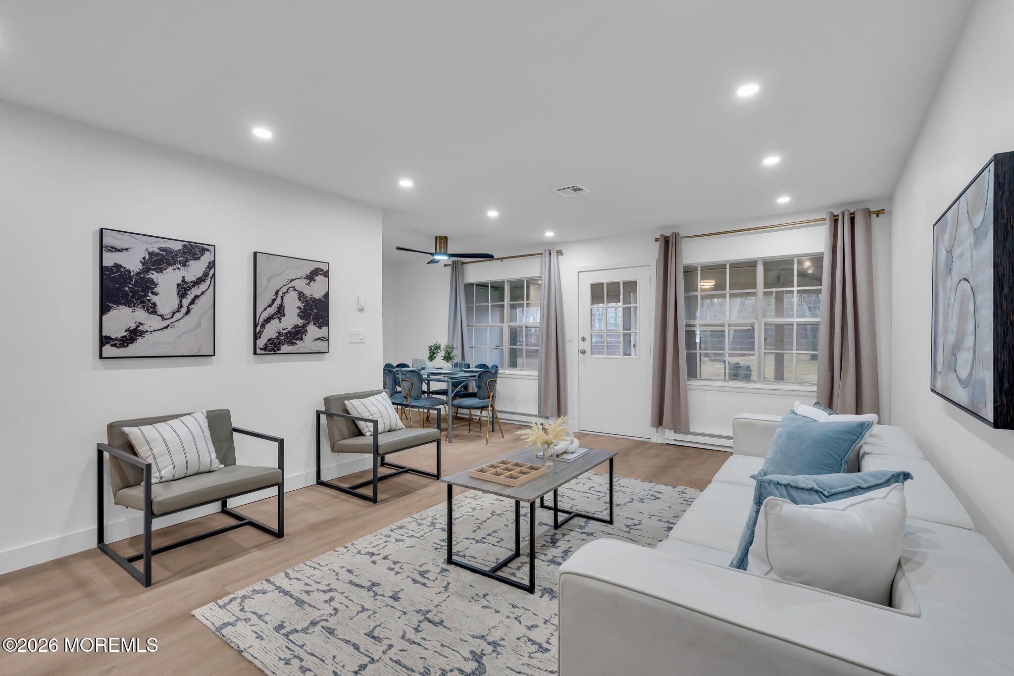 Wow. It truly doesn't get better than this. Completely renovated and filled with natural light, this stunning 2 bedroom, 1 bath home shows like a magazine. The open layout features a gorgeous kitchen with state of the art stainless steel appliances, a striking stainless hood, and abundant cabinetry. The living area flows seamlessly into a bright four season room, creating the perfect space to relax or entertain. Both bedrooms feature solid wood doors and recessed lighting. The custom bathroom offers a designer shower and upscale finishes. Additional highlights include full size washer and dryer, brand new water heater, recessed lighting and ceiling fans throughout, and easy driveway parking. Enjoy access to a beautiful clubhouse and pool. Move right in and enjoy.