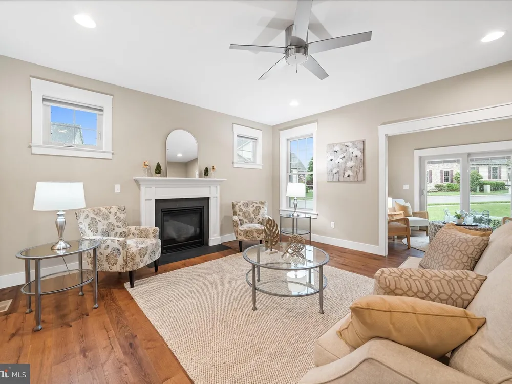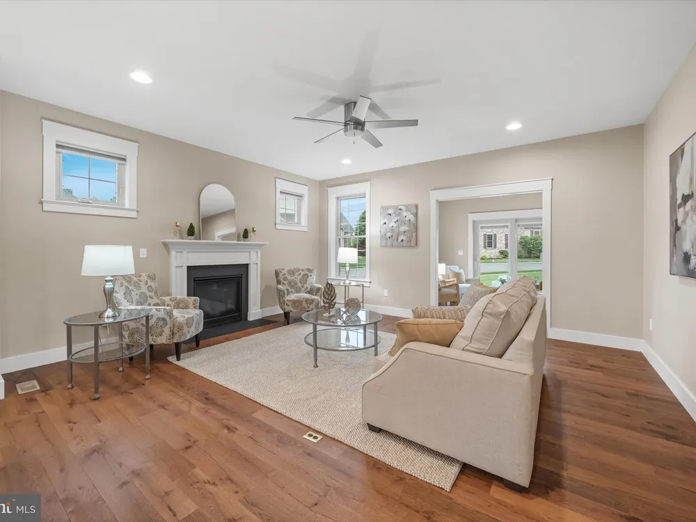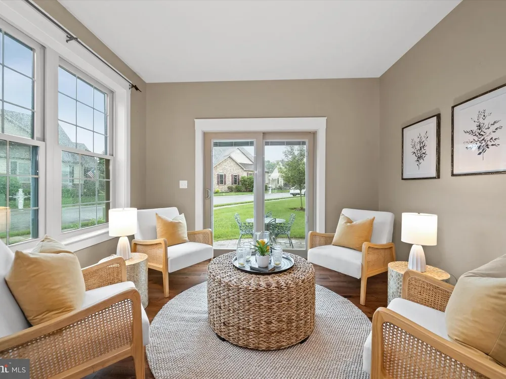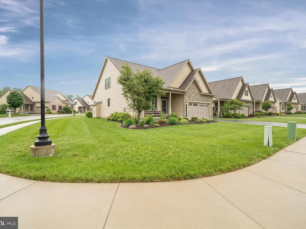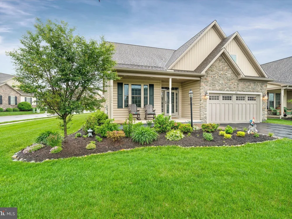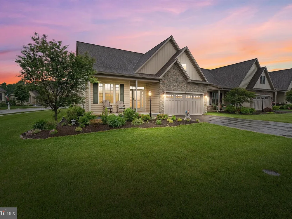 Welcome to luxury living in this stunning 3 bedroom, 3 bathroom original model home with upgraded molding package on a corner lot with numerous upgrades throughout. Step inside to find gorgeous hardwood floors, elegant trim work, doors and a beautifully upgraded kitchen featuring quartz countertops, ceramic tile backsplash and stainless steel appliances. The open concept kitchen and family room flow seamlessly into a bright and inviting sunroom, perfect for relaxing or entertaining. You can also walk out to a charming paved stone patio. Enjoy a private dining room for formal gatherings and a first-floor primary bedroom complete with an extra-large walk-in shower, wheel chair accessible, custom walk-in closet. An additional bedroom or in home office and full bathroom on the main level provide convenience and flexibility. Upstairs, you'll find another bedroom, full bathroom, and bonus living area, ideal for your guests.. There is a large walk-in storage closet, which you can easily convert into a great craft room or in home office. This traditional style home boasts a cozy gas fireplace, adding warmth and charm to the living space. Residents of this community have access to a refreshing indoor heated pool, and clubhouse with indoor and outdoor gathering spaces, large fitness center, bocce ball court, horseshoes and community gardens. Additionally, the home offers plenty of storage space for all your needs. The full unfinished basement has endless possibilities to be finished. Don't miss the opportunity to make this meticulously maintained and upgraded home yours. This is more than just a home - its a lifestyle. Join a welcoming, active community where neighbors become friends, and each day brings new opportunities for enjoyment and connection. Contact us today to schedule a showing and experience the luxurious amenities and spacious layout for yourself!
