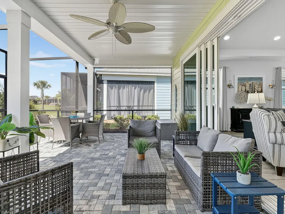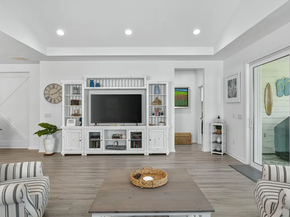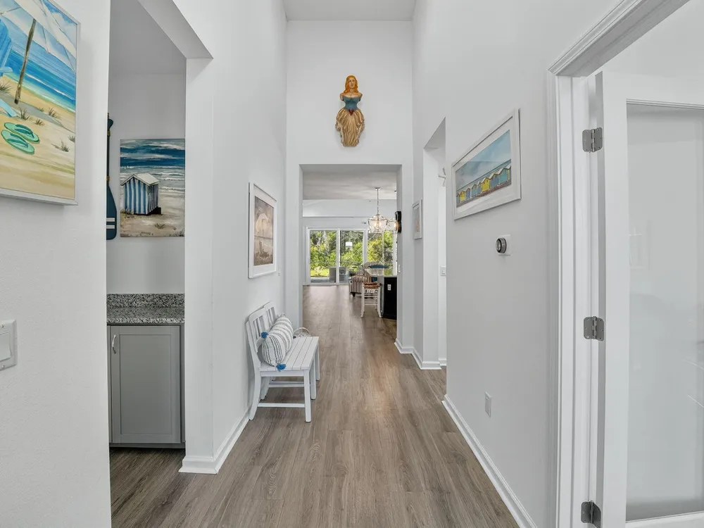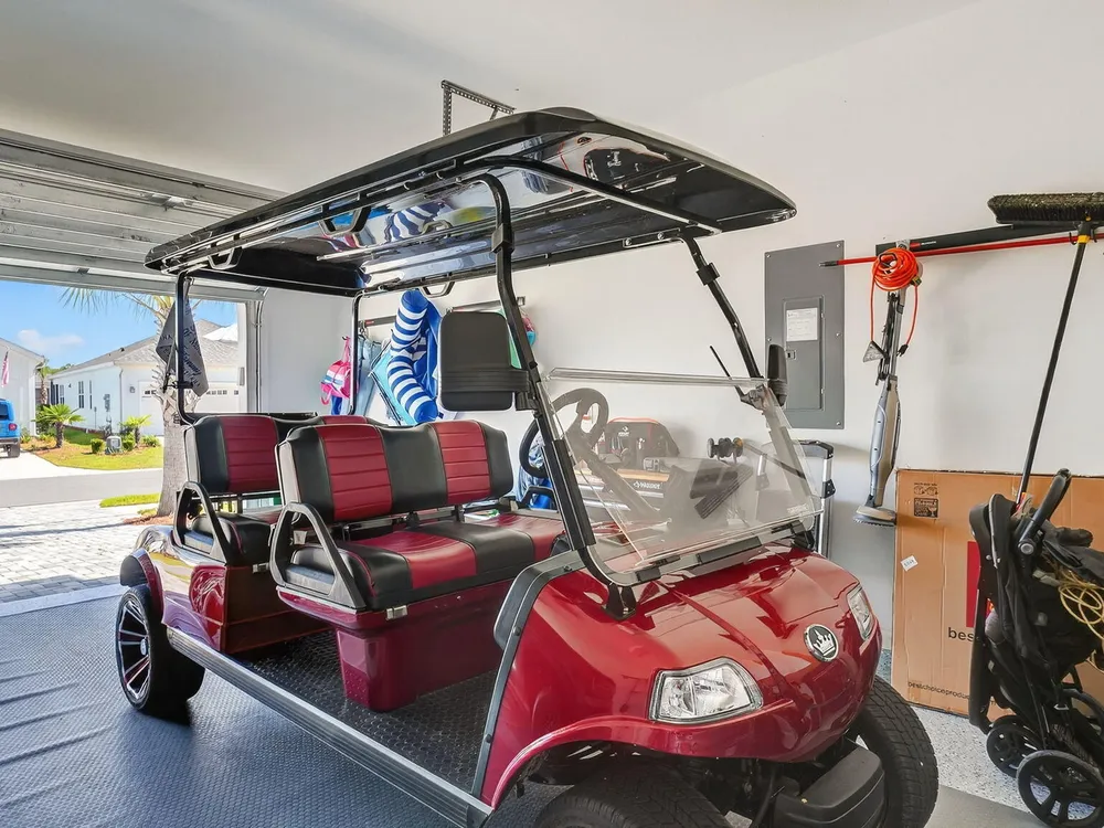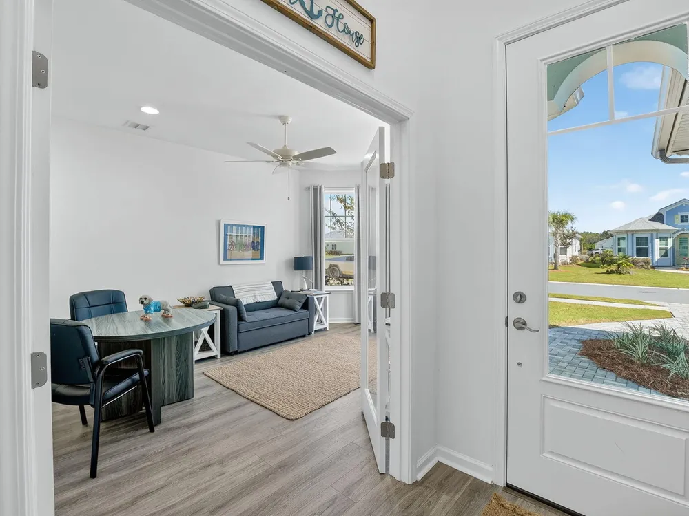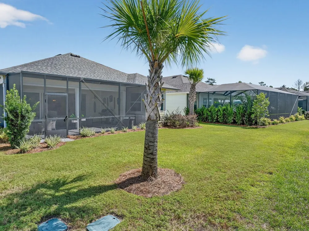 Why wait to build when you can have this incredible Breeze Bay Beach Collection home NOW! Seller's were part time so it's basically a new home! In Phase 3 so it's close to the wonderful amenities at Latitude Margaritaville. Pavers in driveway which was widened for room for a golf cart! Nice size entry has a custom keydrop area. The den has custom cabinets and glass French doors! 42'' cabinets in kitchen with beautiful large Cambria countertops for entertaining. Navy tile backsplash adds style to the kitchen! The Living room is huge! Plenty of room for all types of furniture with brass outlet in the floor. The dining niche has custom board and batton on the wall for added decorative flair! The master is large with a trey ceiling and two large closets . The bathroom has dual sink areas with the tiled shower having a custom sitting area in the corner, seamless glass around the shower. Both full baths have extended wall tile to ceiling. The laundry room has a sink and upper cabinets. The screened lanai is extended and has a wooded preserve behind it for a nice relaxing environment! The garage floor is finished with epoxy. Motion sensor lights on corners of home, as well as gutters on all four sides The golf cart is for sale as well as all furnture, too! Latitude at Watersound has incredible amenties from the Last Mango Theater to a state-of-the-art fitness center, to a resort styled pool, two areas for the restaurant on the intercoastal waterway. 9 pickleball courts, tennis courts, boche ball area, outdoor pool and ping bong area with a cornhole area! The fun never ends! Band/DJ on weekends, live music at the pool every day from 12:00-3:00 or if it's rainy or cold they are inside! Come see this incredible home!