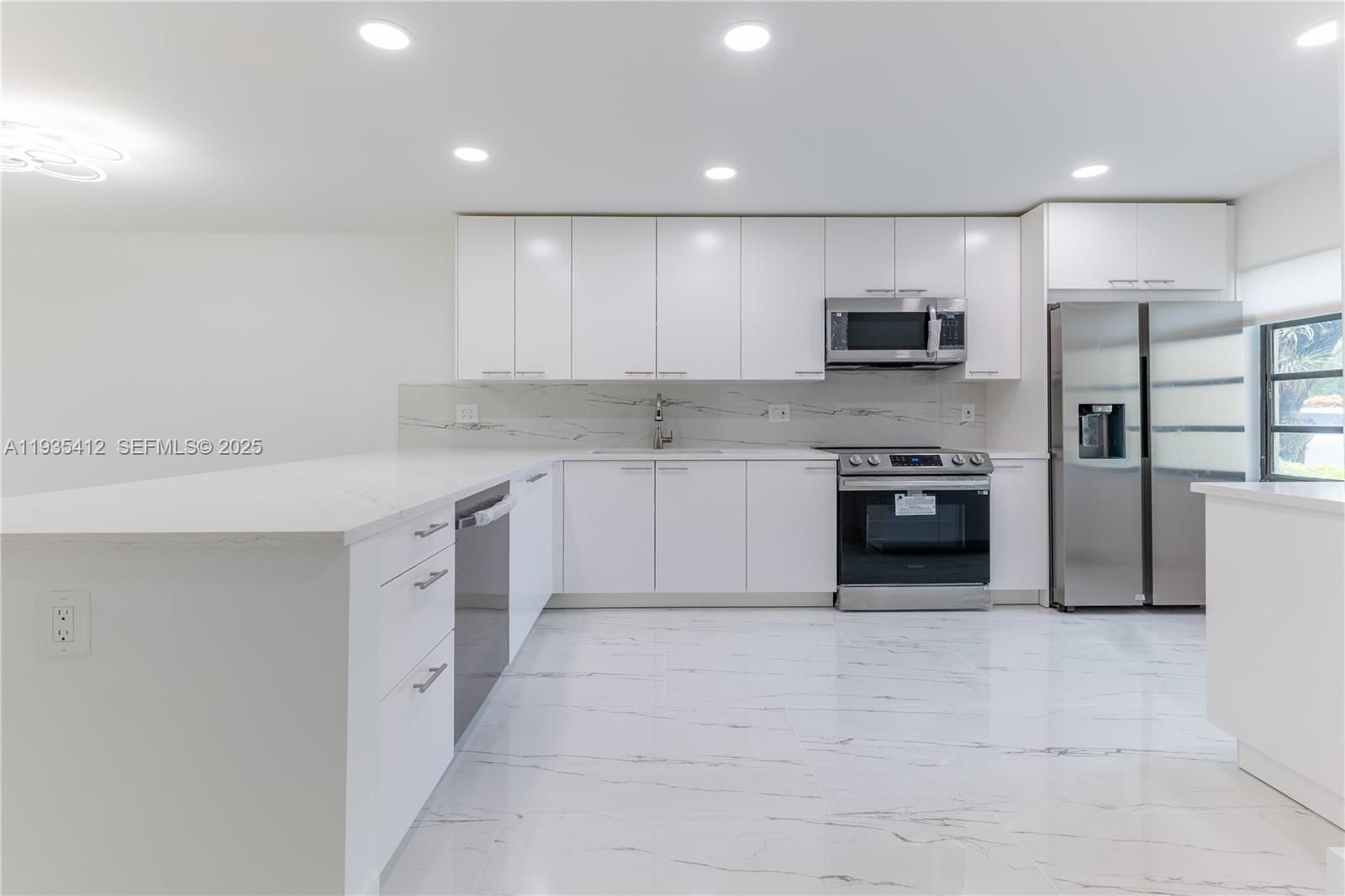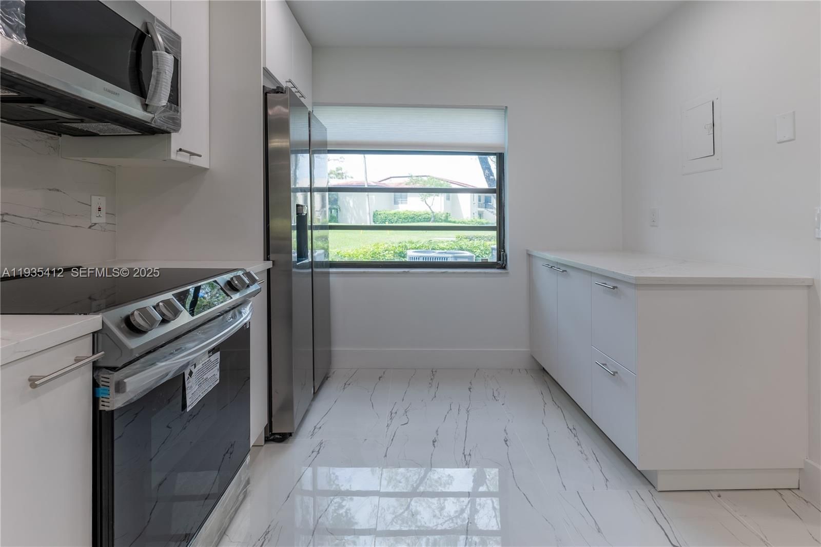 Stunning fully remodeled 2BR/2BA ground-floor residence in a desirable 55+ community. Enjoy the privacy and comfort of a private house-like setting with serene views of nature and the golf course. Renovated with no expense spared, featuring high-quality Italian porcelain flooring throughout, a brand-new kitchen with granite countertops and top-of-the-line appliances, modern LED lighting, beautifully updated bathrooms, new A/C, new water heater, and in-unit washer and dryer. Move-in ready and truly exceptional.