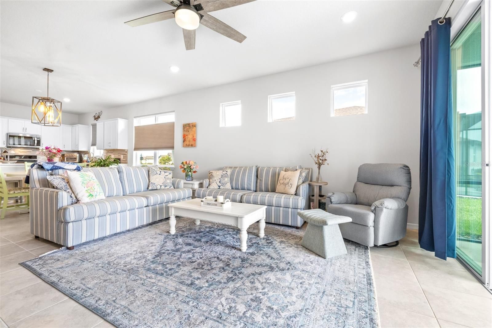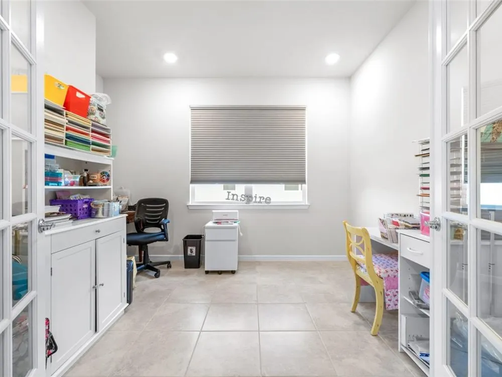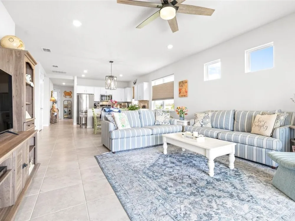 - Ceiling Fan(s), High Ceilings, Kitchen/Family Room Combo, Open Floorplan, Main Level Primary, Walk-In Closet(s), Window Treatments