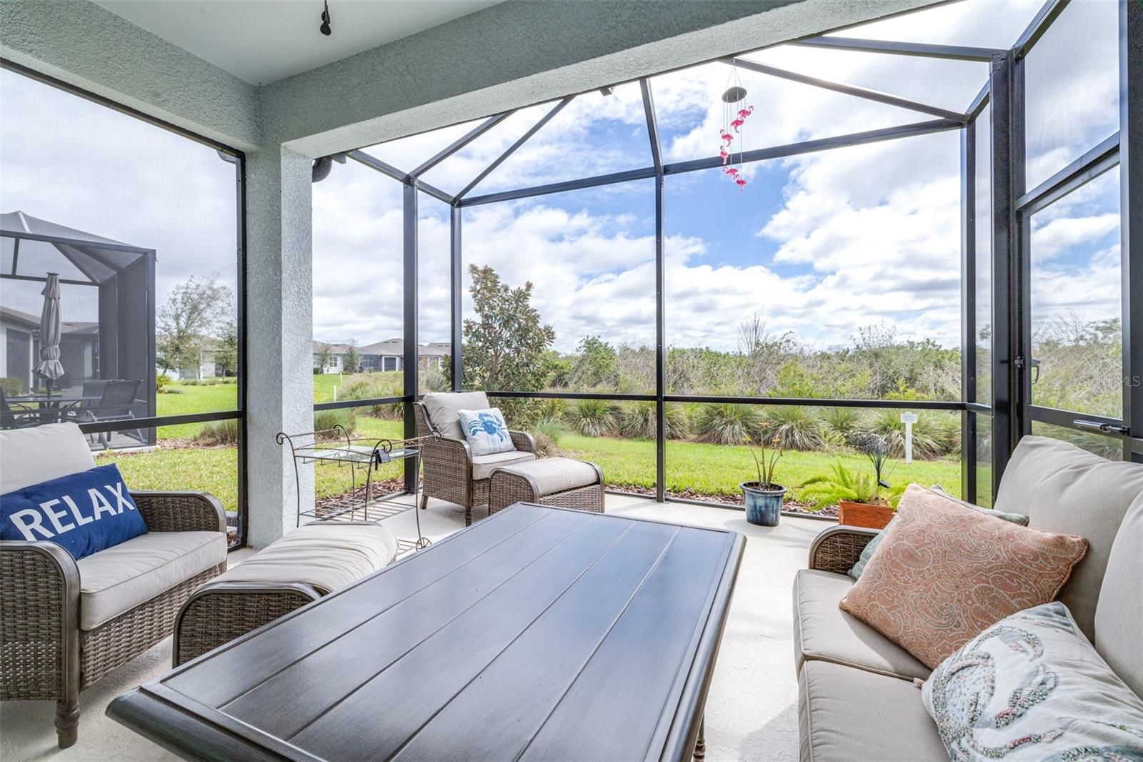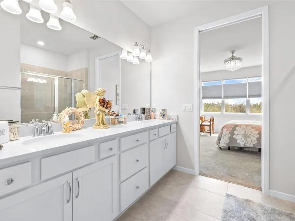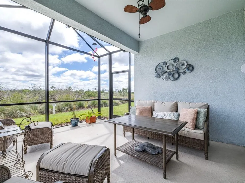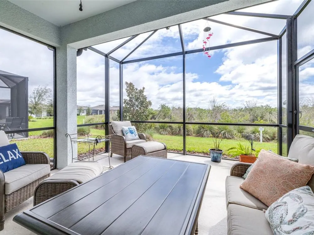 *Buyer may inquire about Lower Interest Rate available for working with preferred lender.* Welcome to your dream villa! This beautifully designed 2-bedroom, 2-bath home with an enclosed flex room featuring elegant glass French doors offers both comfort and versatility. Sitting on a premium homesite, enjoy breathtaking nature and conservation views from your spacious 14’ x 15’ lanai. Boasting 1,564 sq. ft., this villa is larger than comparable models and features an inviting open floor plan with a grand entrance, paver driveway, and a spacious 2-car garage. Inside, you'll find a generously sized laundry room, complete with a washer and dryer. The designer kitchen is a chef’s delight, featuring quartz countertops, stylish backsplash, stainless steel appliances, and a highly desired gas range. Both bathrooms are equally impressive, with matching cabinetry, quartz countertops, and beautifully tiled showers. The split-bedroom layout ensures privacy, with the primary suite boasting a walk-in shower with a bench, dual sinks, and an oversized walk-in closet. A major advantage of this home? Lower closing costs compared to brand-new builder purchases! Located in Del Webb BayView, an active 55+ community, this pet-friendly, maintenance-free neighborhood offers resort-style amenities at The Driftwood Club, including a full-service restaurant, state-of-the-art fitness center, resort-style pool with lap lanes, resistance pool and spa, bocce, pickleball and tennis courts, a kayak launch, an outdoor event lawn with a performance space and fire pit, and a lifestyle activities director organizing arts and crafts, yoga, bingo, sign language classes, and more. Conveniently located just minutes from two Publix supermarkets, Ellenton Outlets (5 miles away), and future developments including a nearby Walmart and hospital, plus with easy access to St. Pete Beaches and airports in Tampa, Clearwater, and Sarasota, you’ll have everything you need right at your fingertips. Discover a new level of retirement living at Del Webb BayView—schedule your showing today!